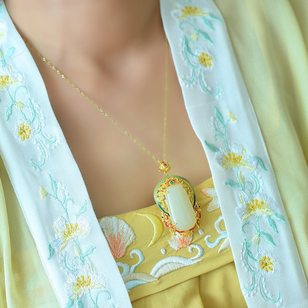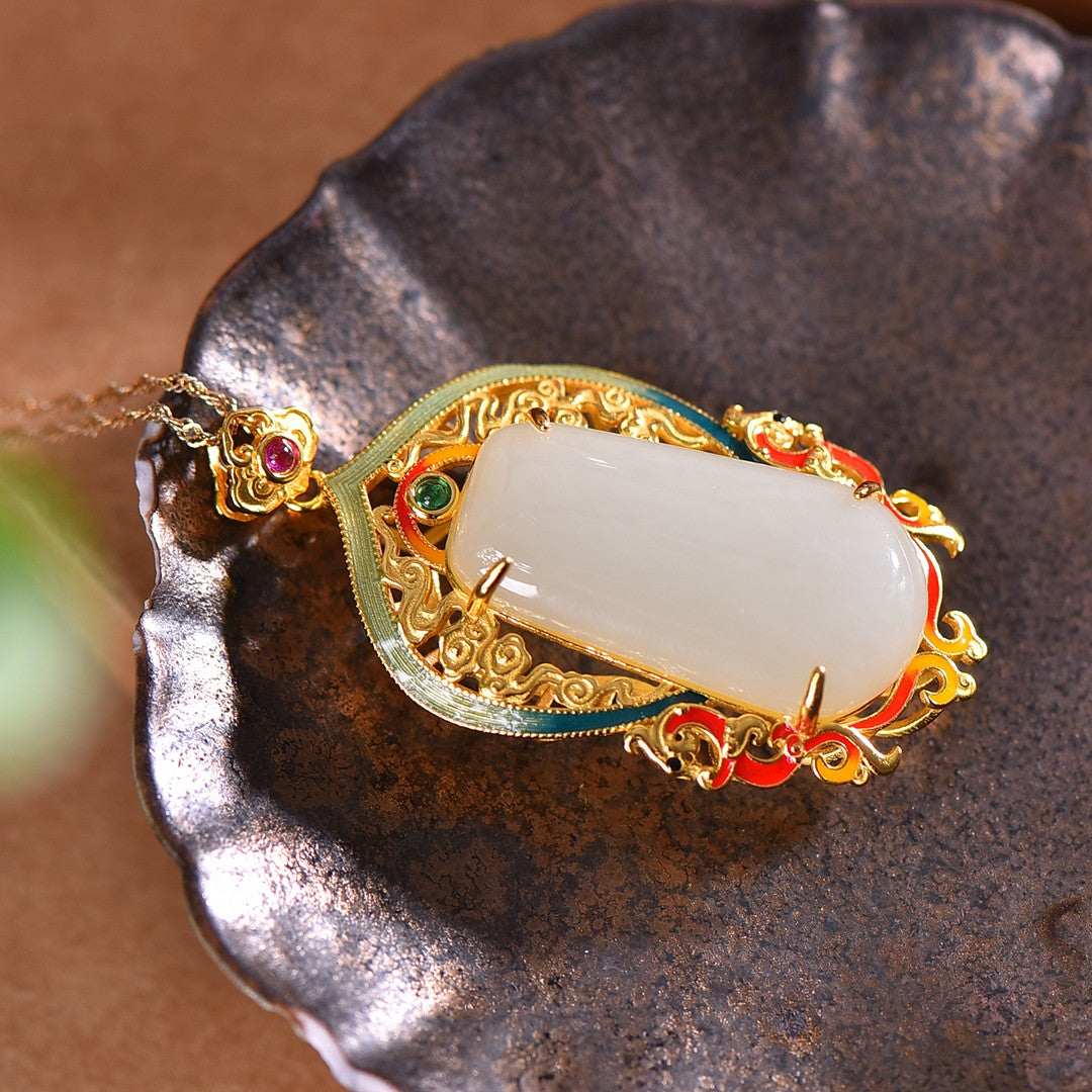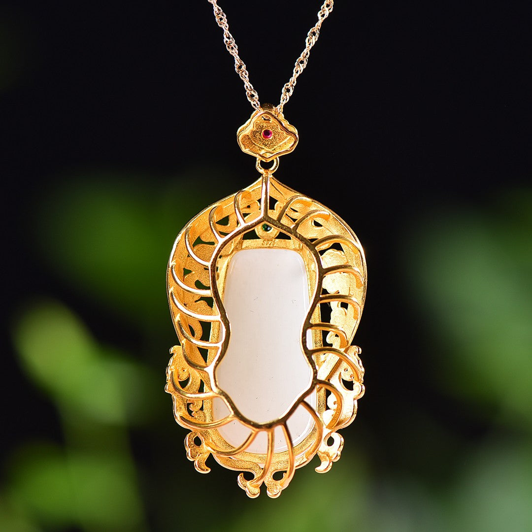 Silver gold plated Hetian jade pendant
