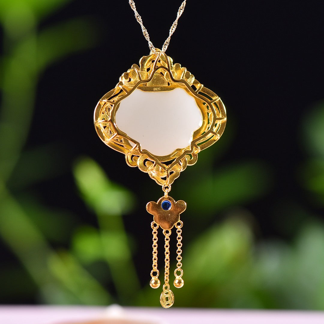 Silver gold plated Hetian jade pendant