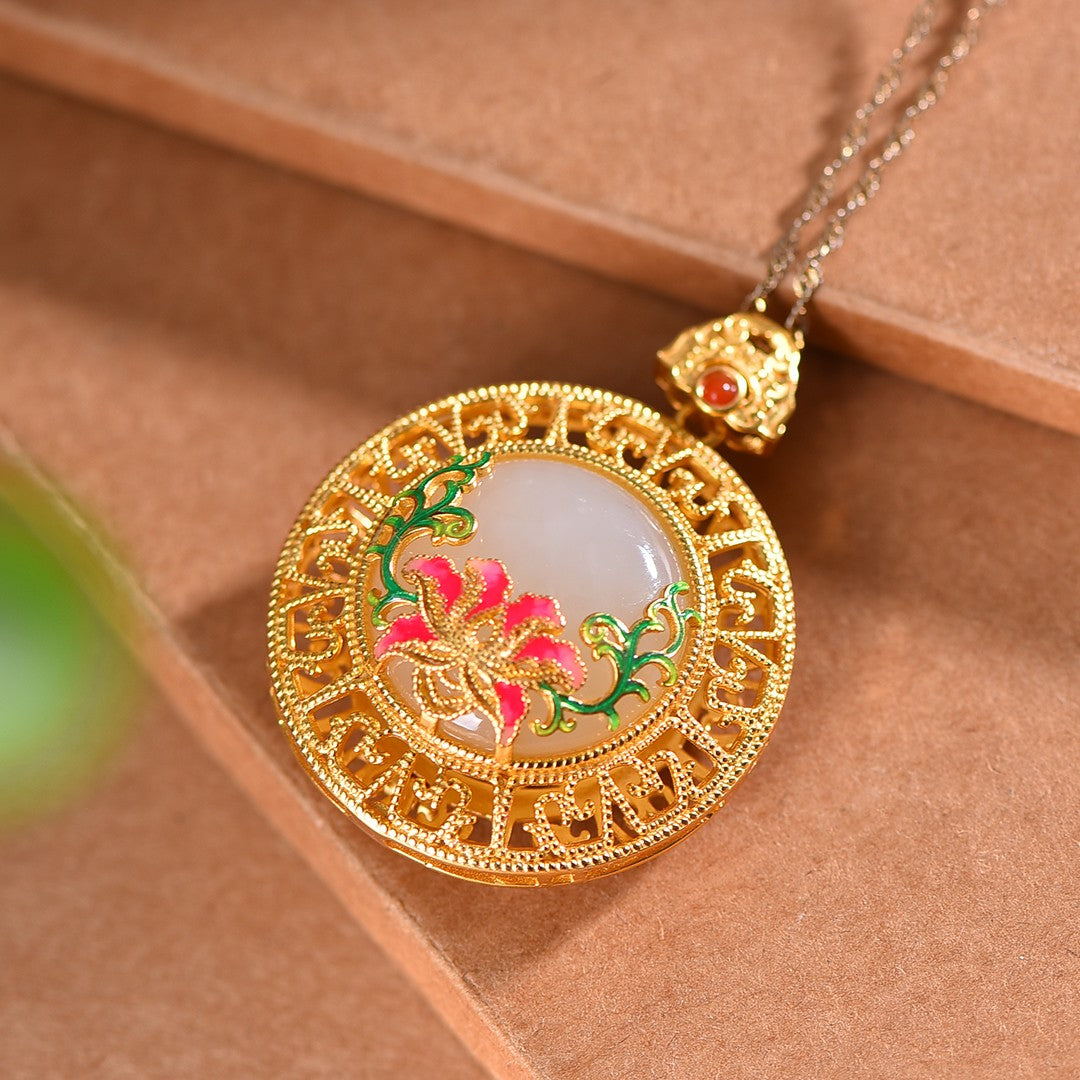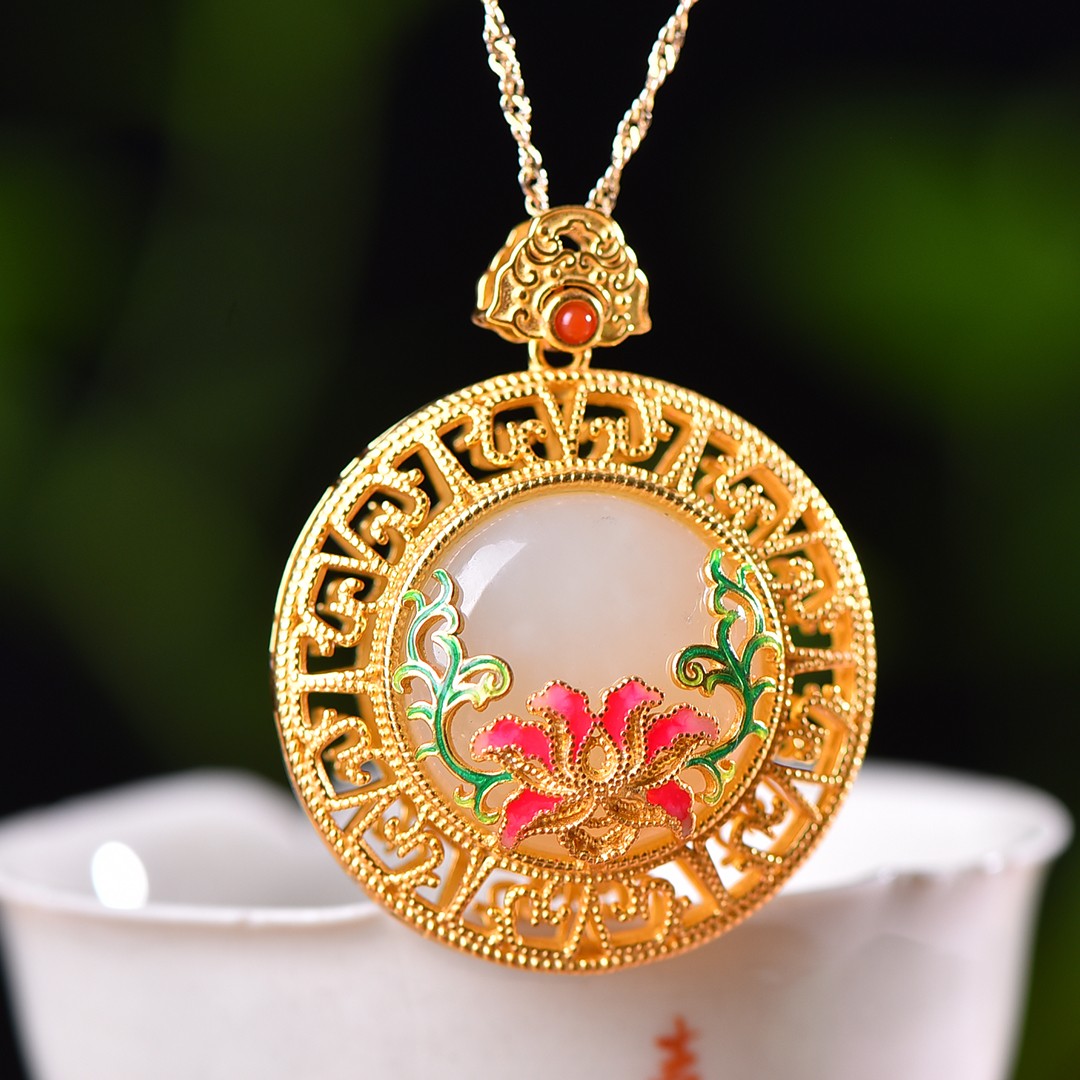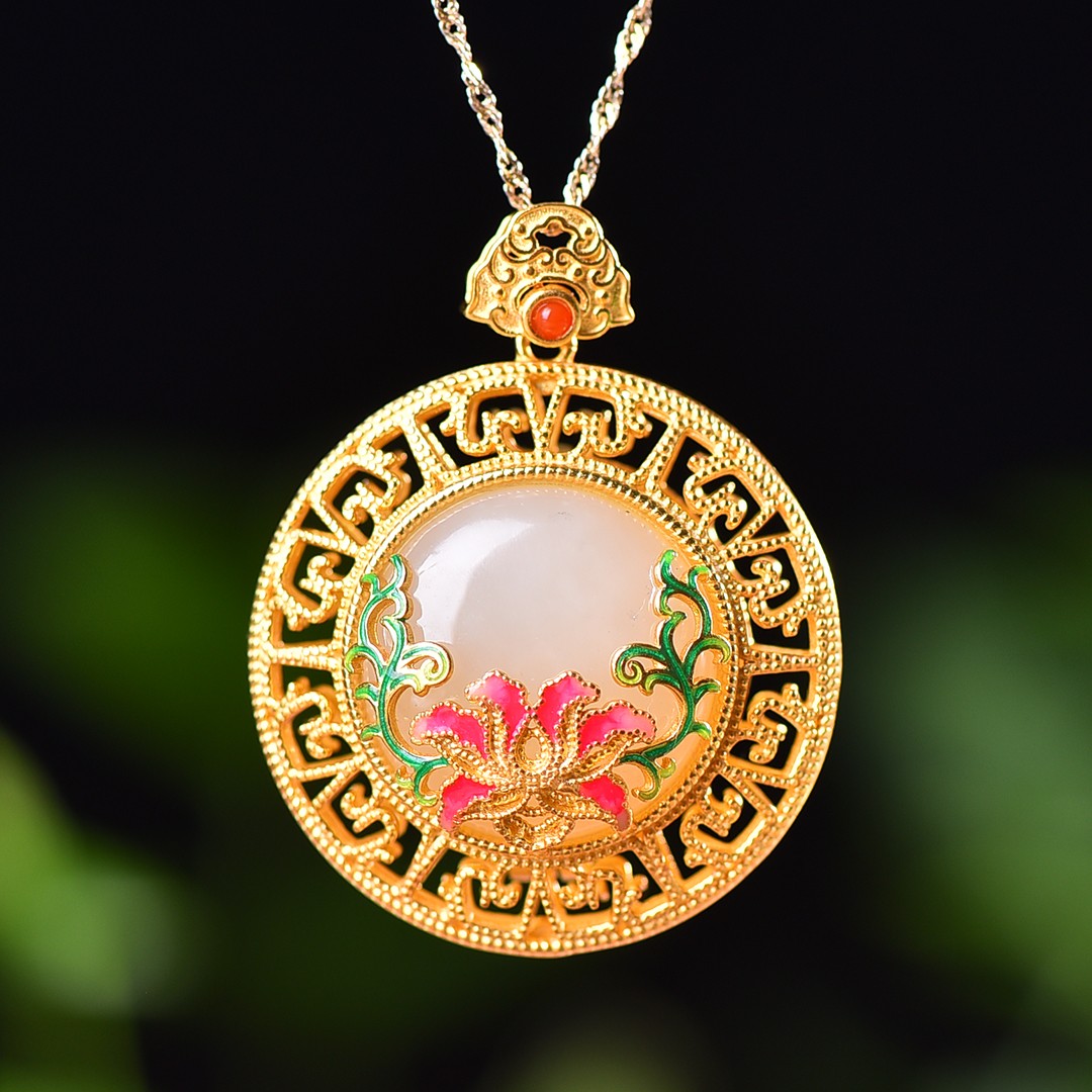 Silver gold plated Hetian jade pendant