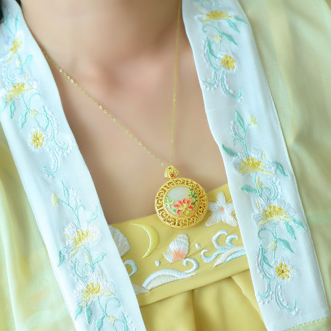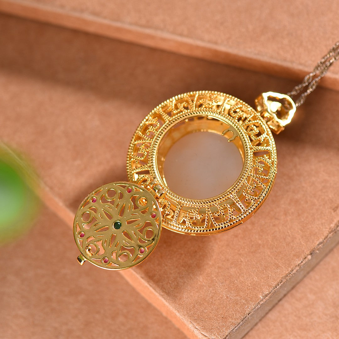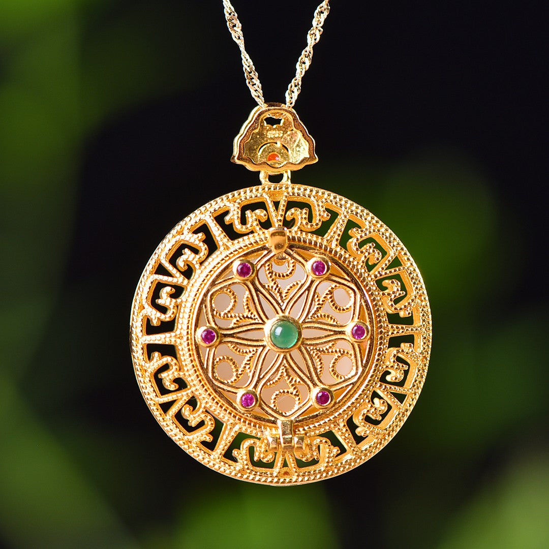 Silver gold plated Hetian jade pendant