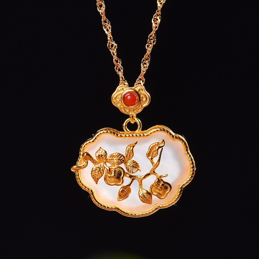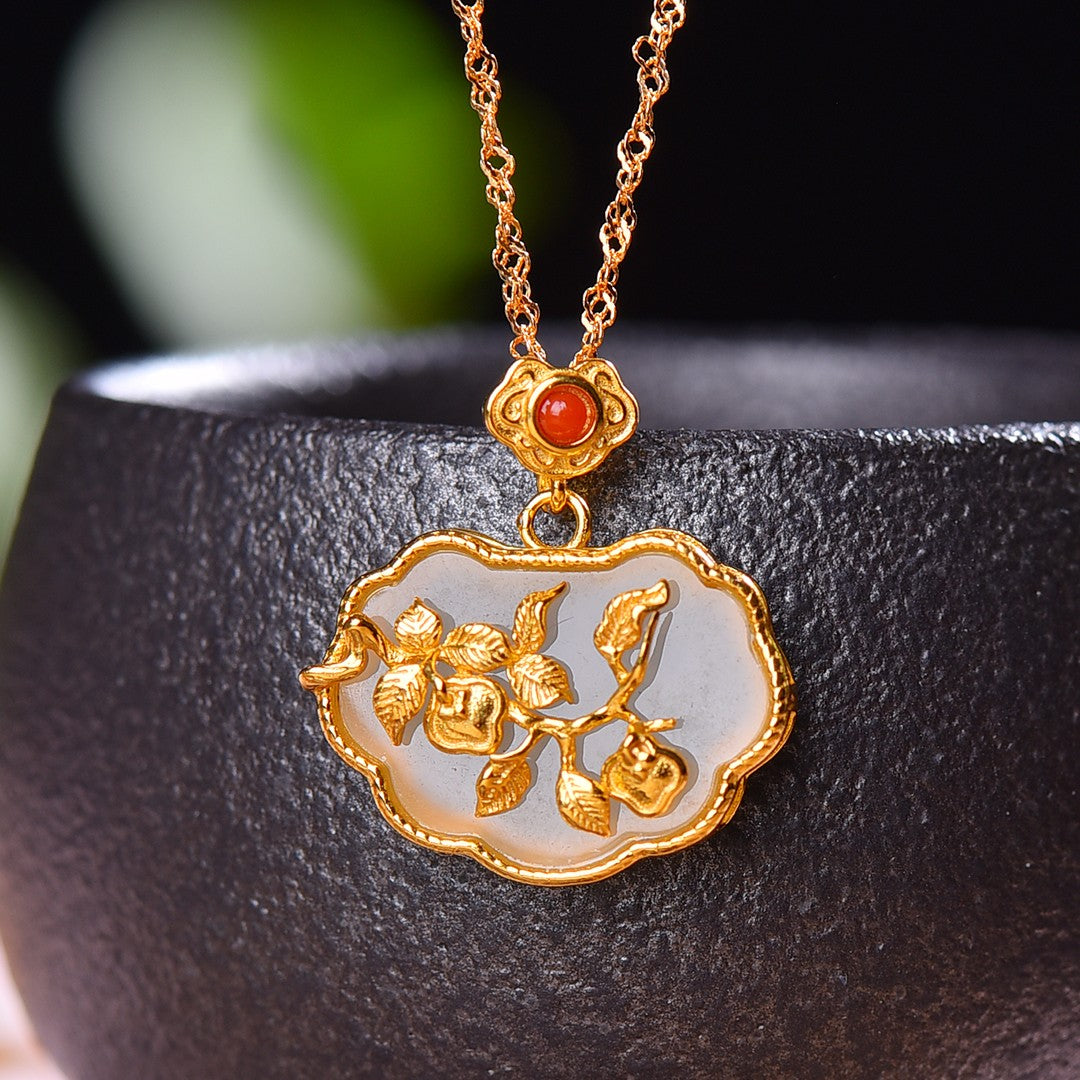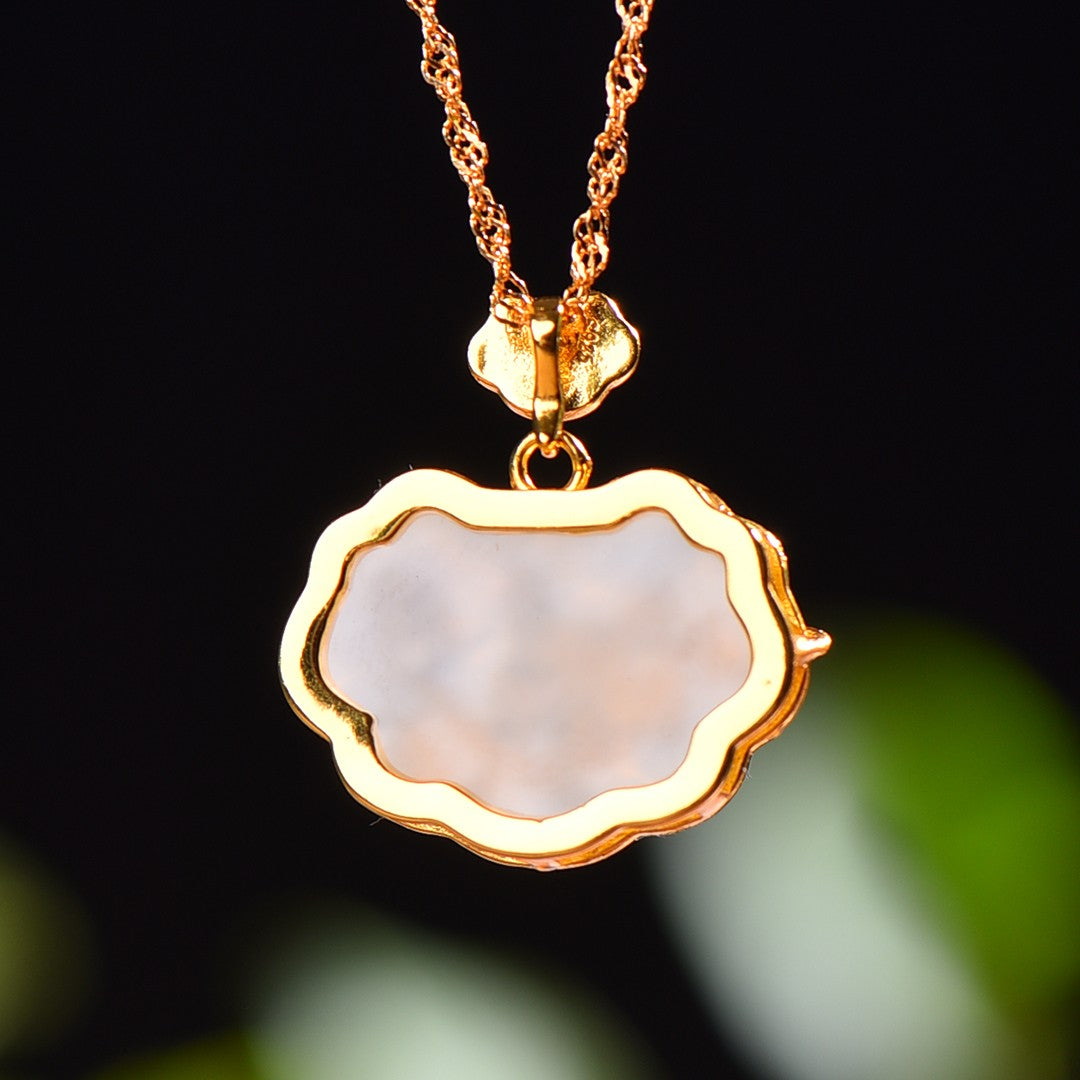 Silver gold-plated inlaid Hetian jade Ruyi pendant, jade size: 13mmx18mm   银镀金镶嵌和田玉如意锁吊坠