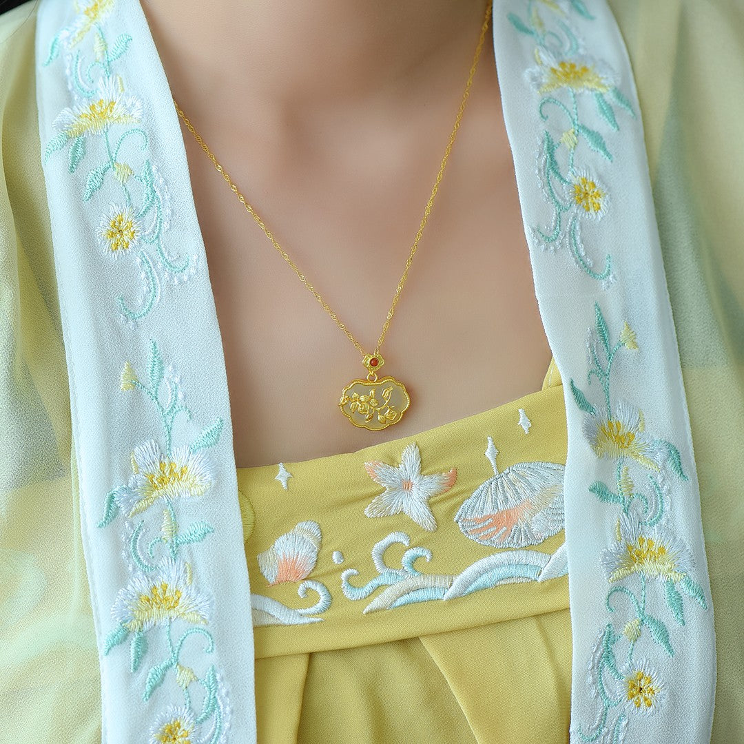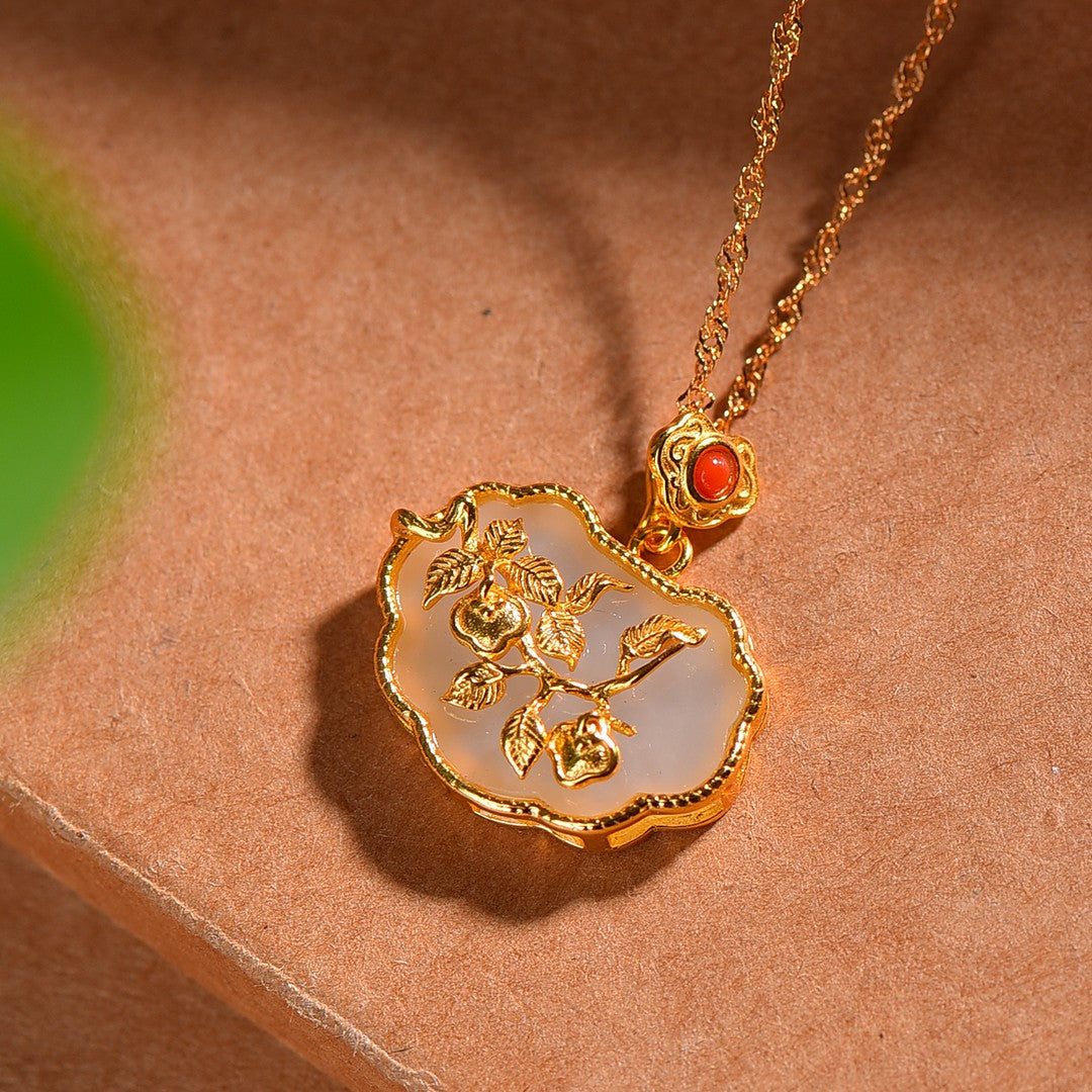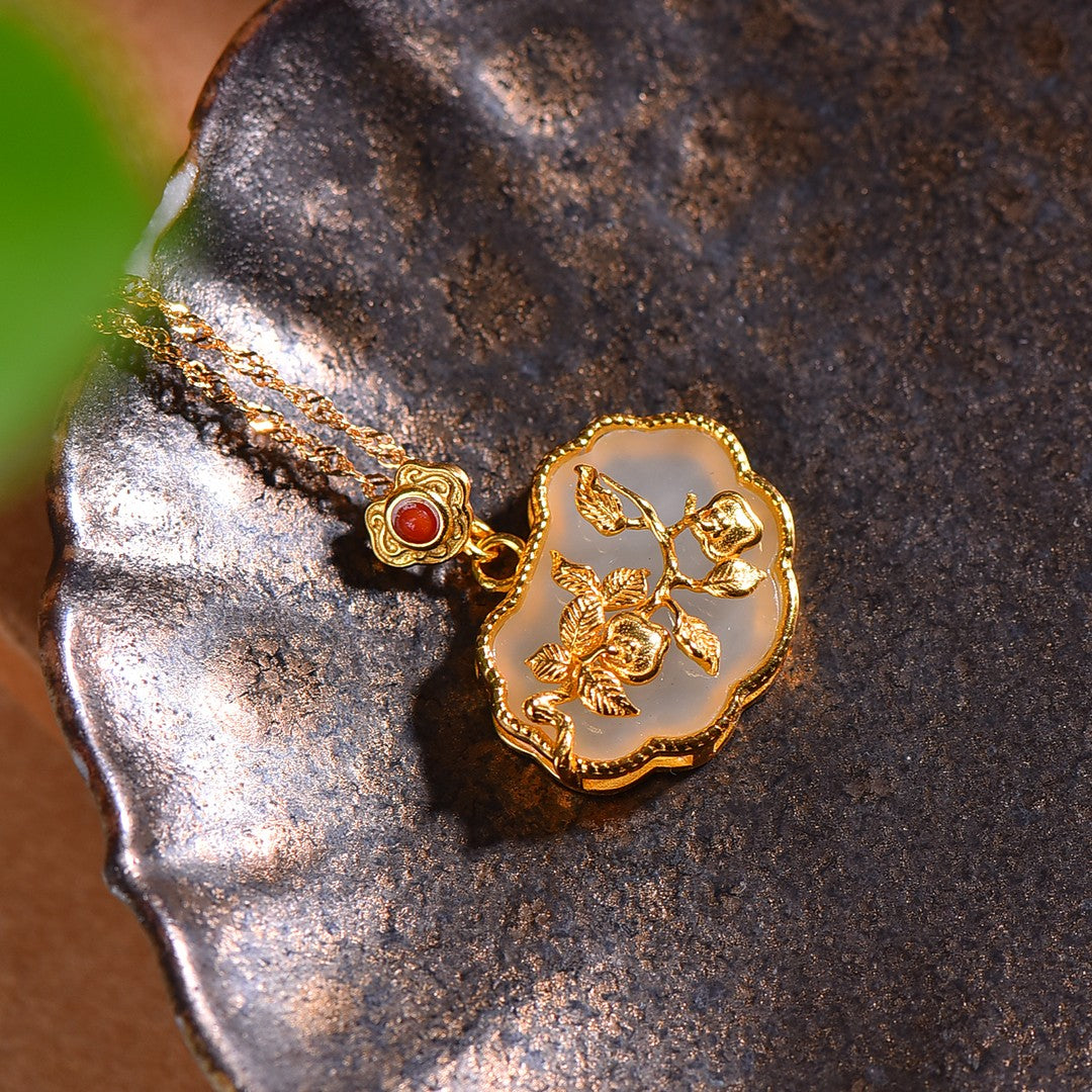Silver gold-plated inlaid Hetian jade Ruyi pendant, jade size: 13mmx18mm   银镀金镶嵌和田玉如意锁吊坠