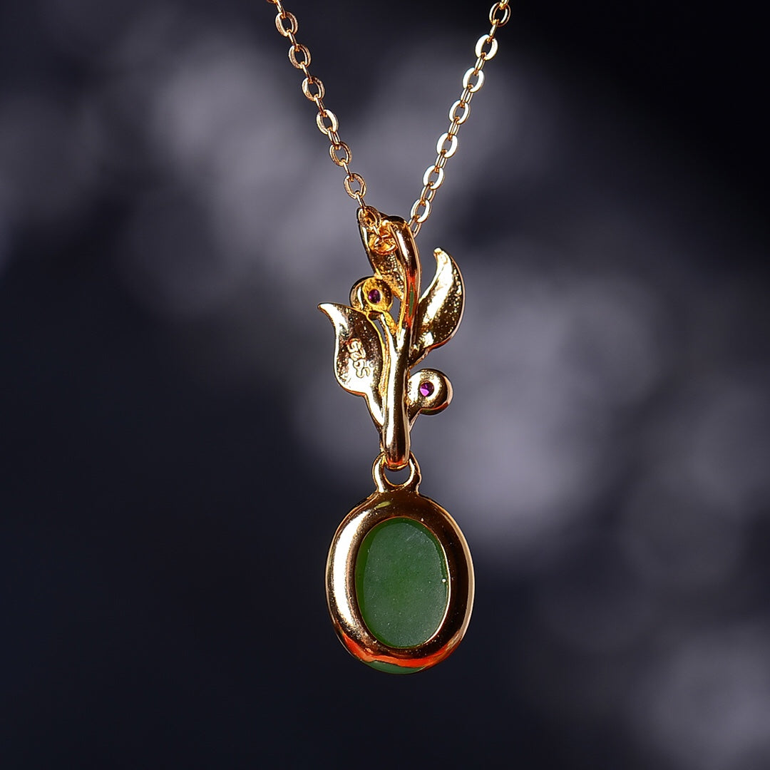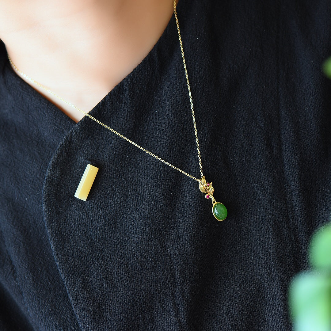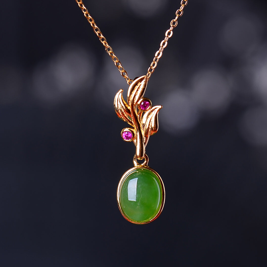 Silver gold-plated Hetian jade retro cabochon pendant, jade size: 8mmx10mm   银镀金镶和田玉复古蛋面吊坠