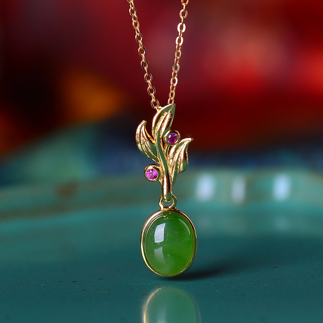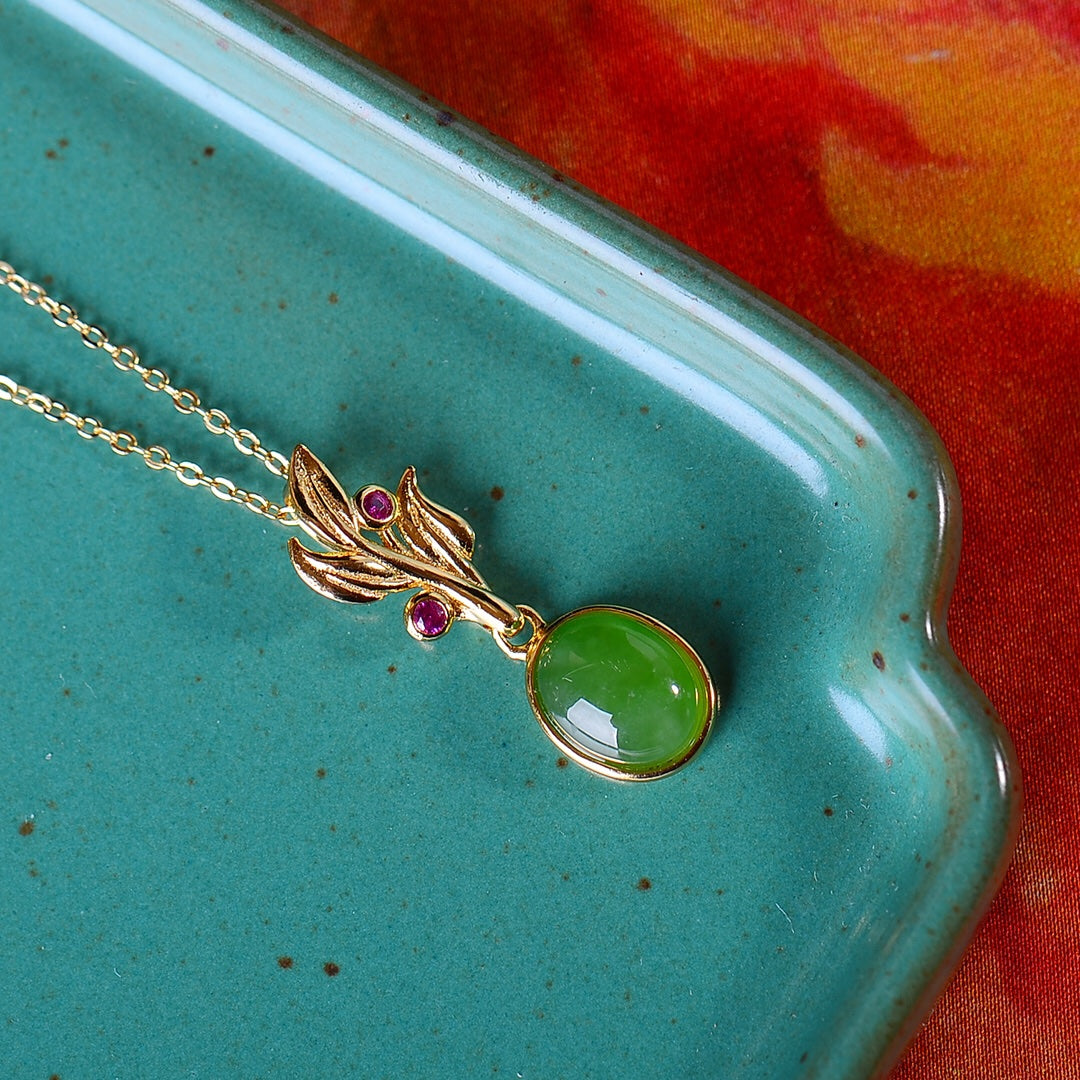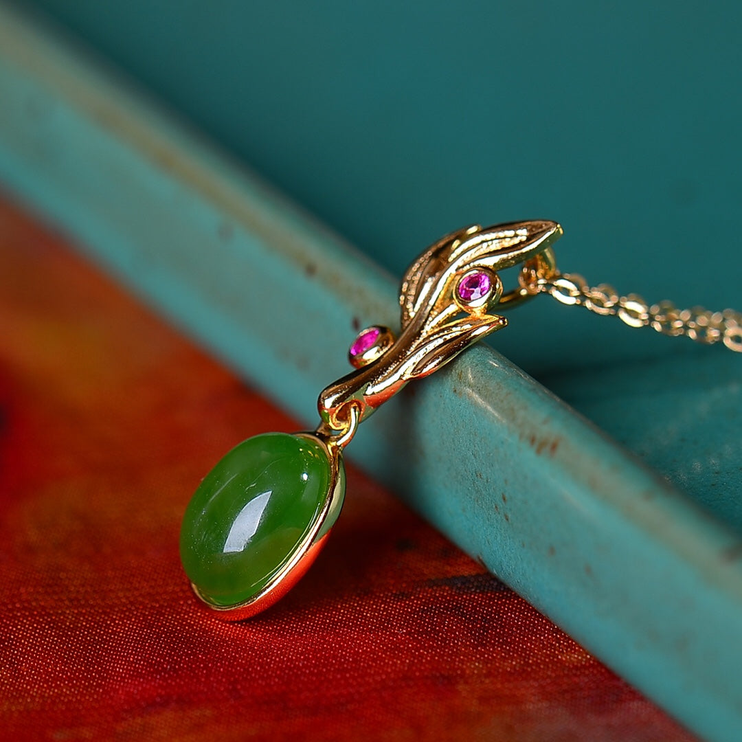 Silver gold-plated Hetian jade retro cabochon pendant, jade size: 8mmx10mm   银镀金镶和田玉复古蛋面吊坠