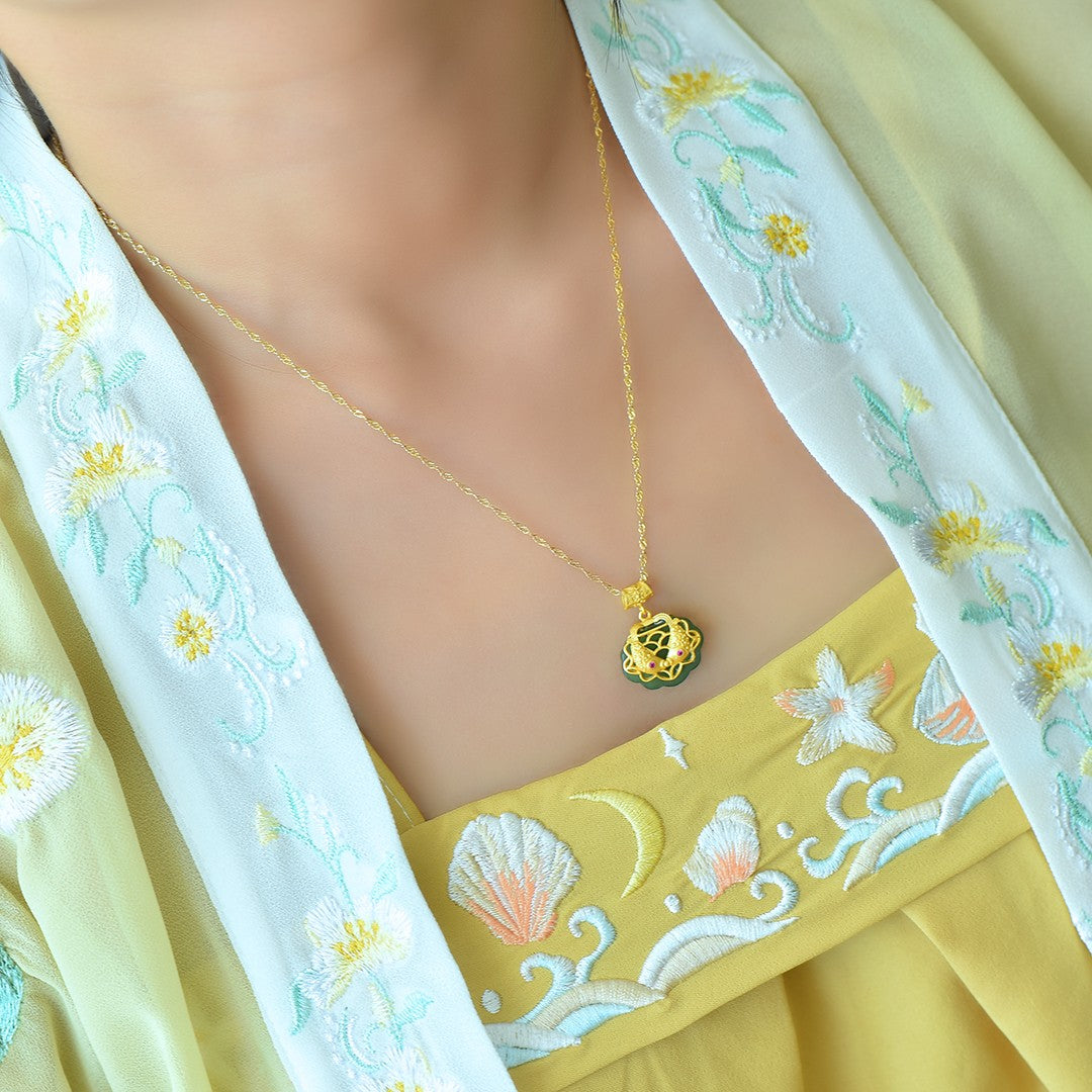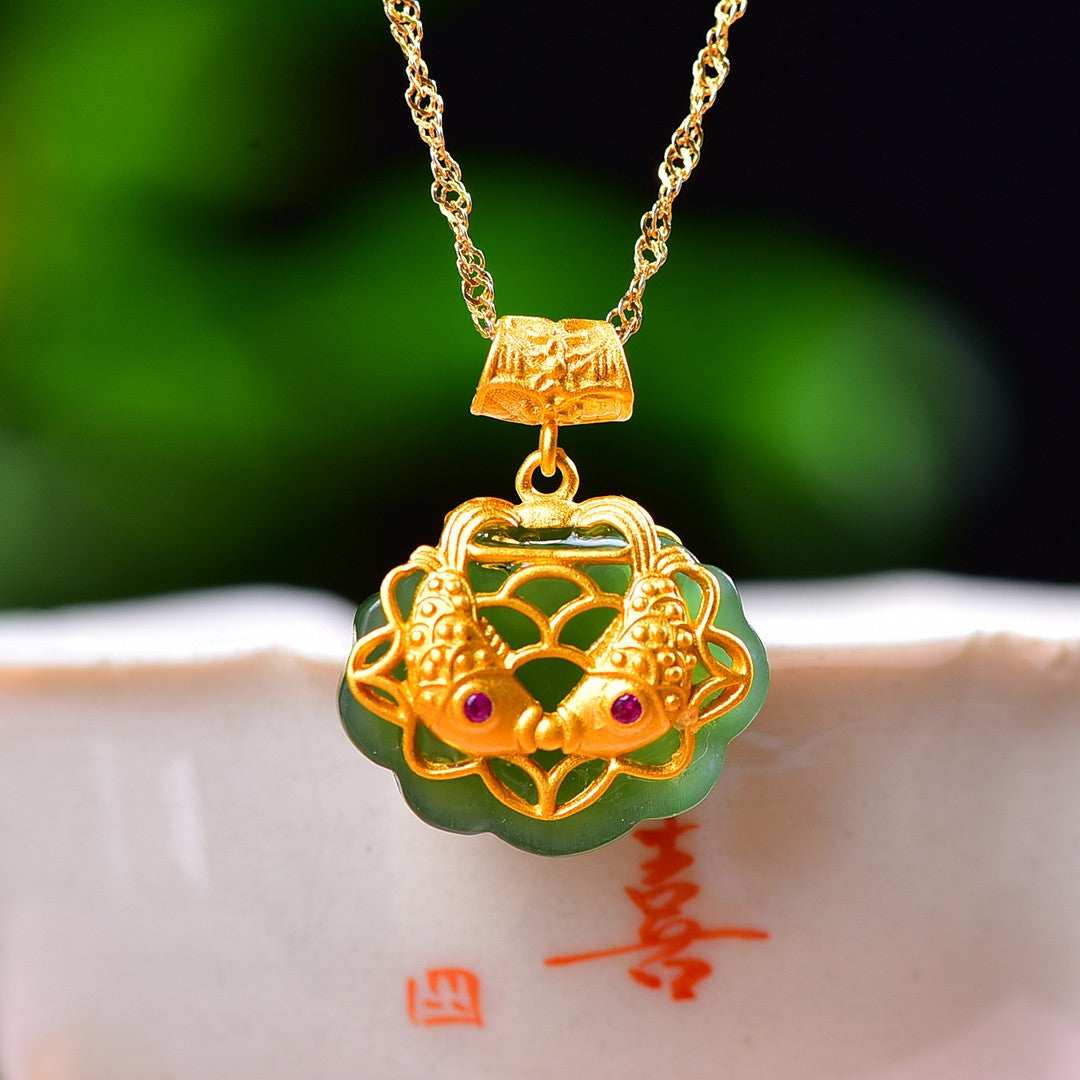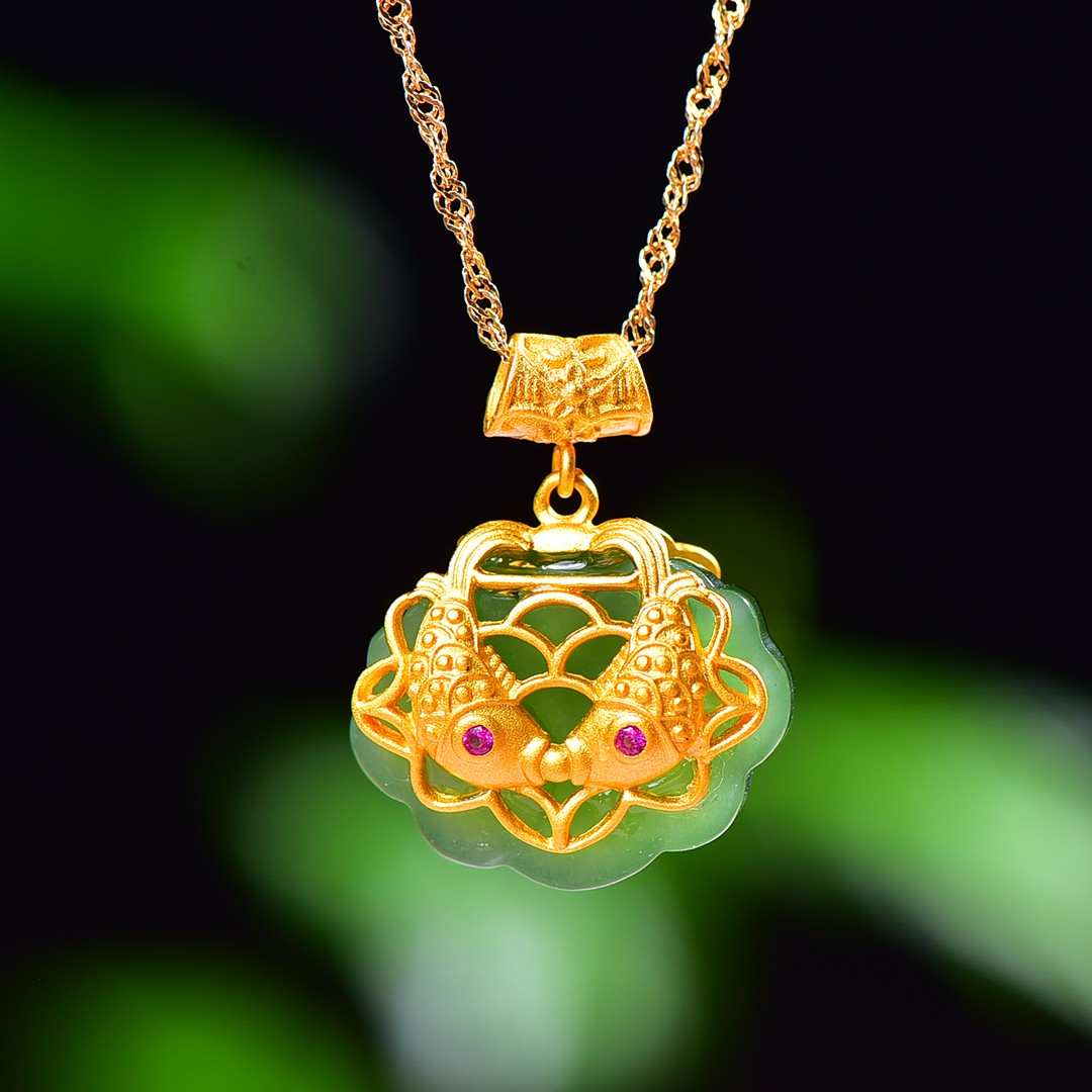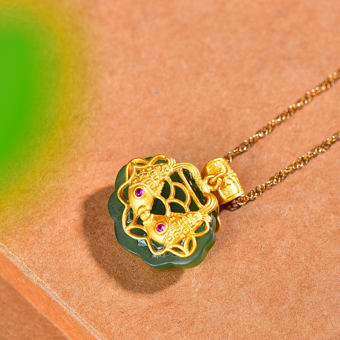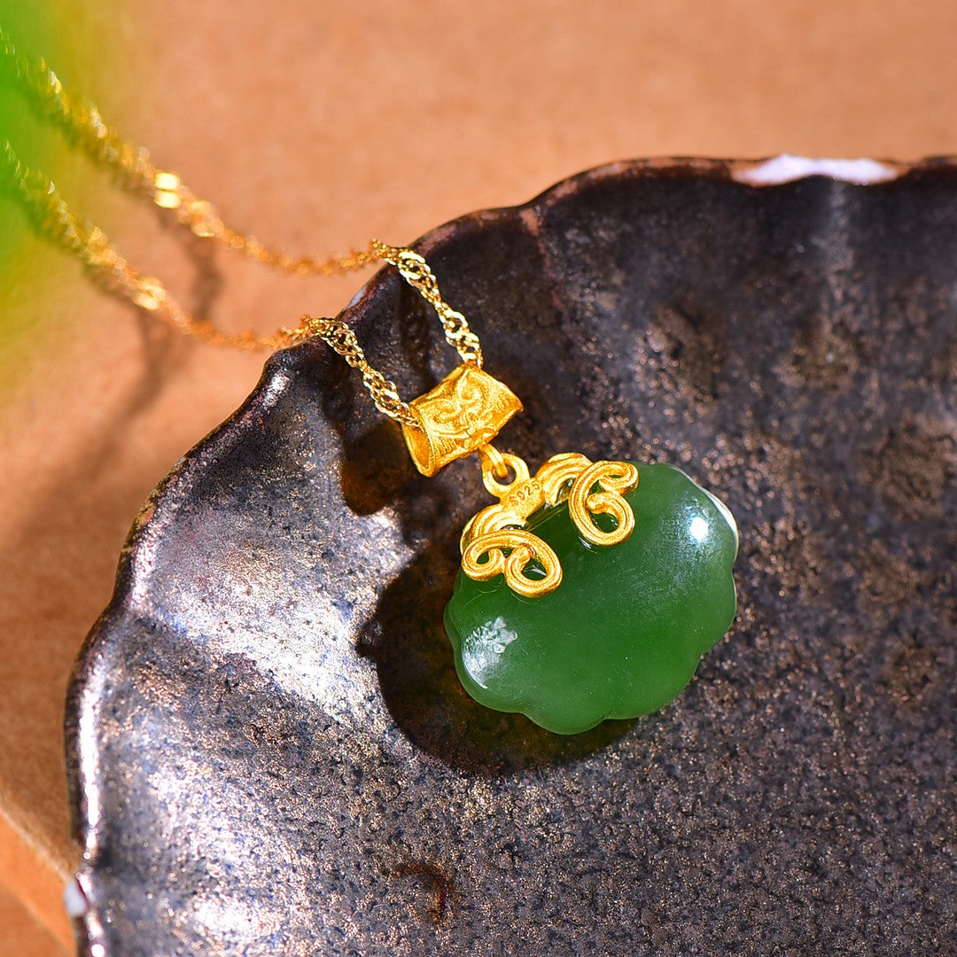 Silver gold plated Hetian jade pendant