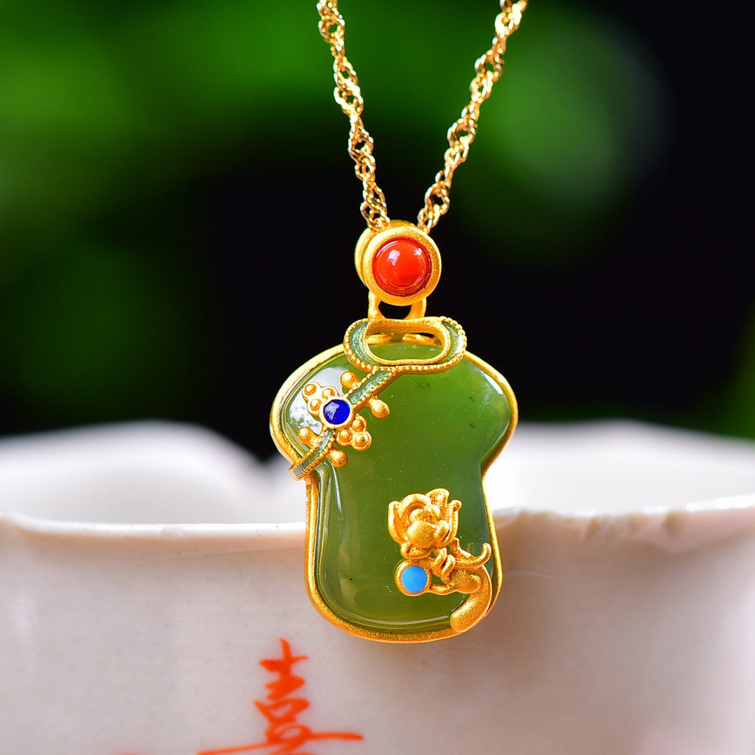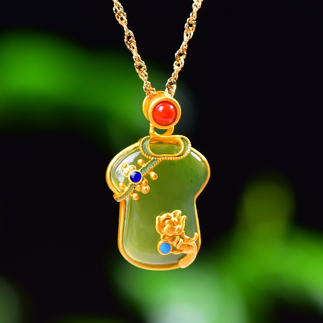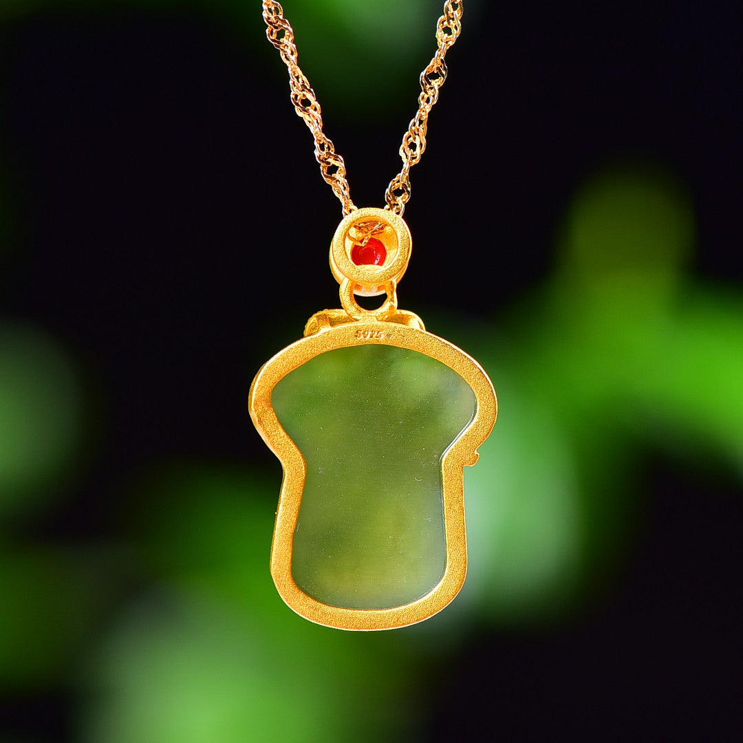 Silver gold-plated Hetian Jasper Qikaidaisheng pendant, jade size: 13mmx16mm   银镀金镶和田碧玉旗开得胜吊坠