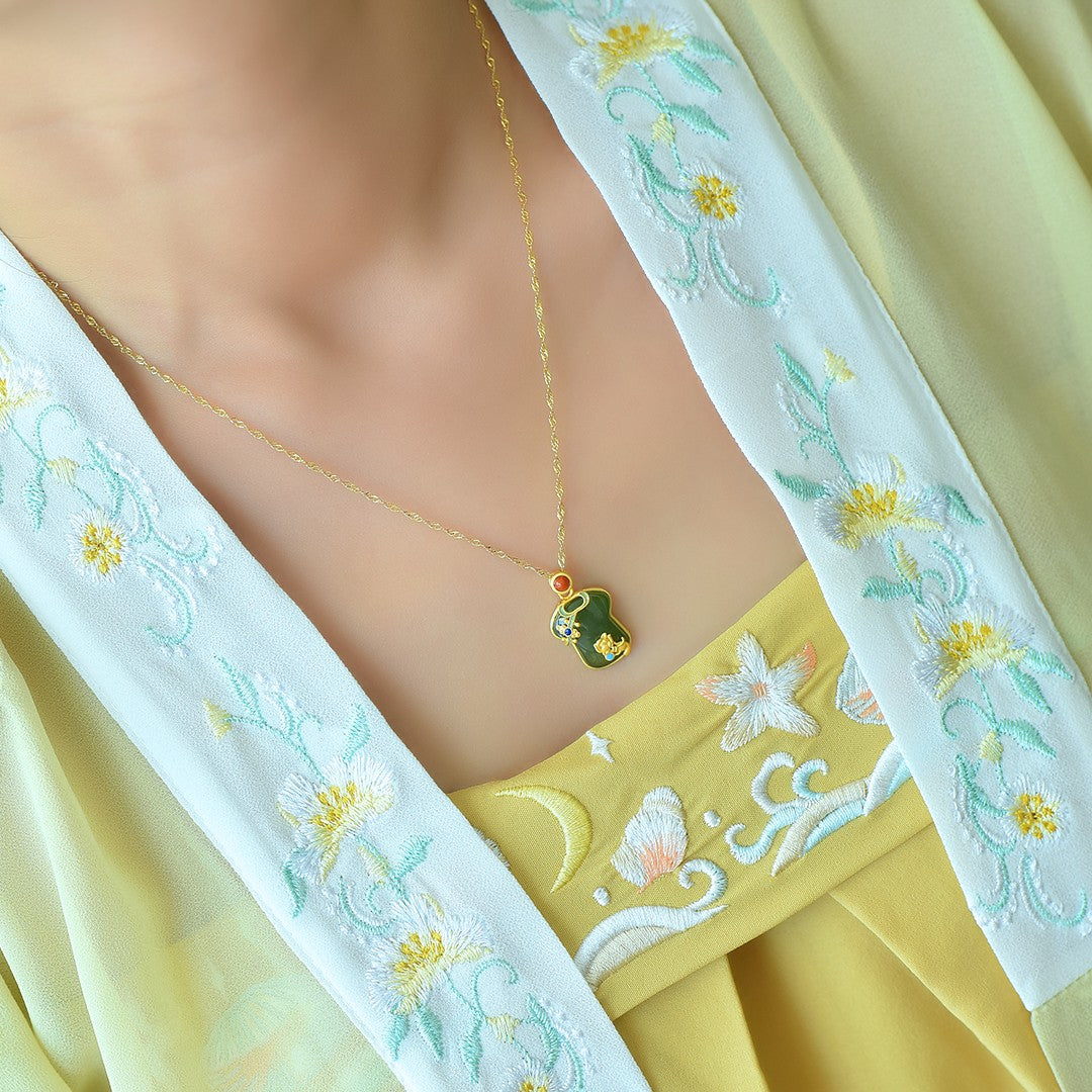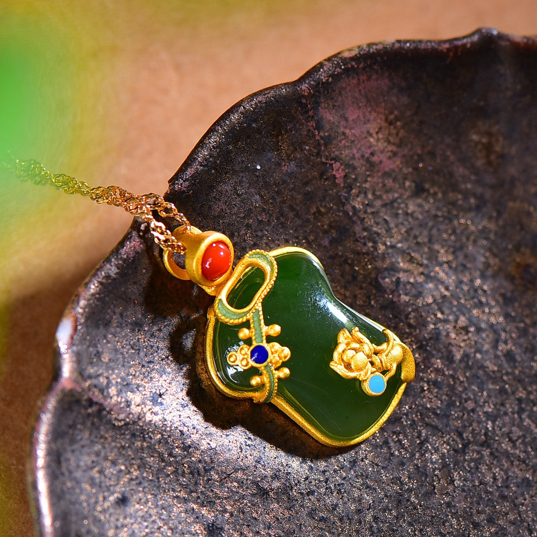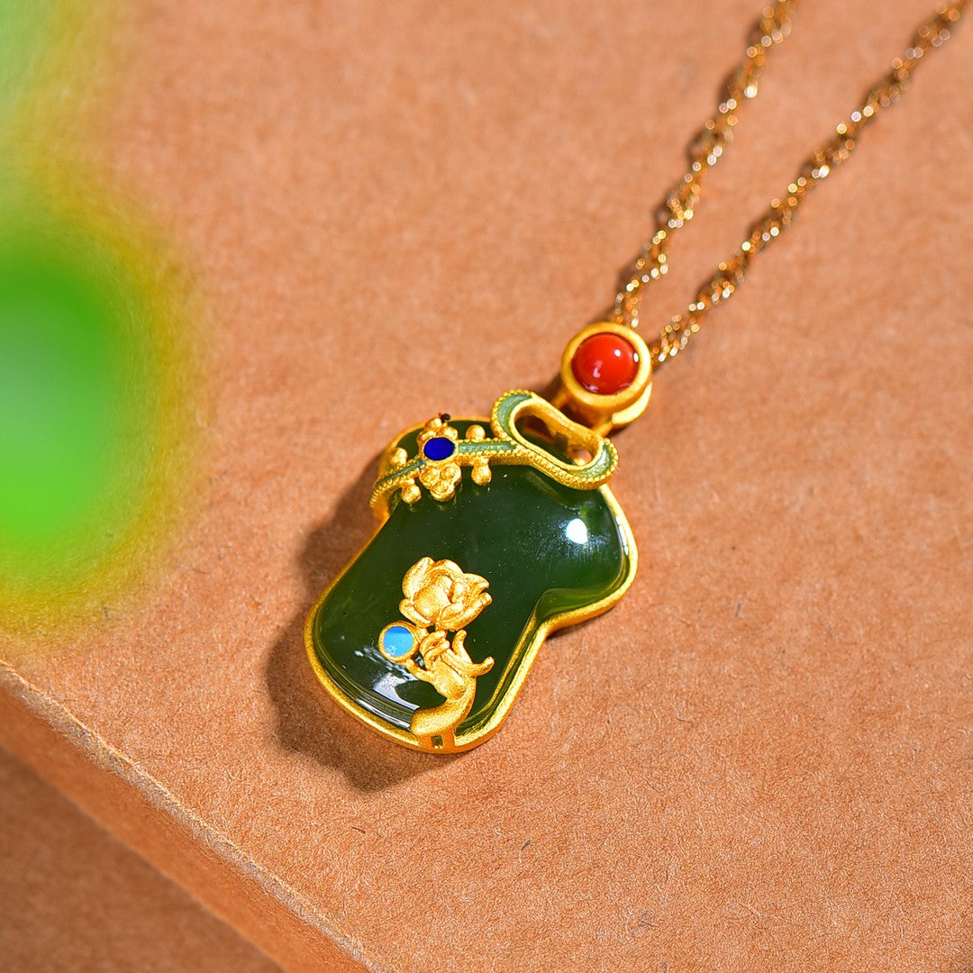 Silver gold-plated Hetian Jasper Qikaidaisheng pendant, jade size: 13mmx16mm   银镀金镶和田碧玉旗开得胜吊坠