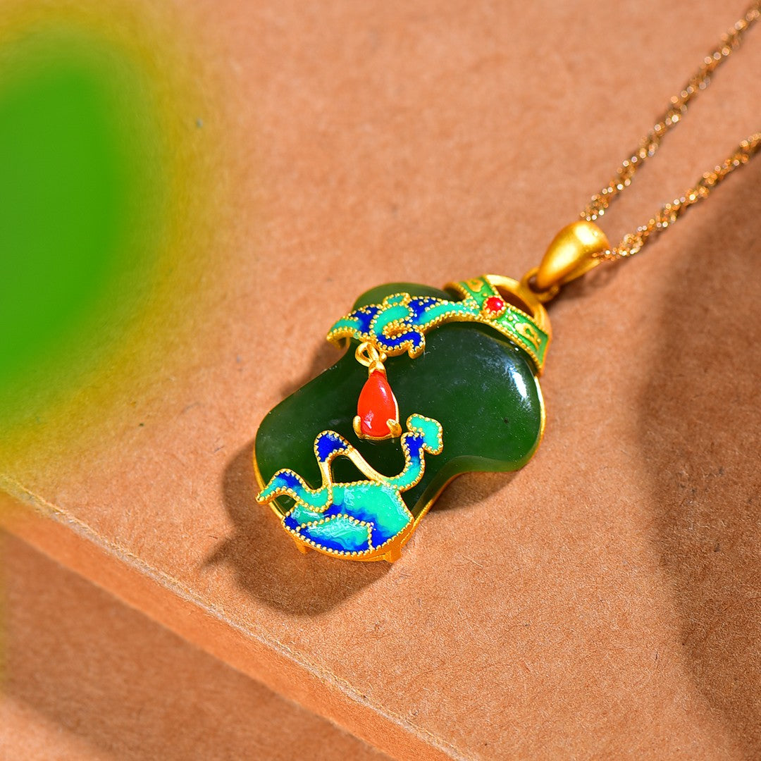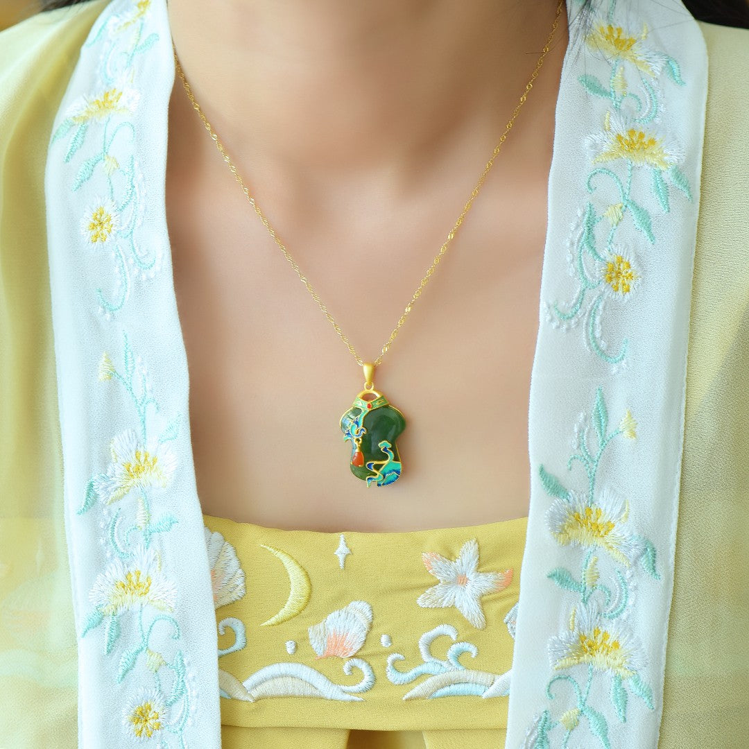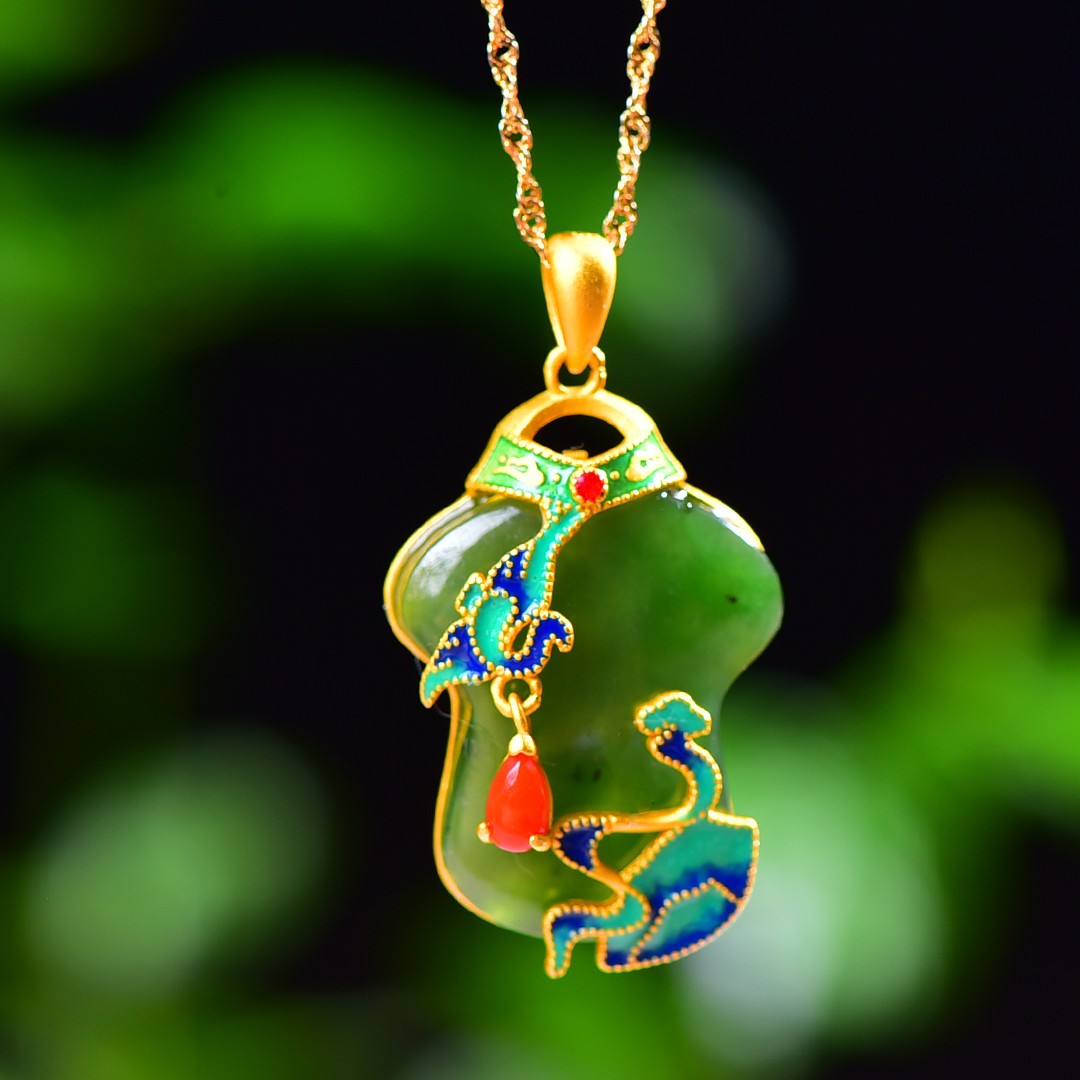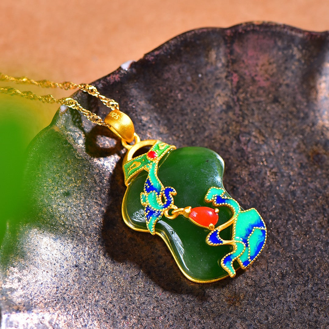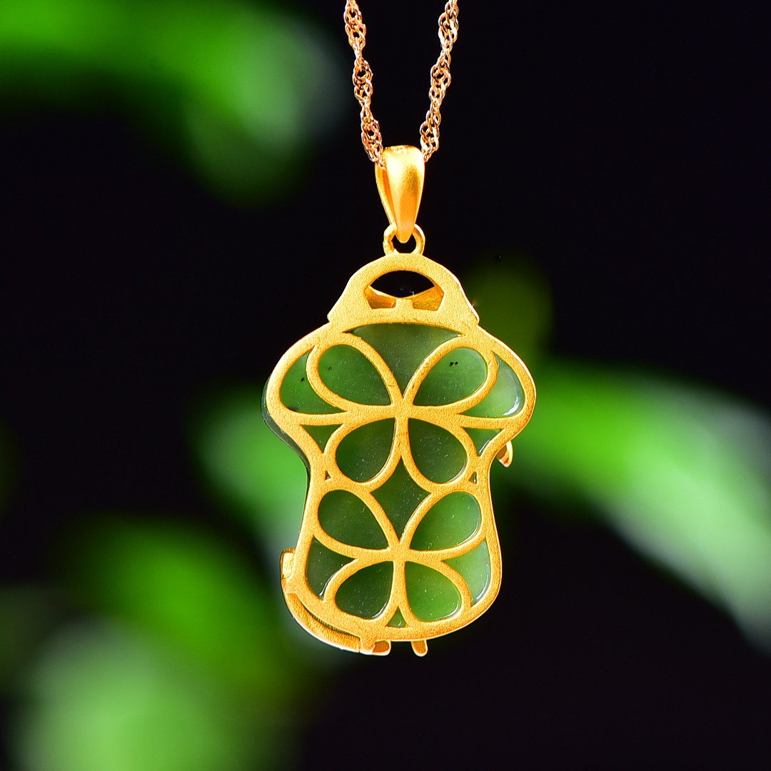 Silver gold plated Hetian jade pendant