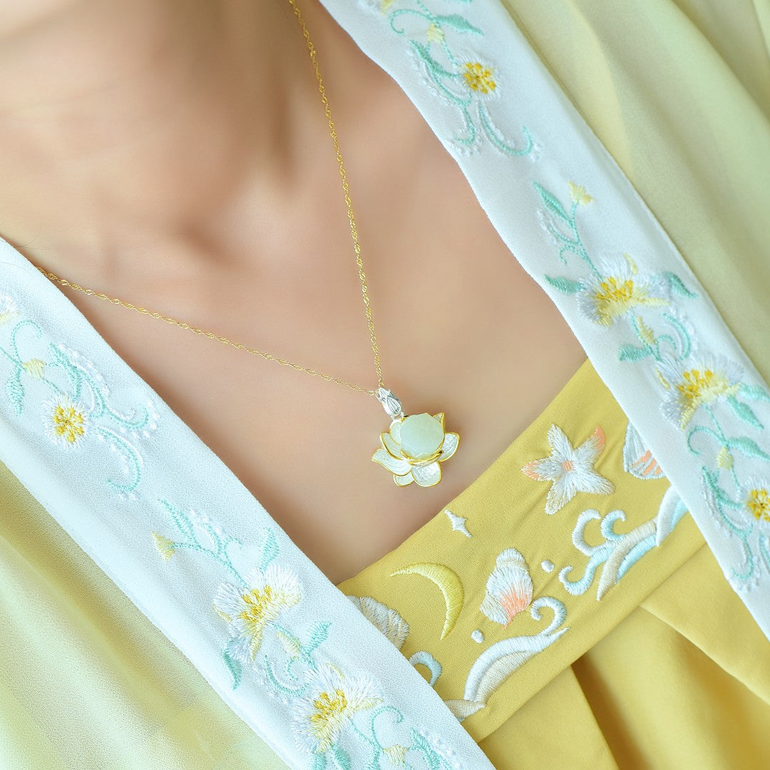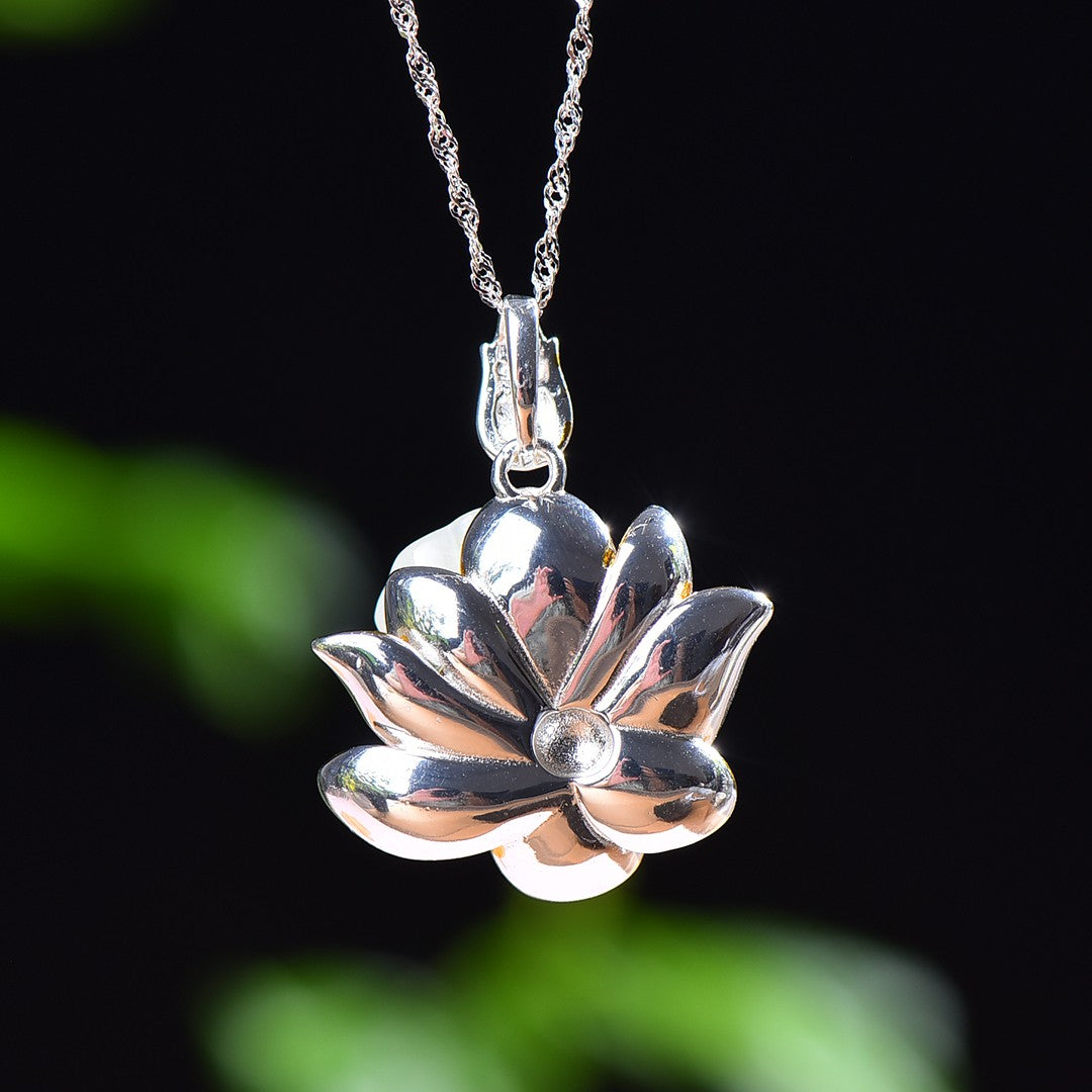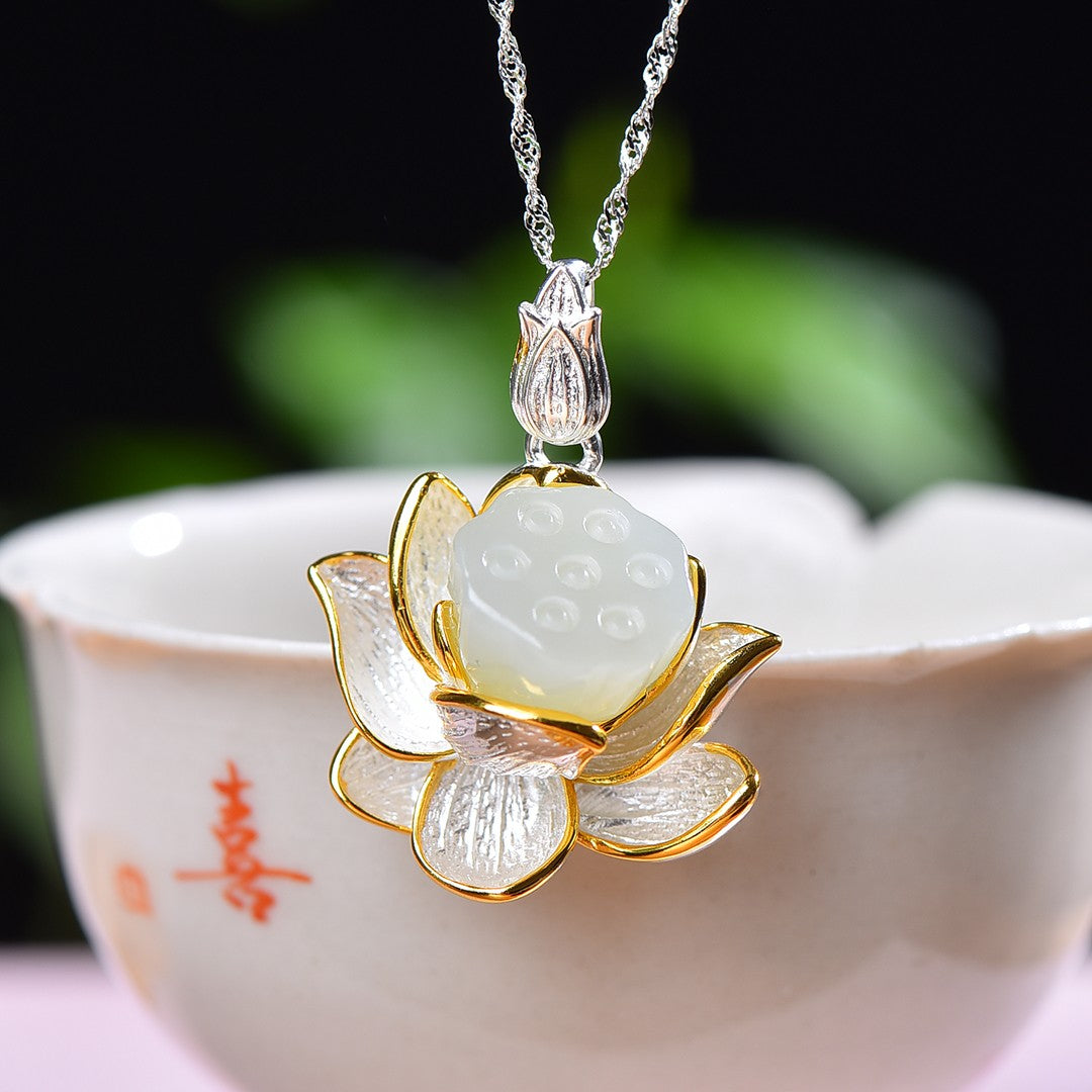 Silver gold-plated Hetian white jade lotus pendant with many children and many blessings., jade size: 12mmx12mm   银镀金镶和田白玉莲蓬多子多福吊坠