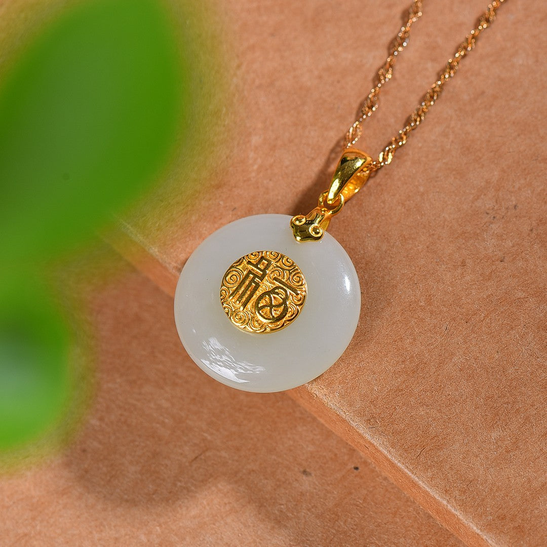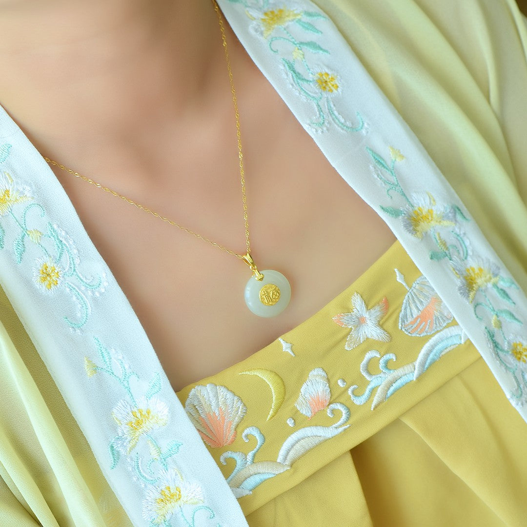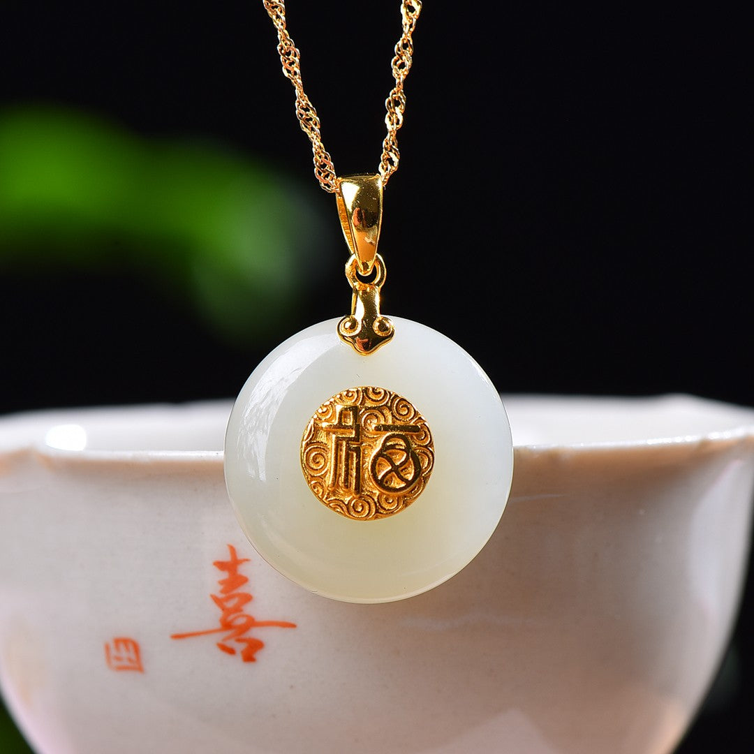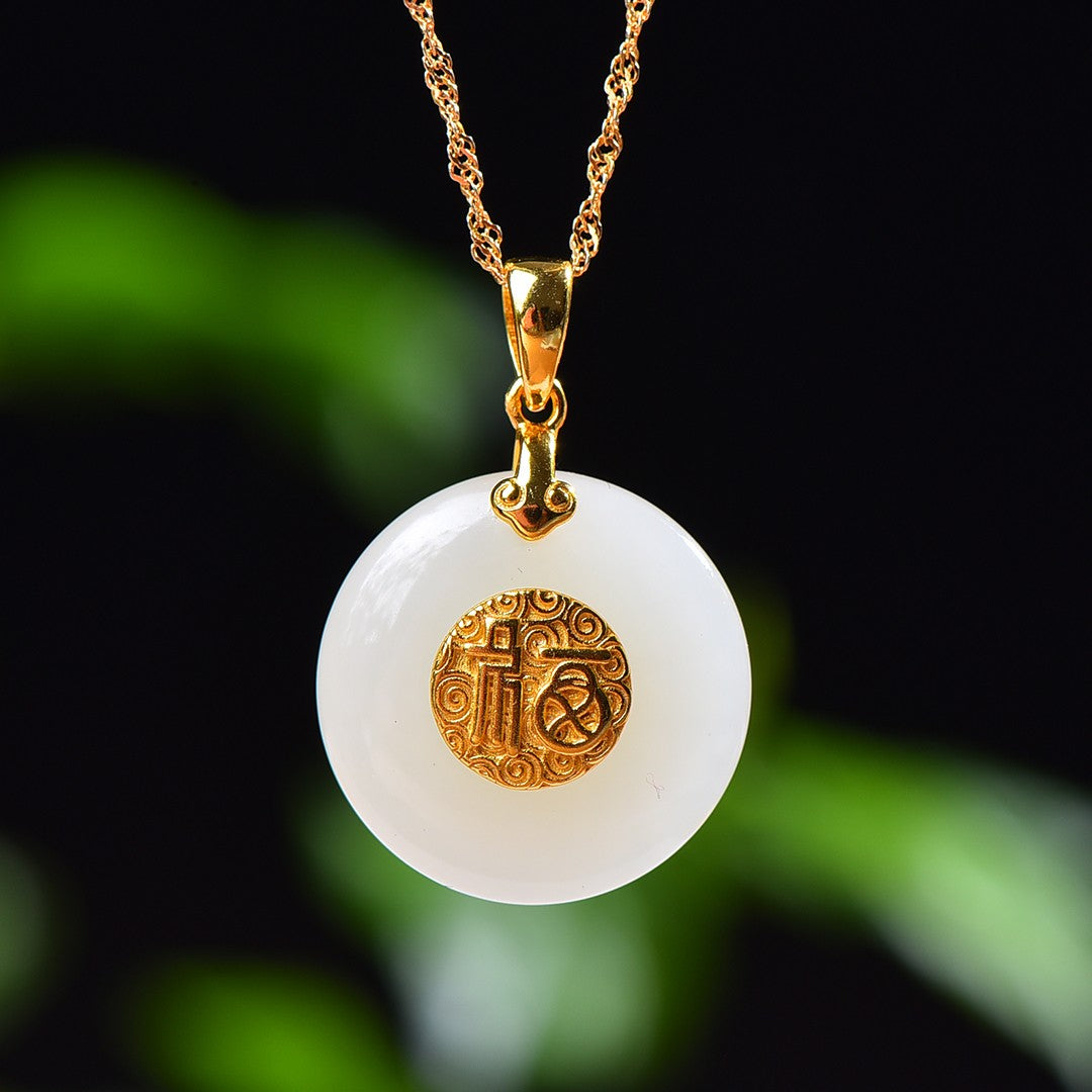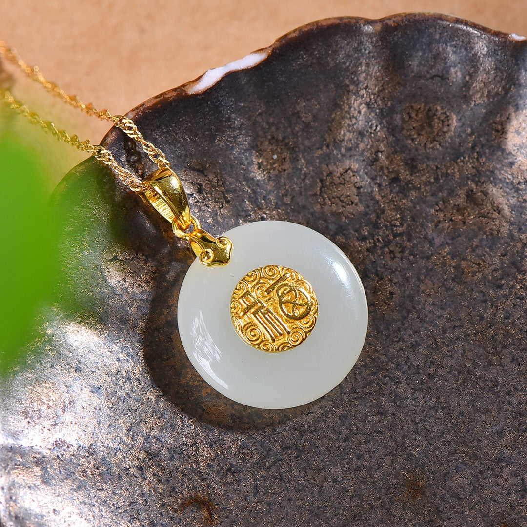 Silver gold plated Hetian jade pendant