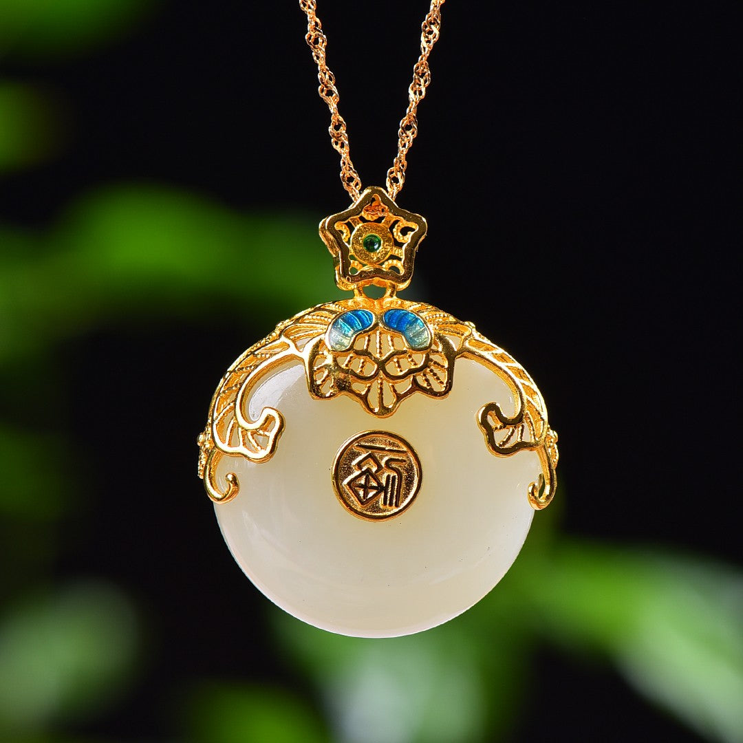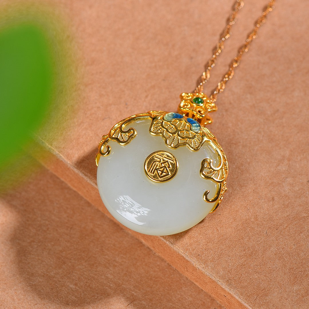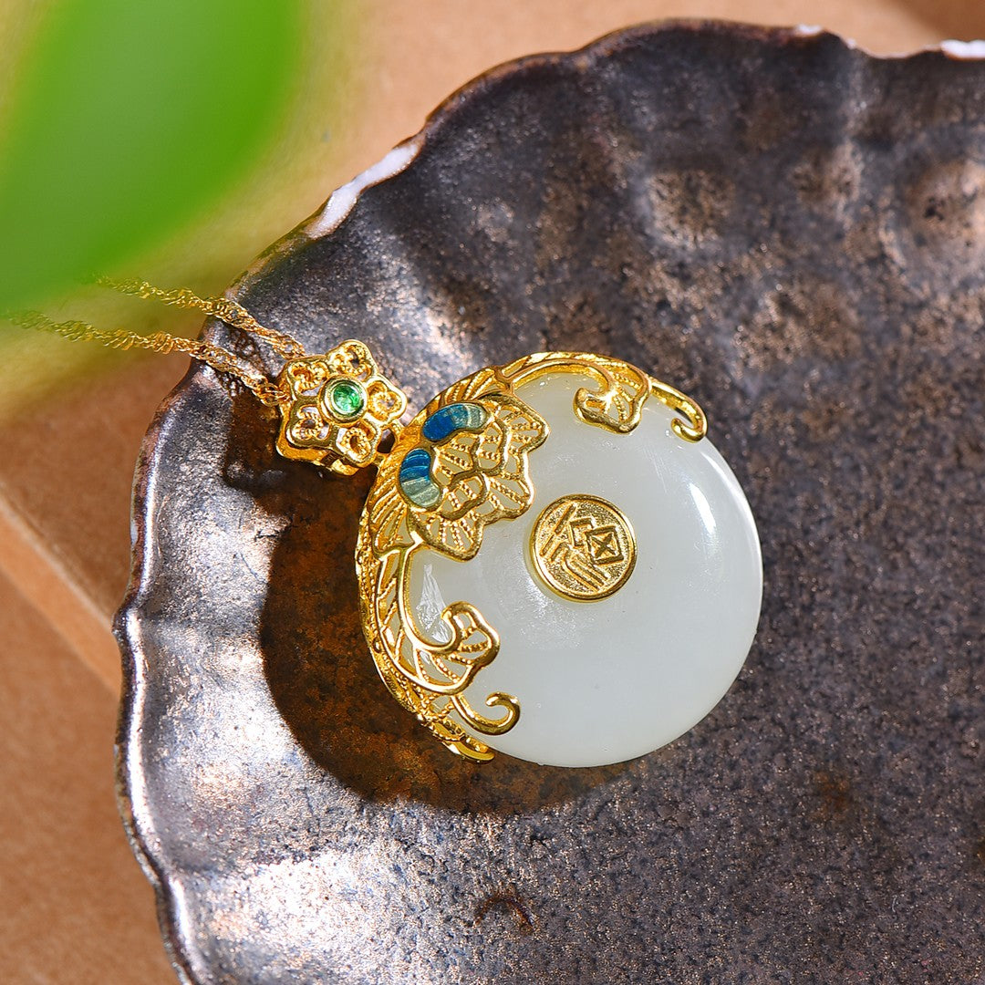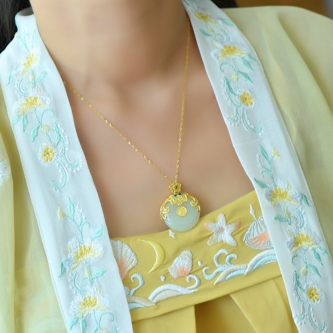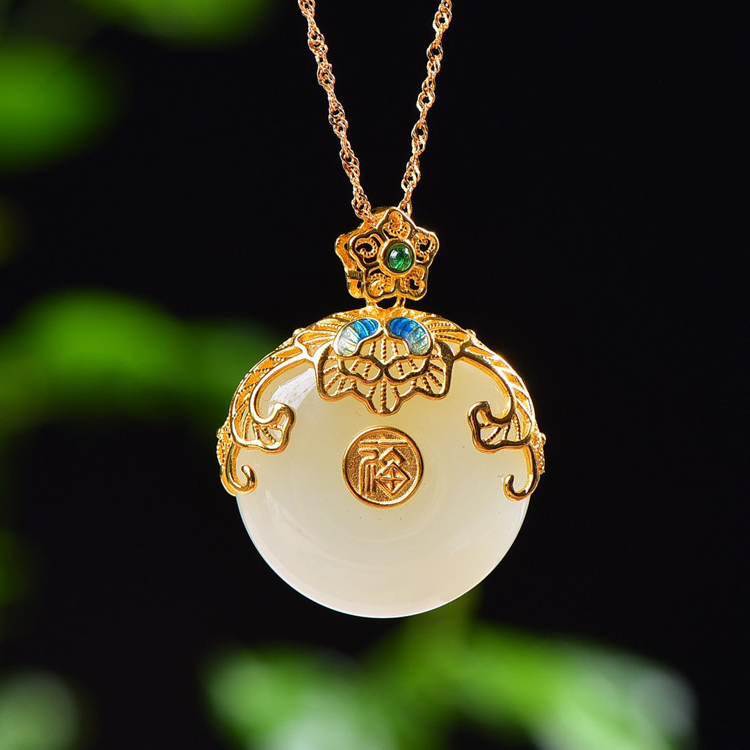 Silver gold plated Hetian jade pendant