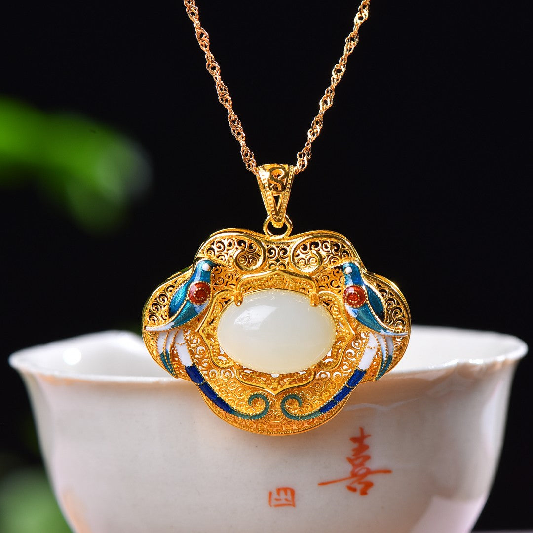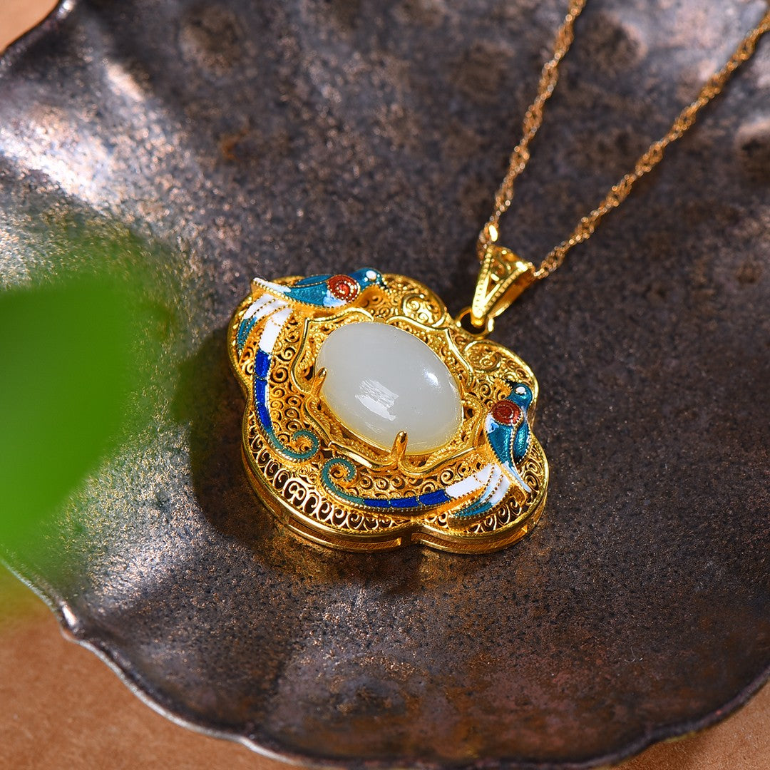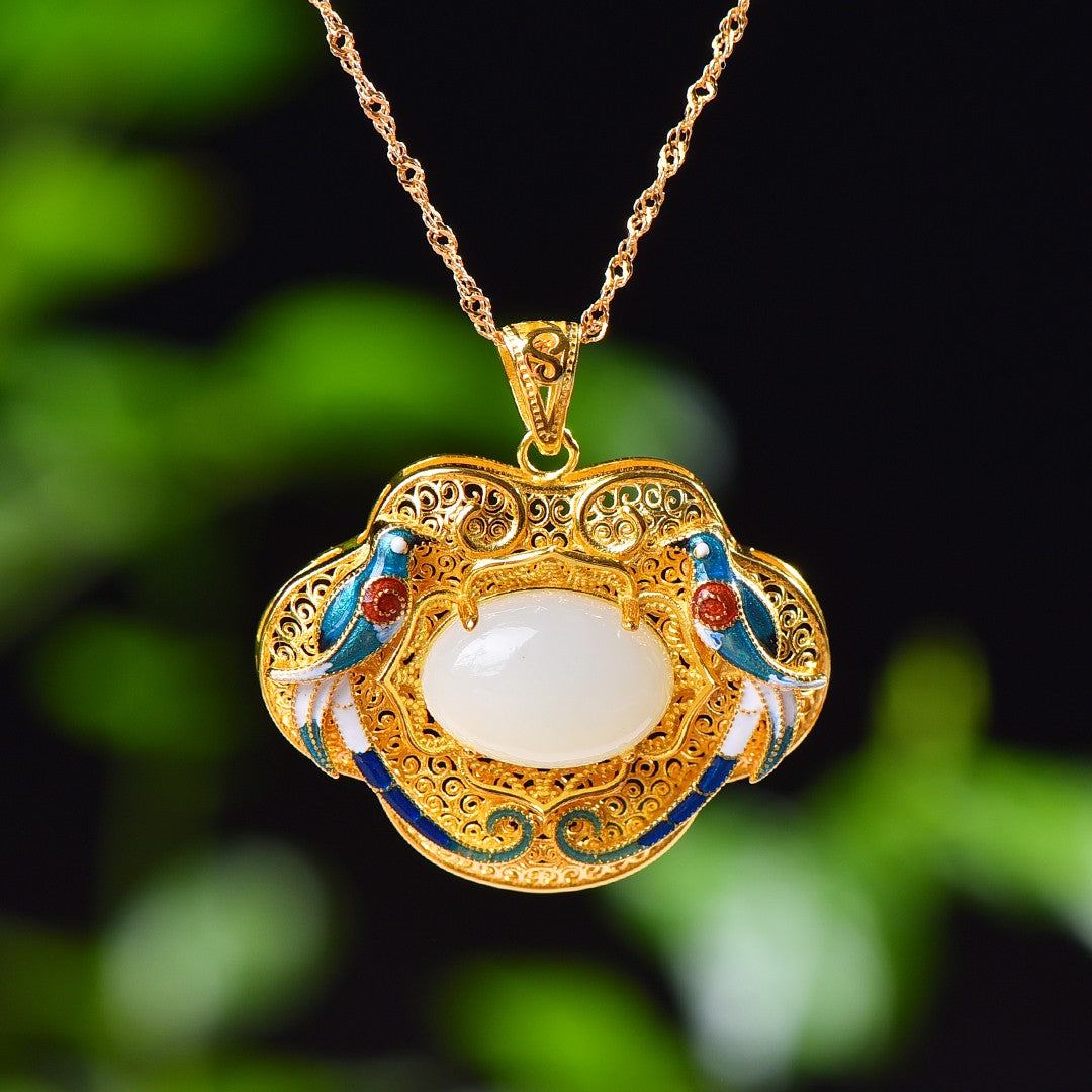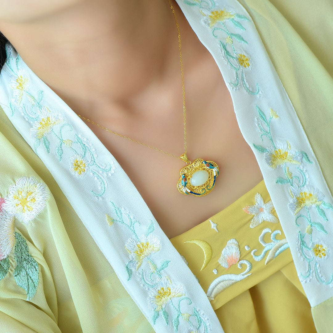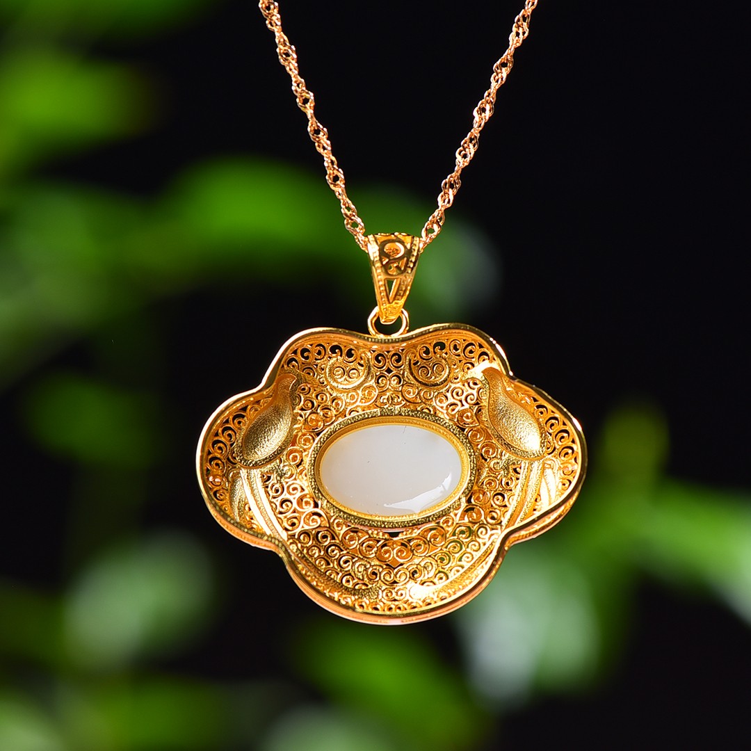 Silver gold plated Hetian jade pendant