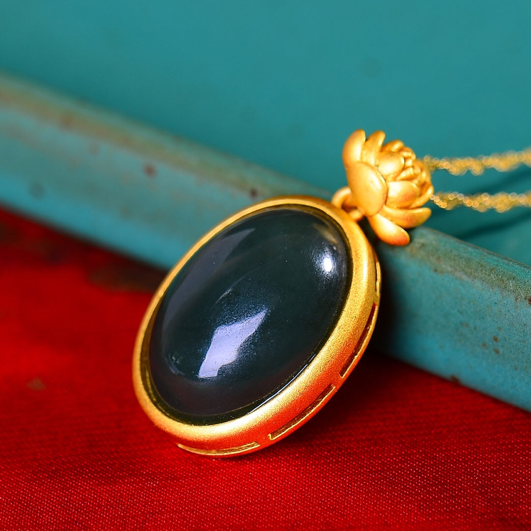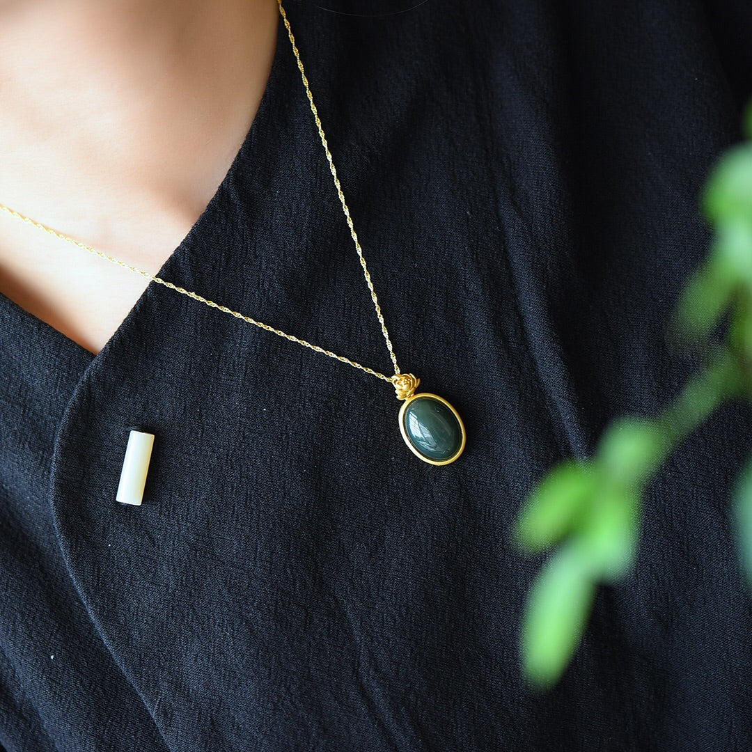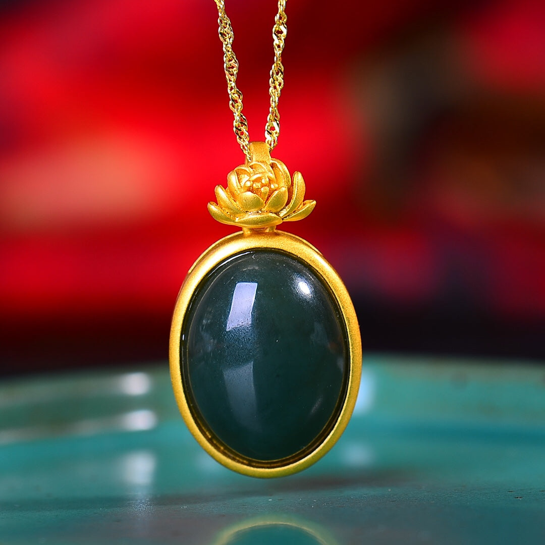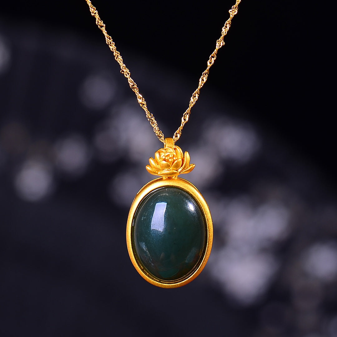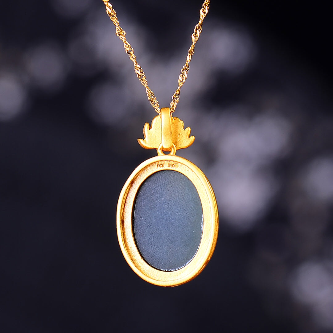 Silver gold plated Hetian jade pendant