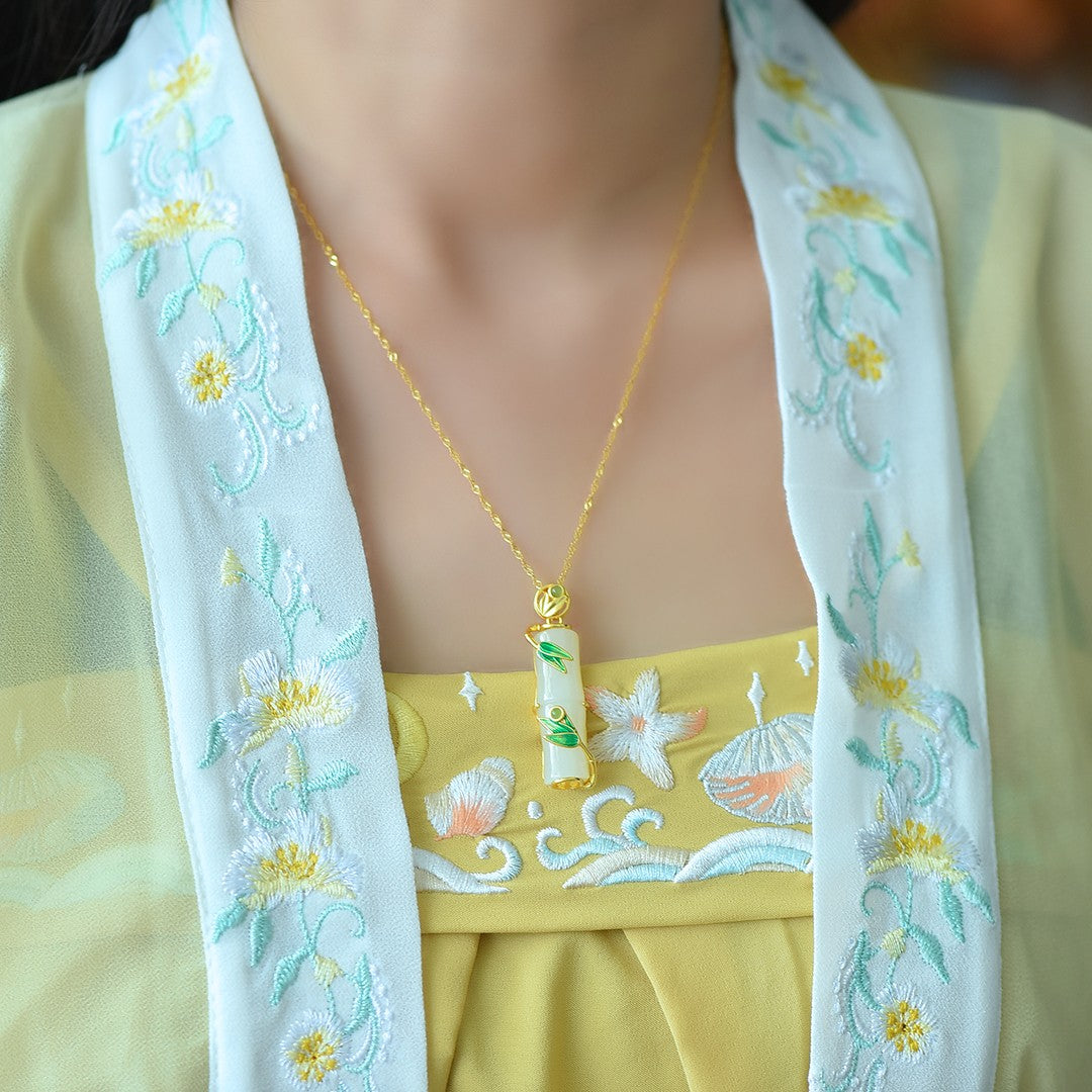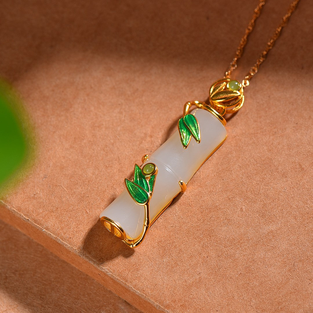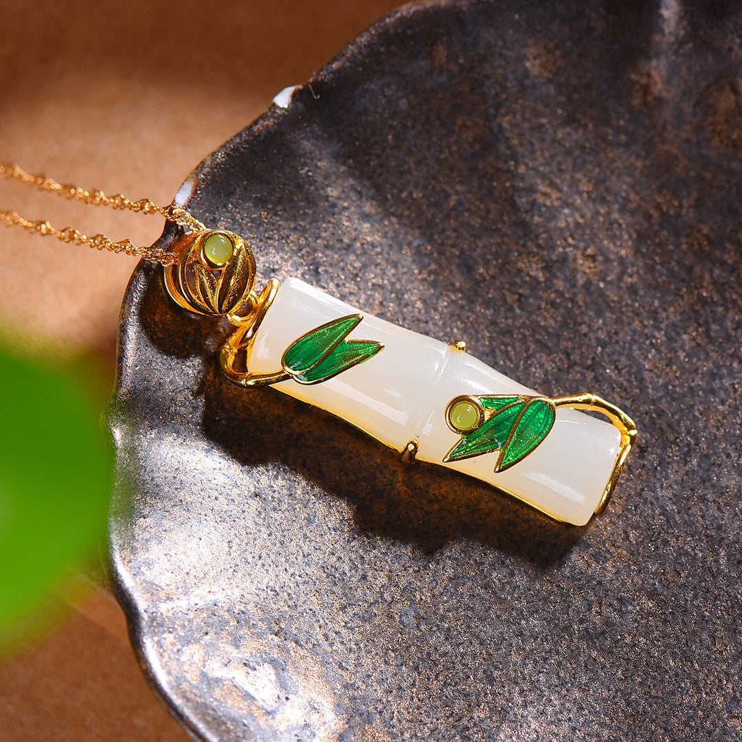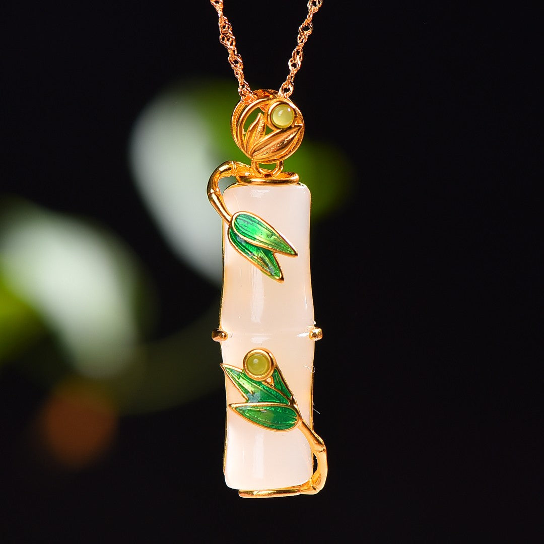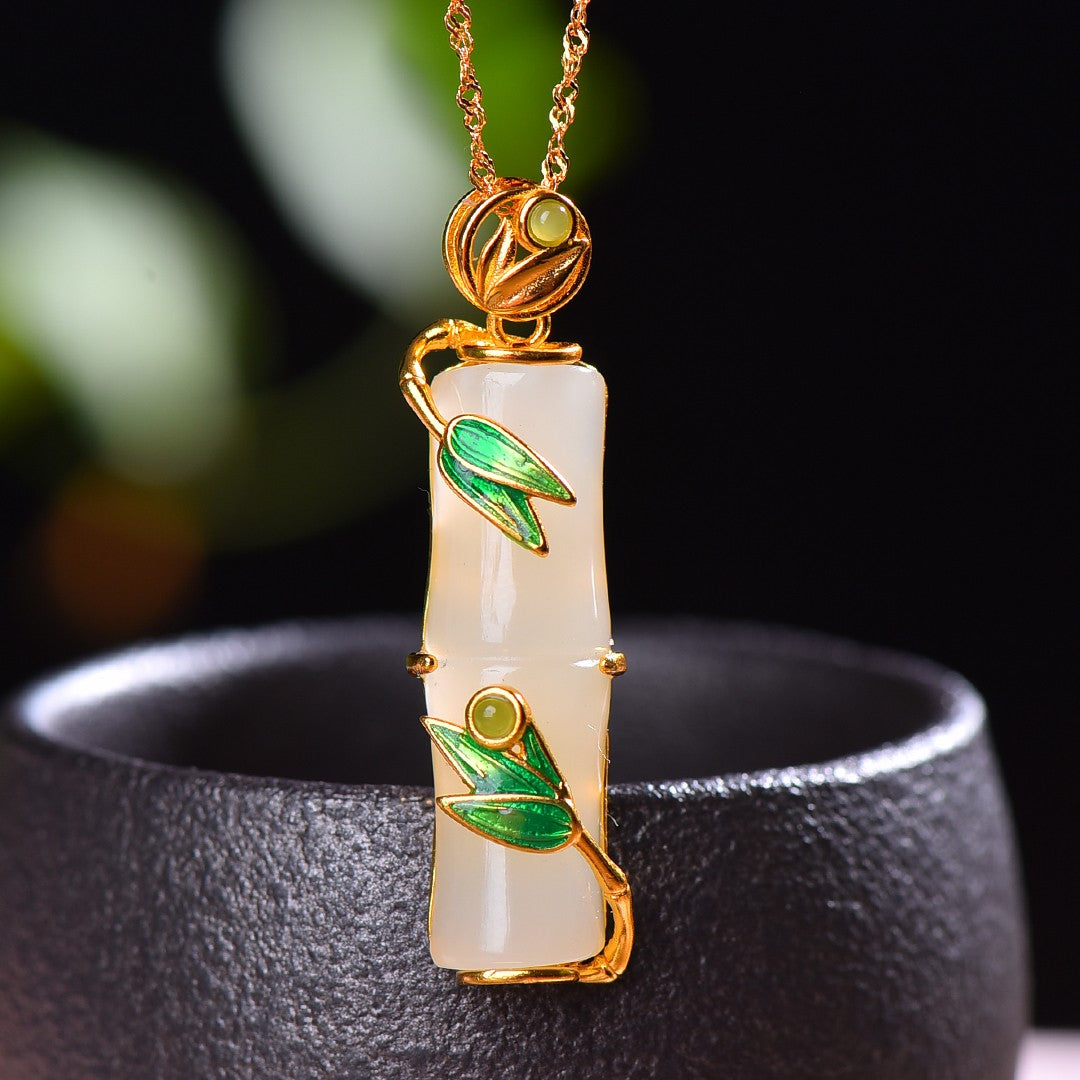 Silver gold plated Hetian jade section high enamel pendant, jade size: 10mmx31mm    银镀金镶嵌和田玉节节高珐琅吊坠