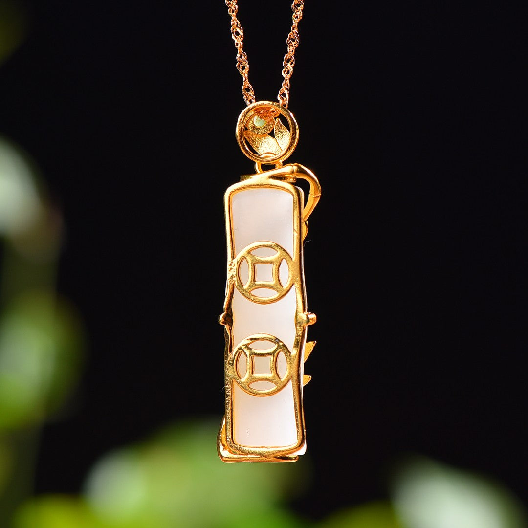Silver gold plated Hetian jade pendant