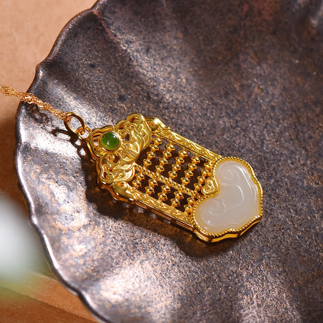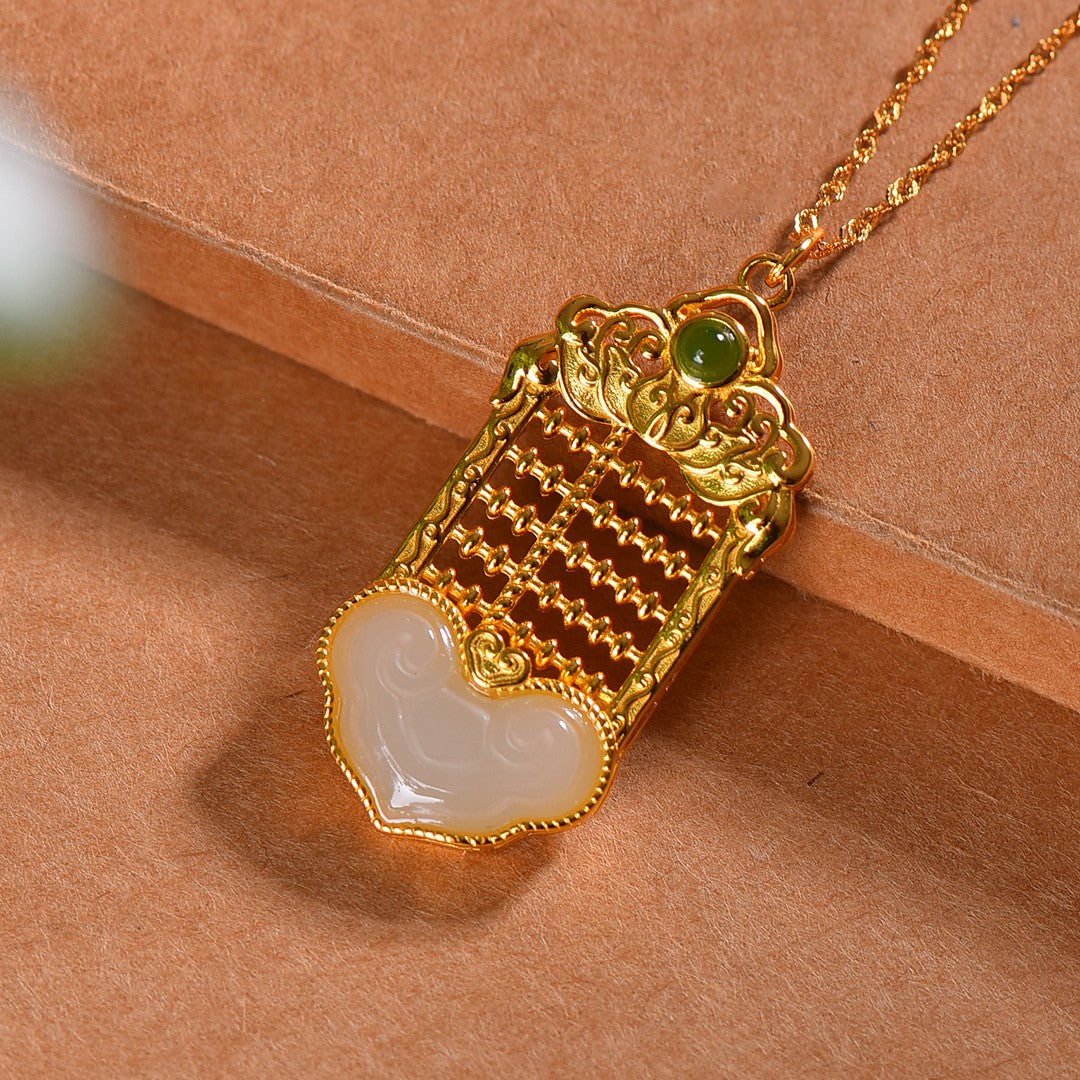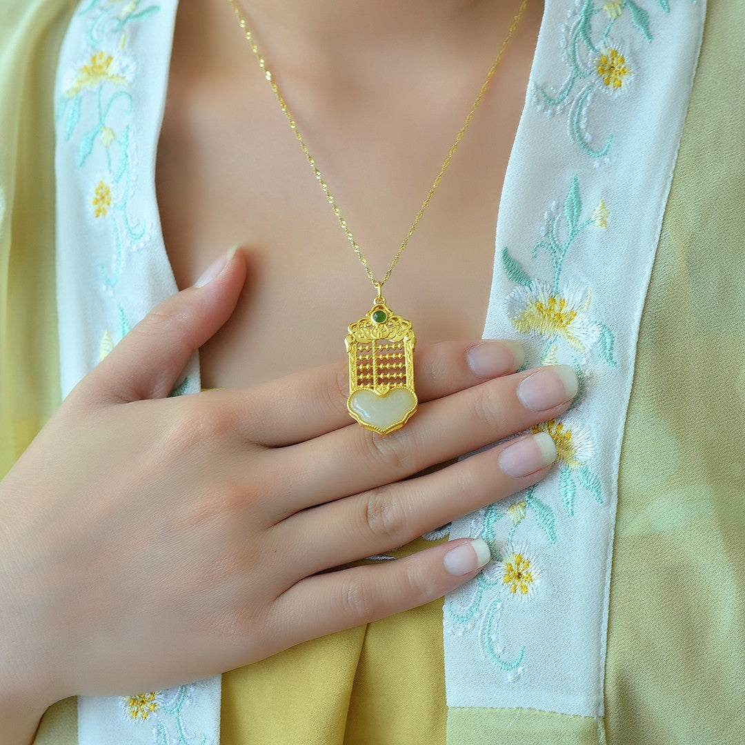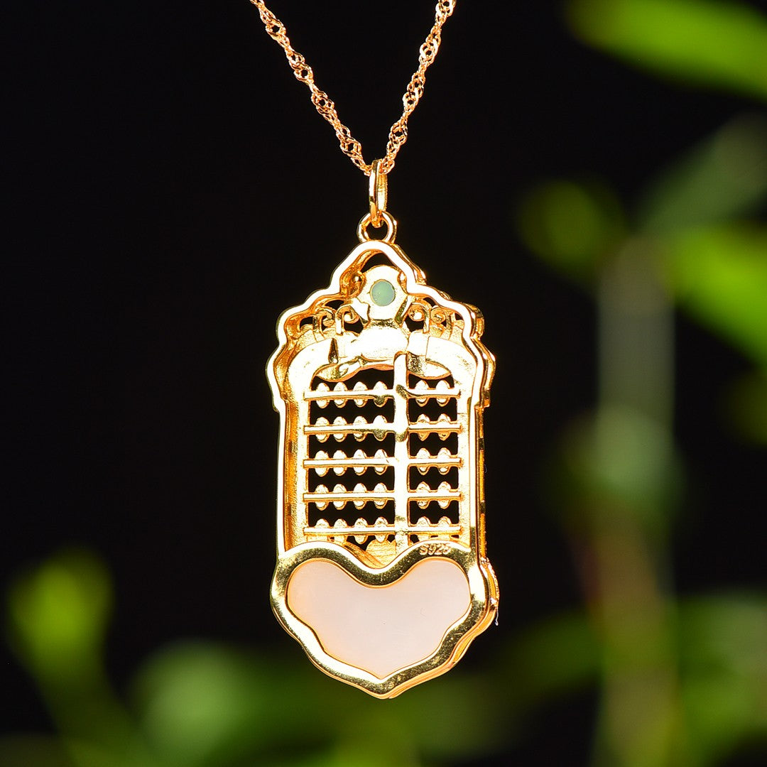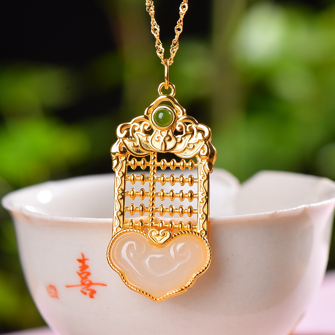 Silver gold plated Hetian jade wishful thinking pendant, jade size: 11mmx17mm    银镀金镶嵌和田玉如意算盘吊坠