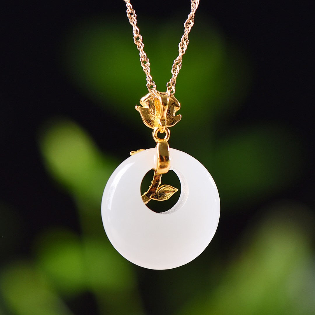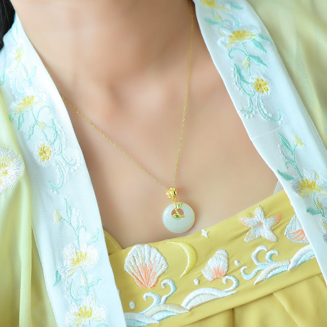 Silver gold plated Hetian jade pendant