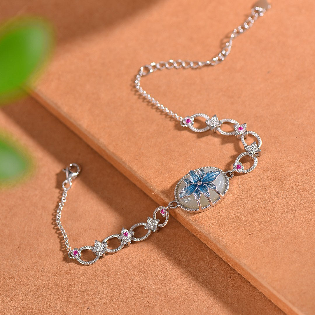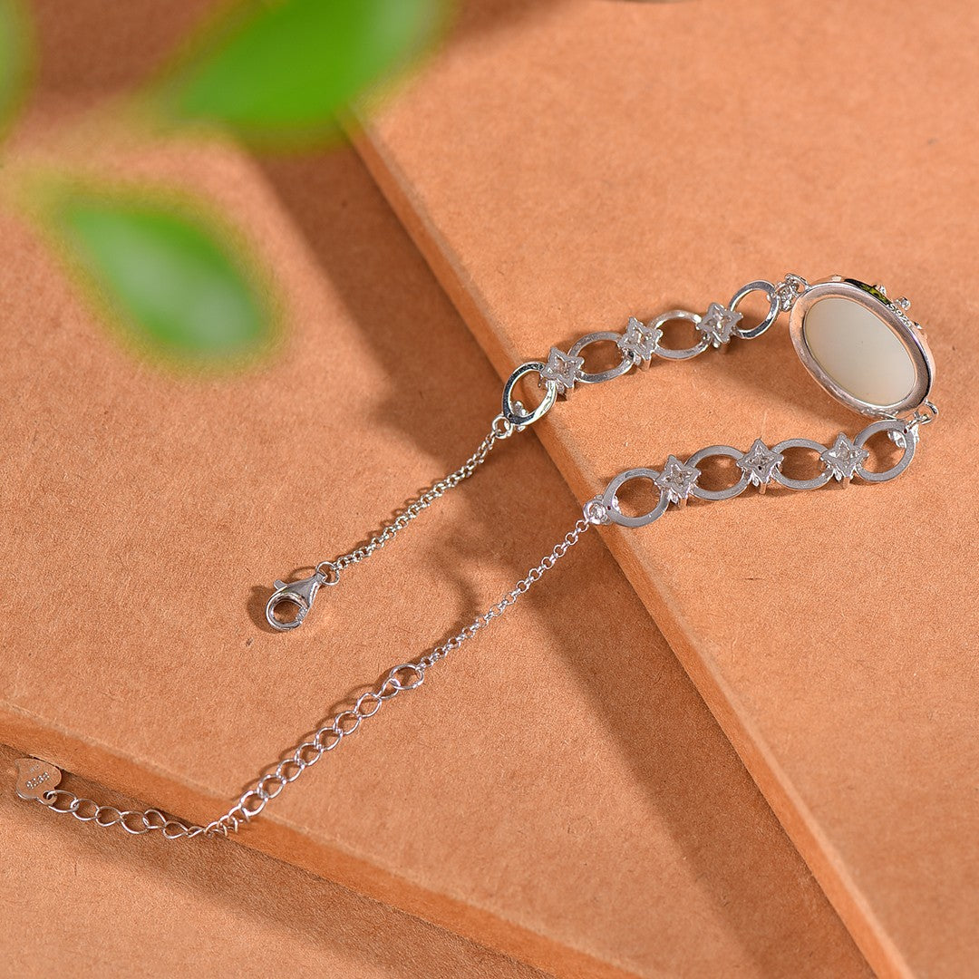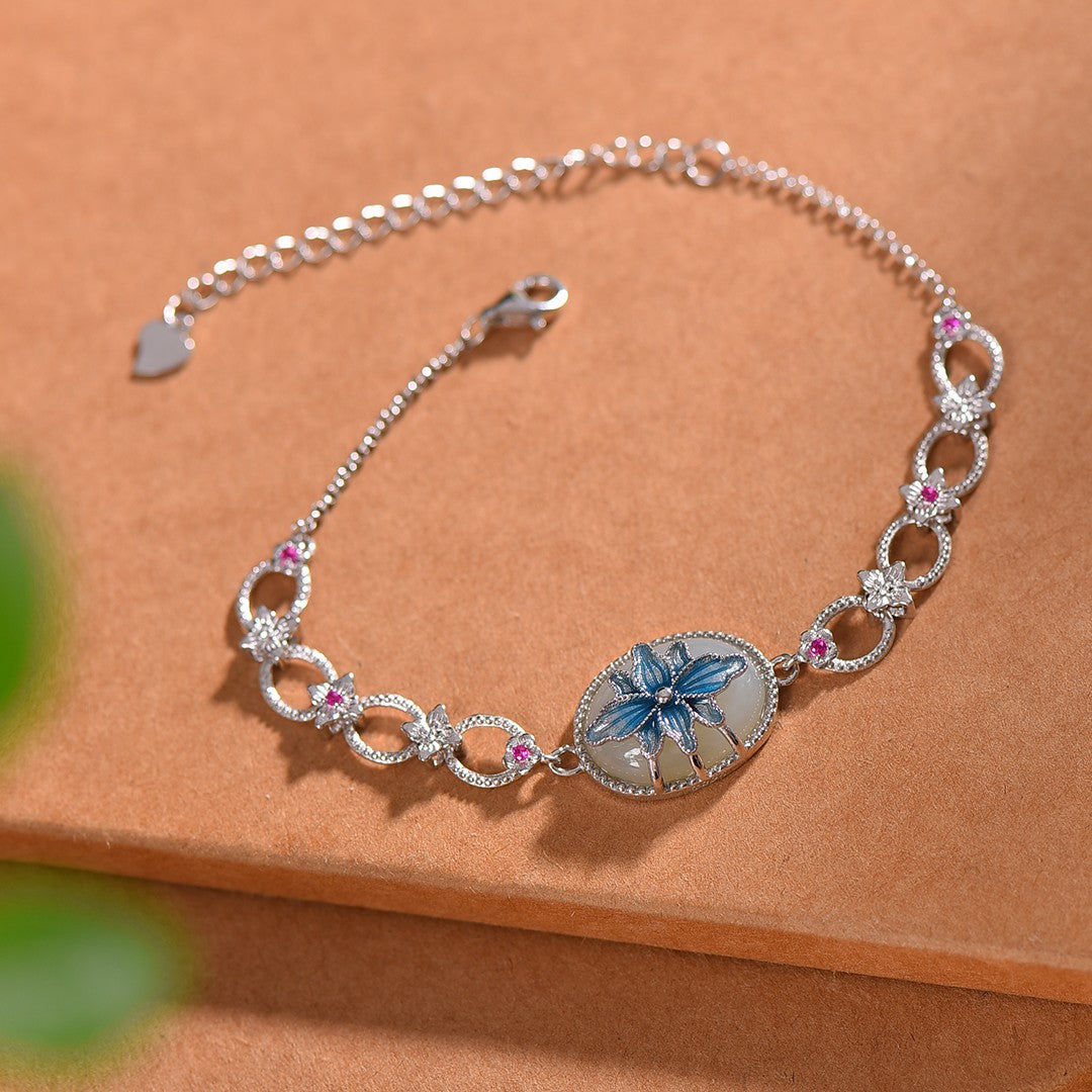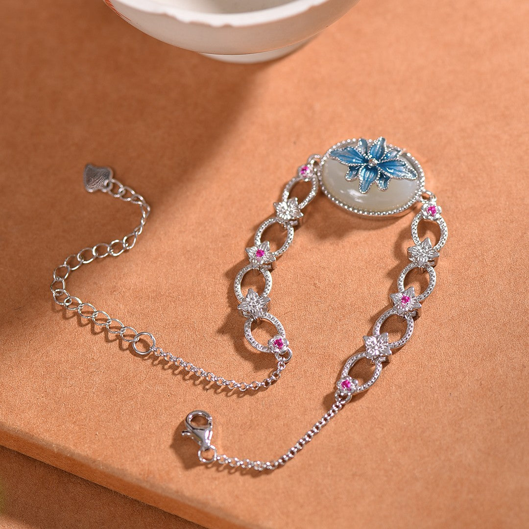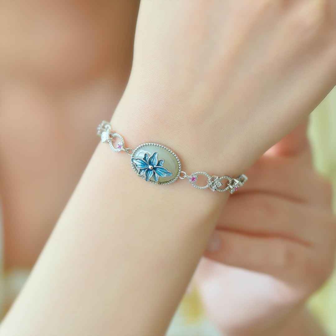 Silver inlaid Hetian jade cabochon enamel bracelet
