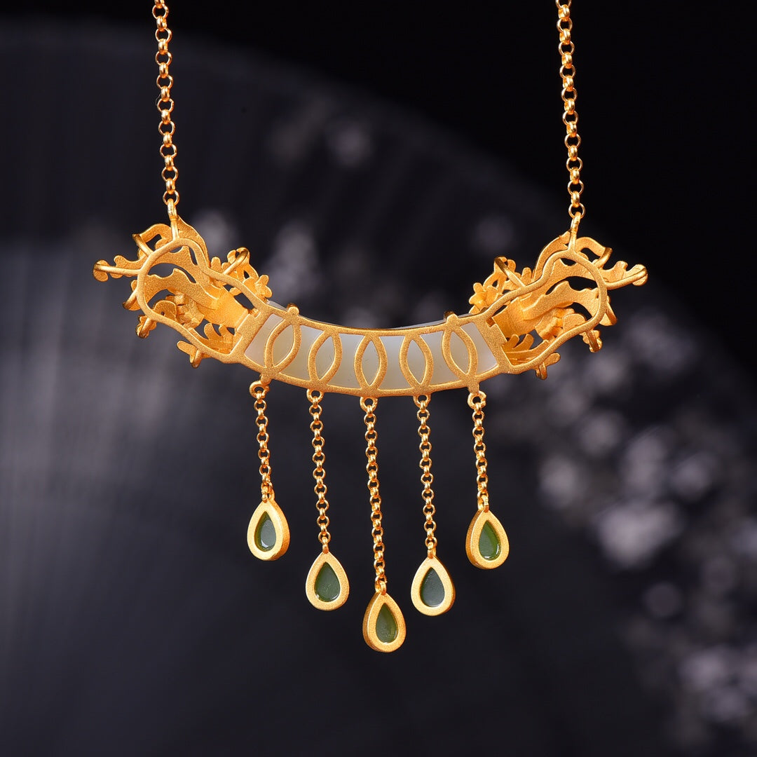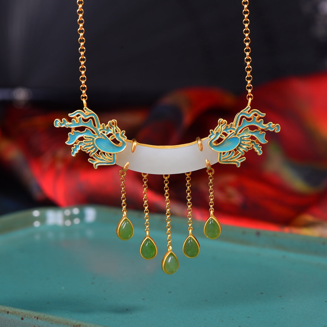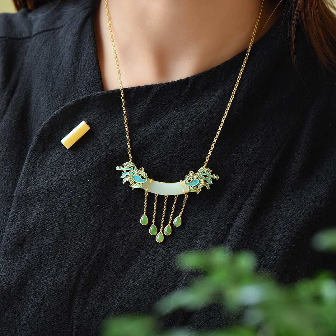 Silver inlaid Hetian jade curved enamel pendant