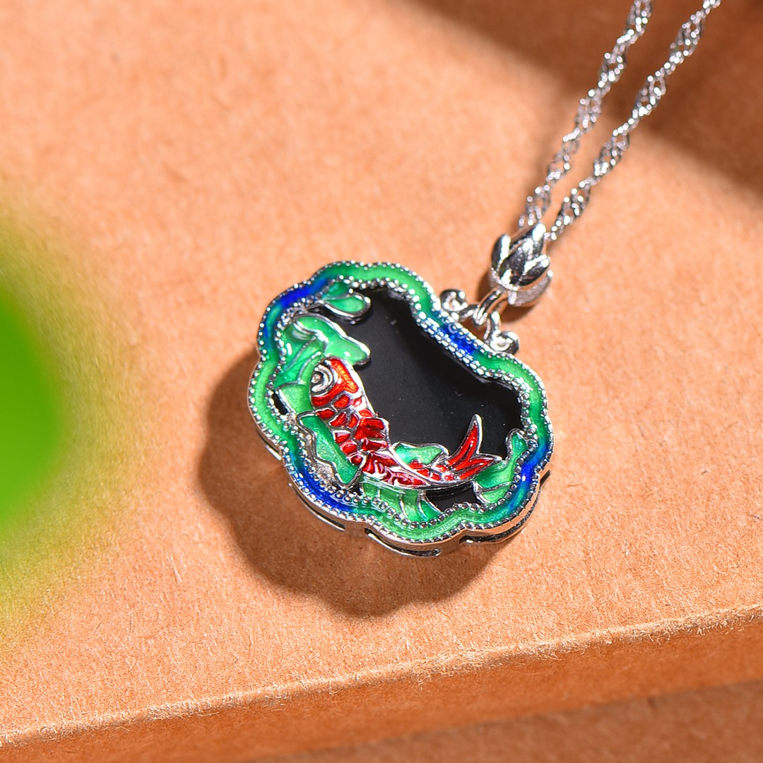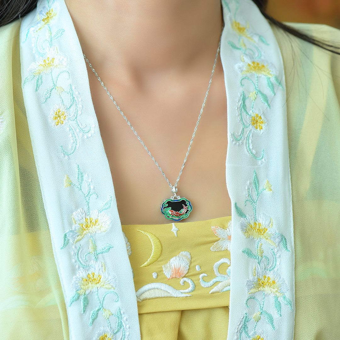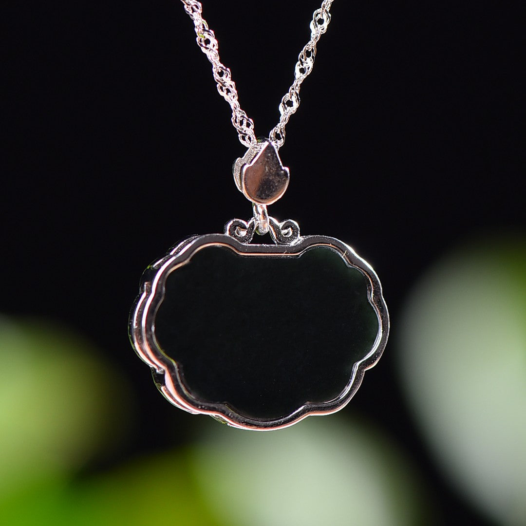 Silver inlaid Hetian jade enamel Ruyi lock pendant