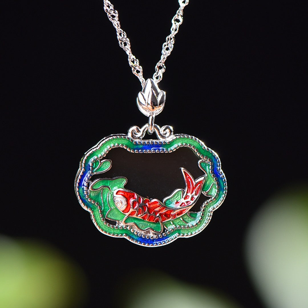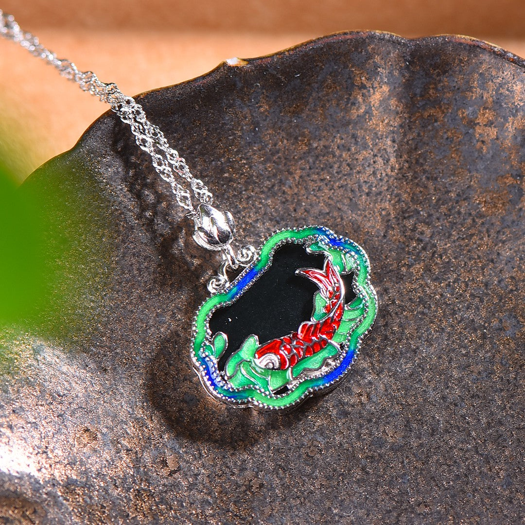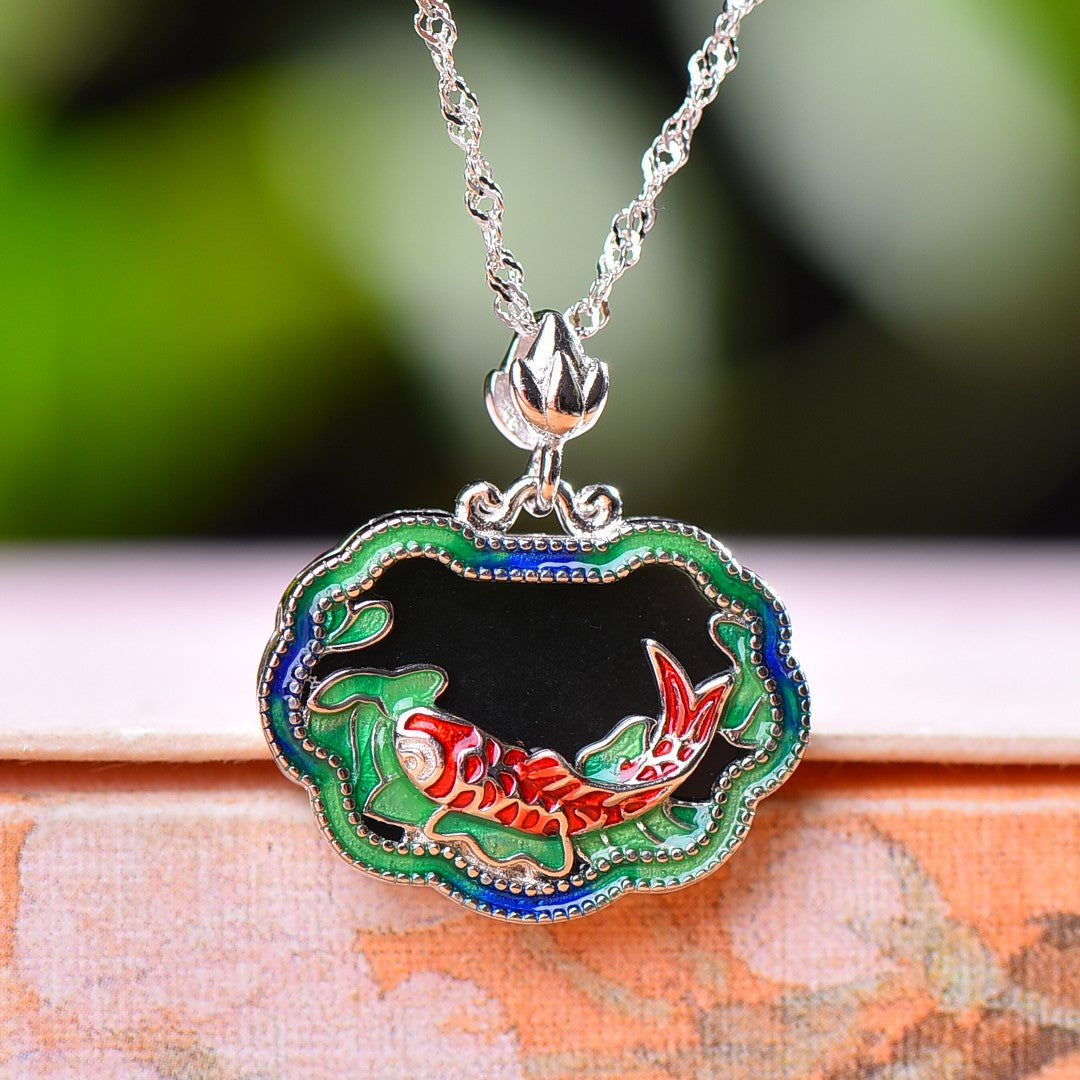 Silver inlaid Hetian jade enamel Ruyi lock pendant