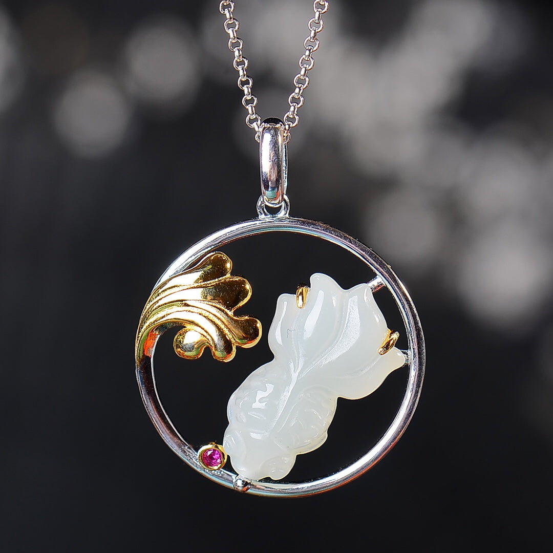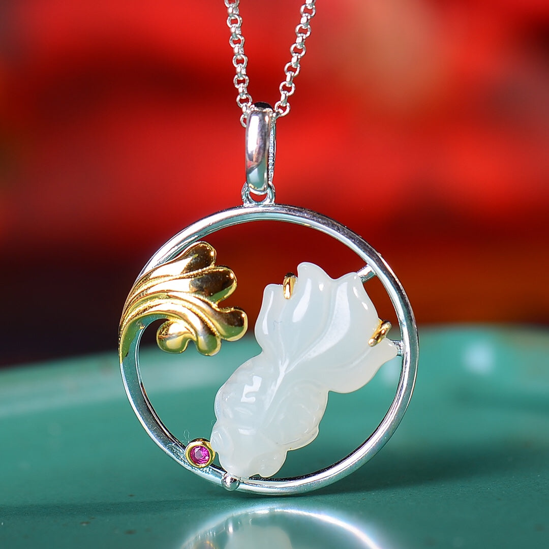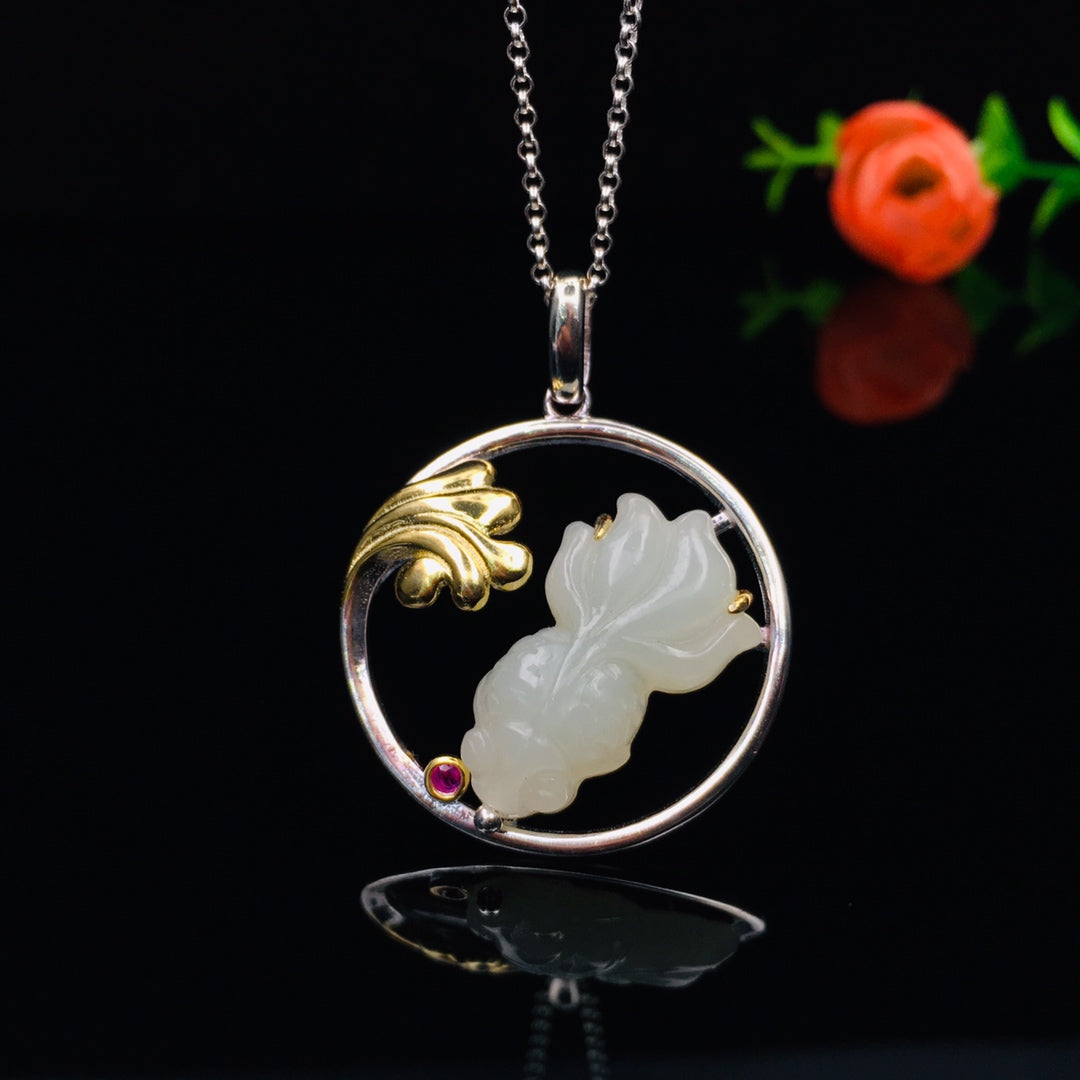Silver inlaid Hetian jade fish pendant every year