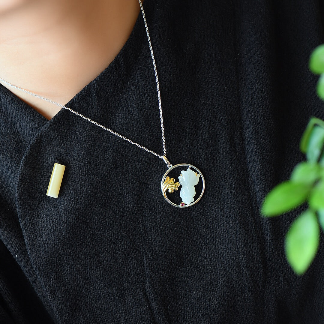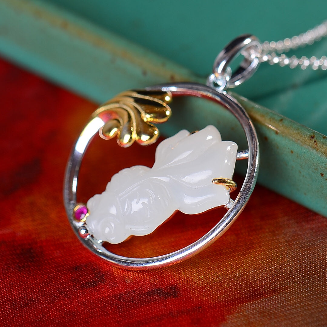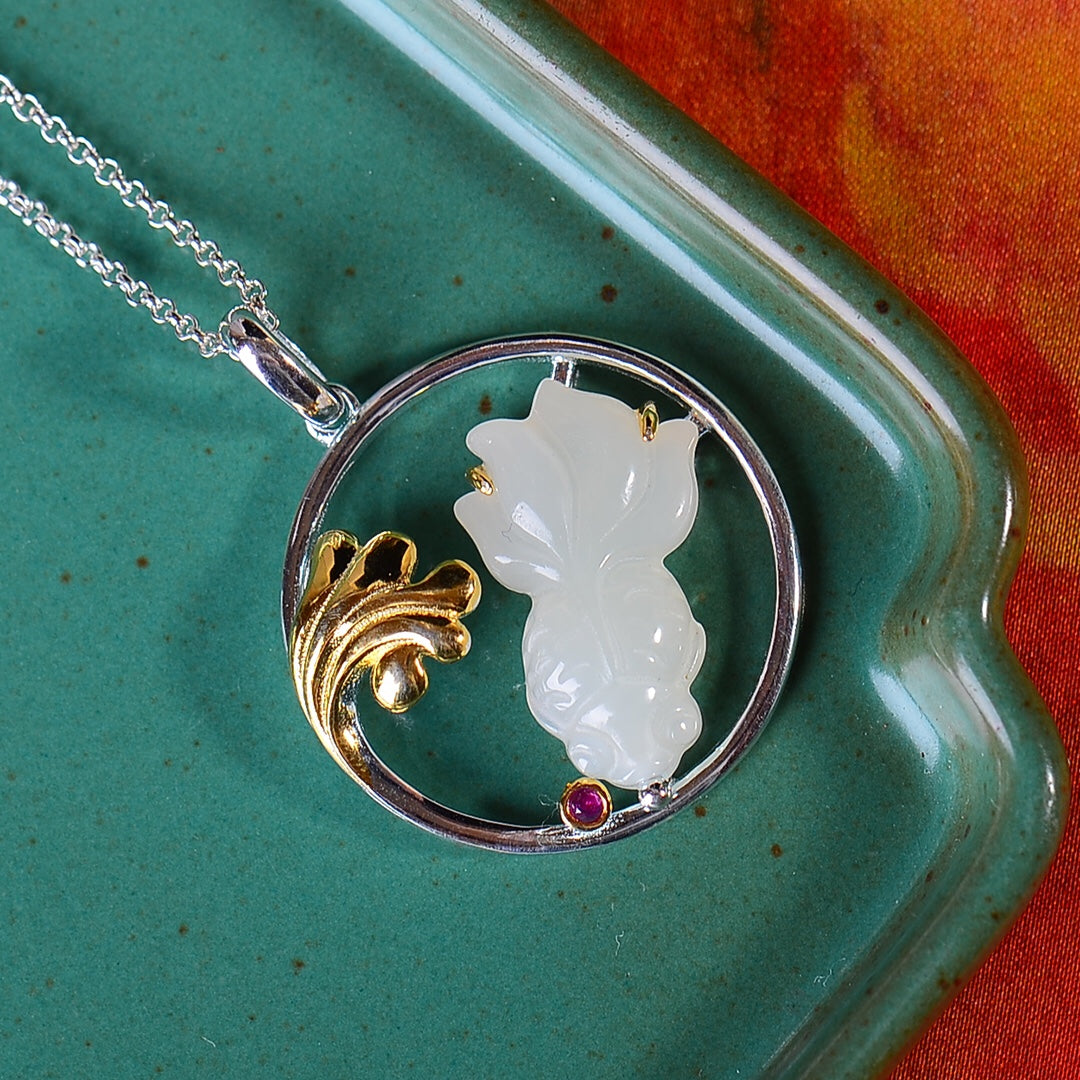 Silver inlaid Hetian jade fish pendant every year