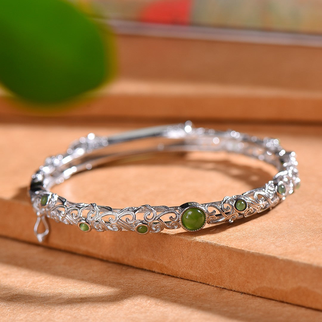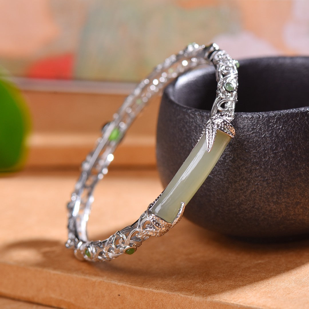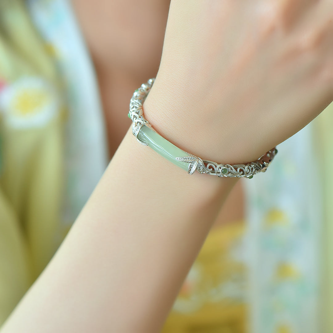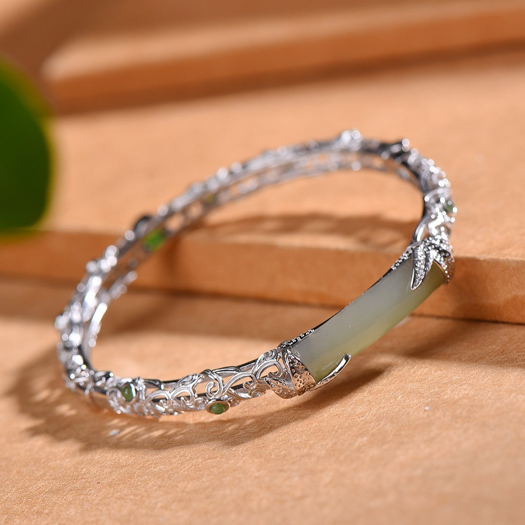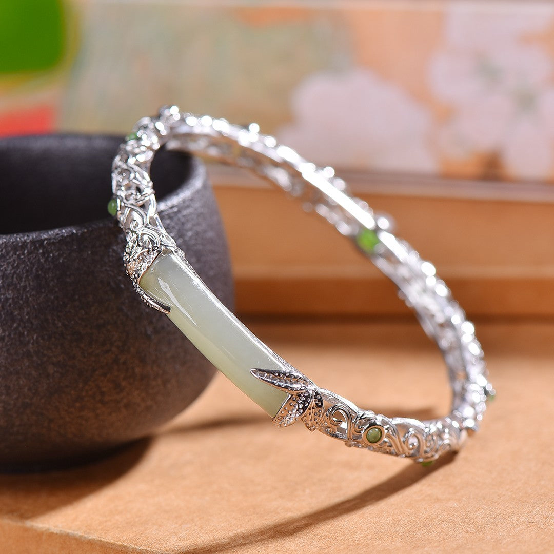 Silver inlaid Hetian jade hollow bamboo bracelet