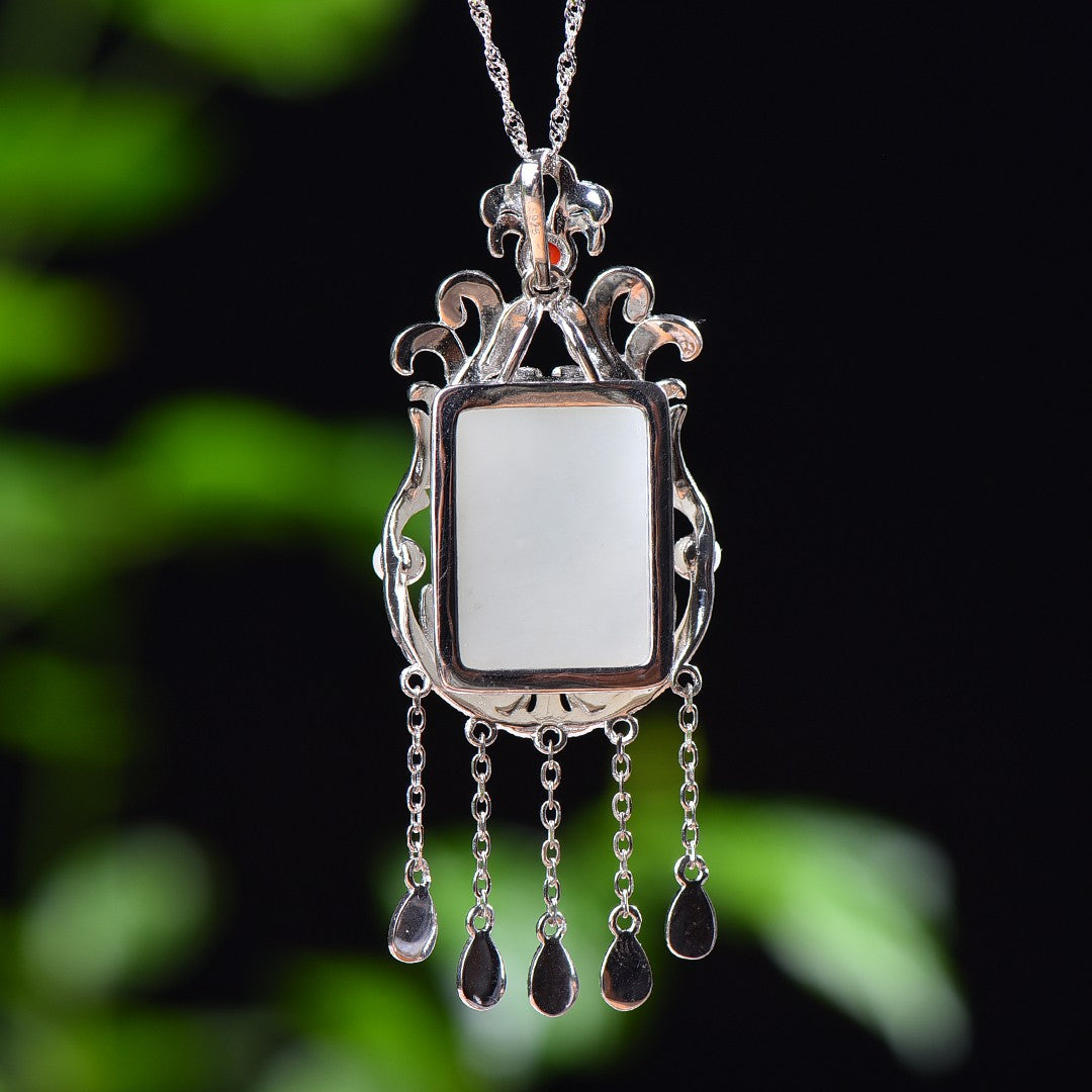 Silver inlaid Hetian jade pendant