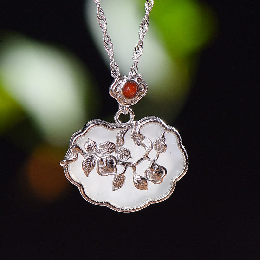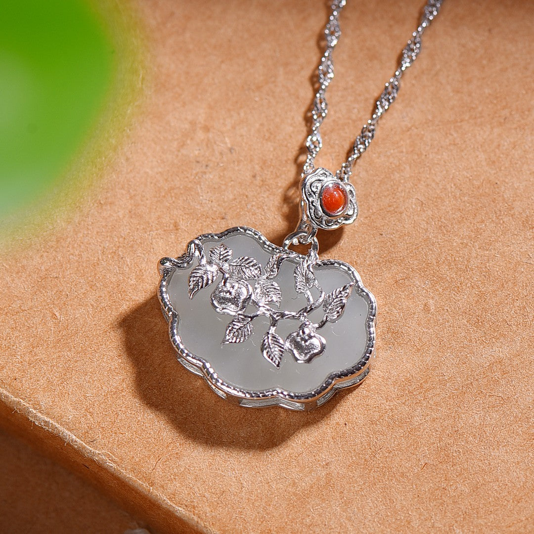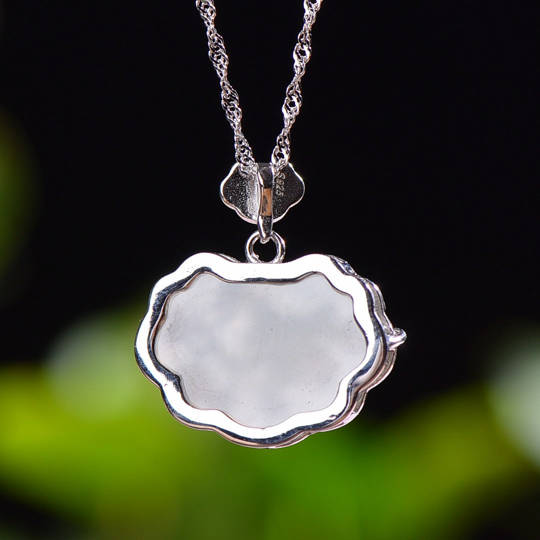 Silver inlaid Hetian jade pendant