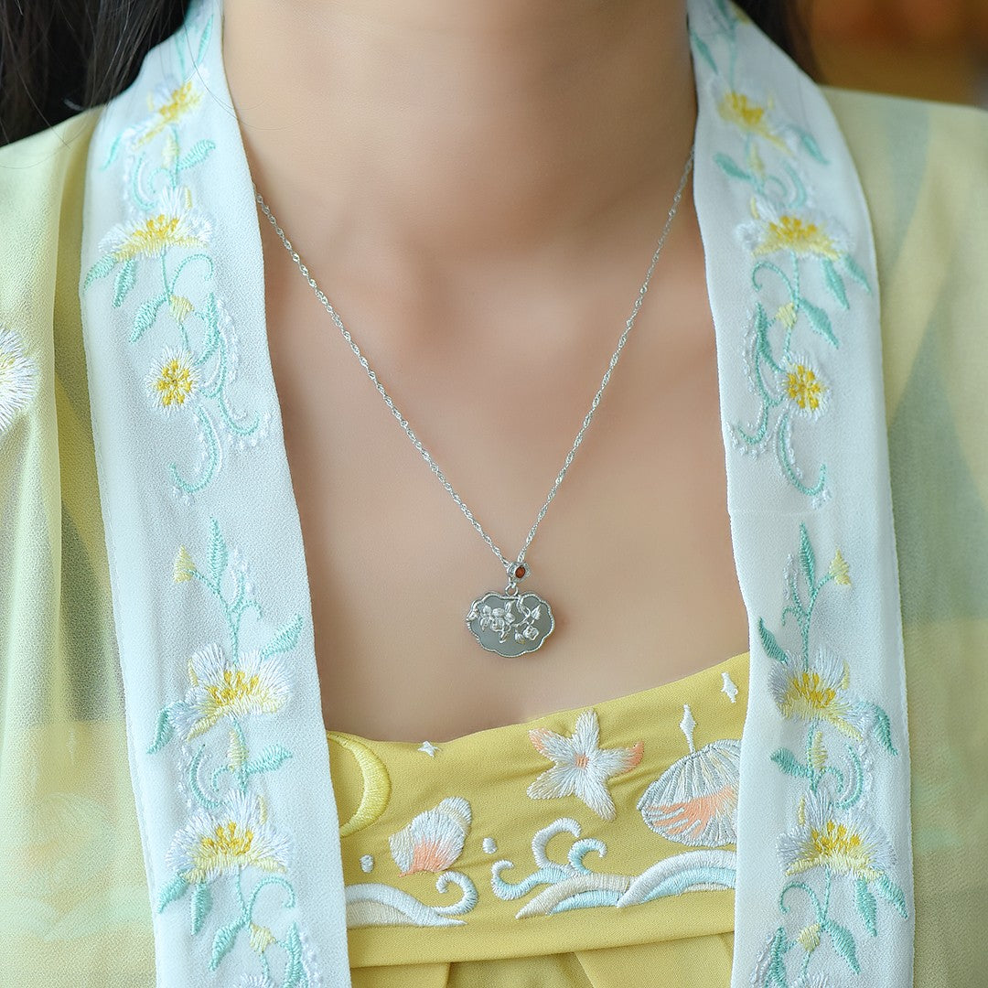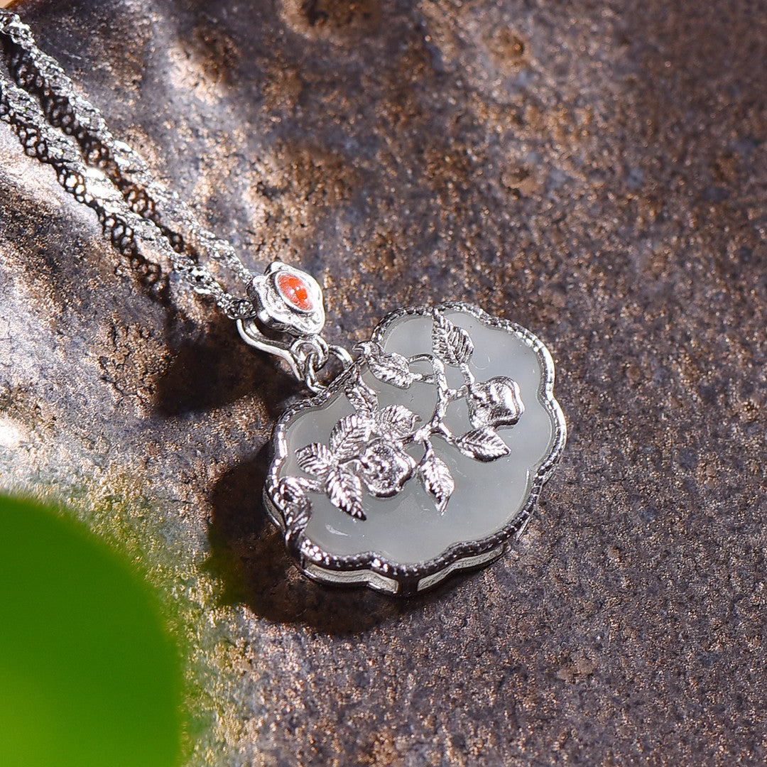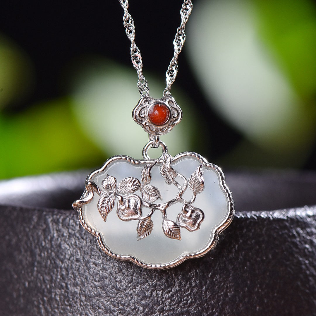 Silver inlaid Hetian jade pendant