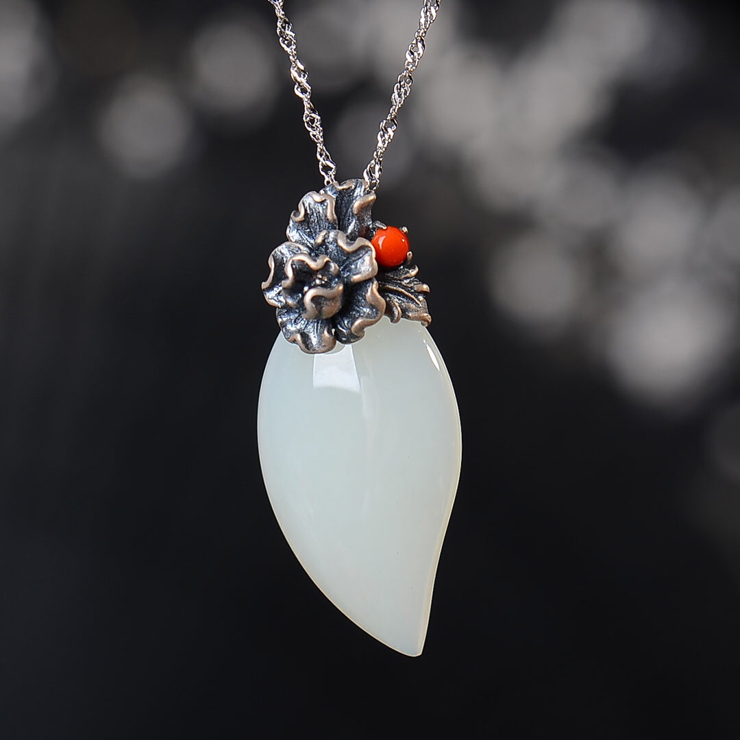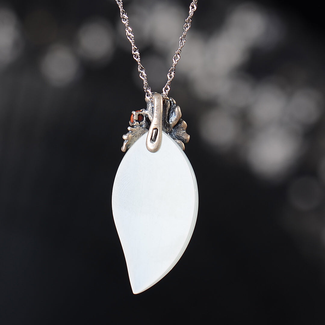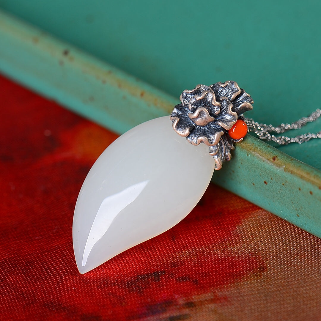 Silver-plated Hetian jade retro enamel pendant, jade size: 17mmx32mm    银镶和田玉复古珐琅吊坠