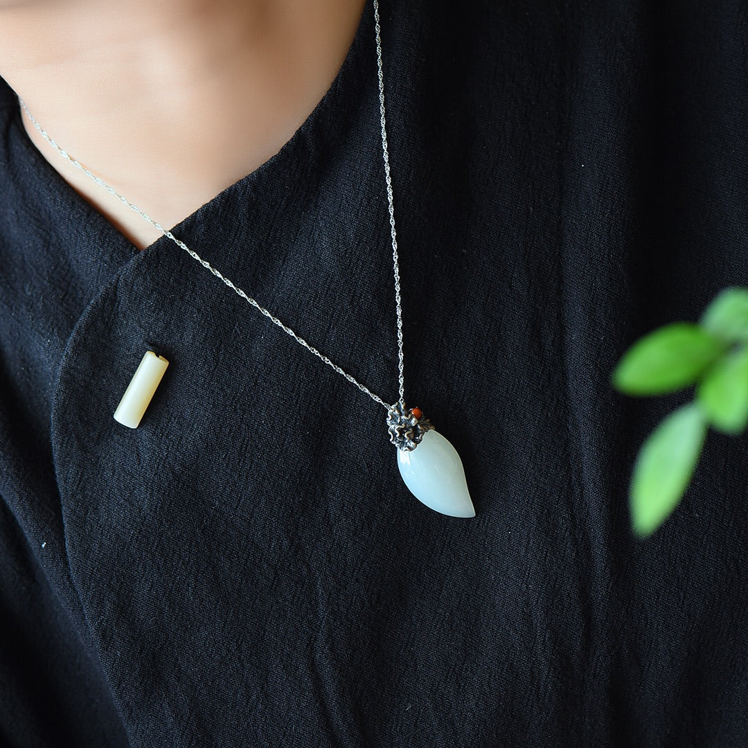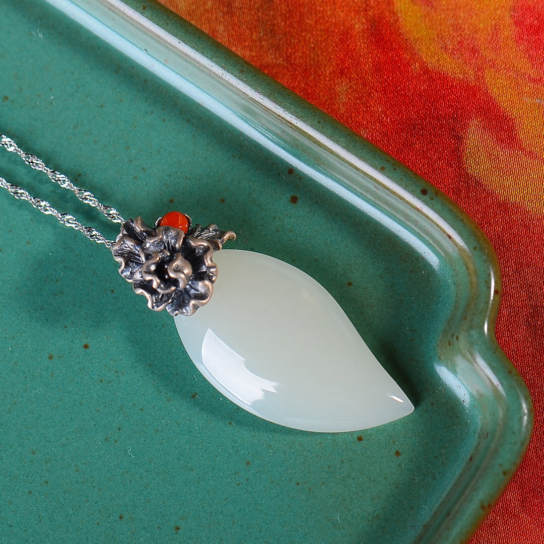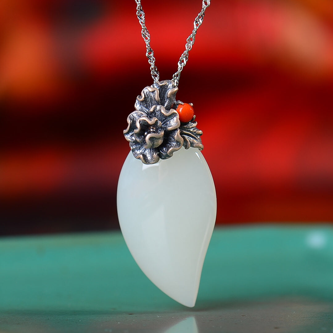 Silver-plated Hetian jade retro enamel pendant, jade size: 17mmx32mm    银镶和田玉复古珐琅吊坠