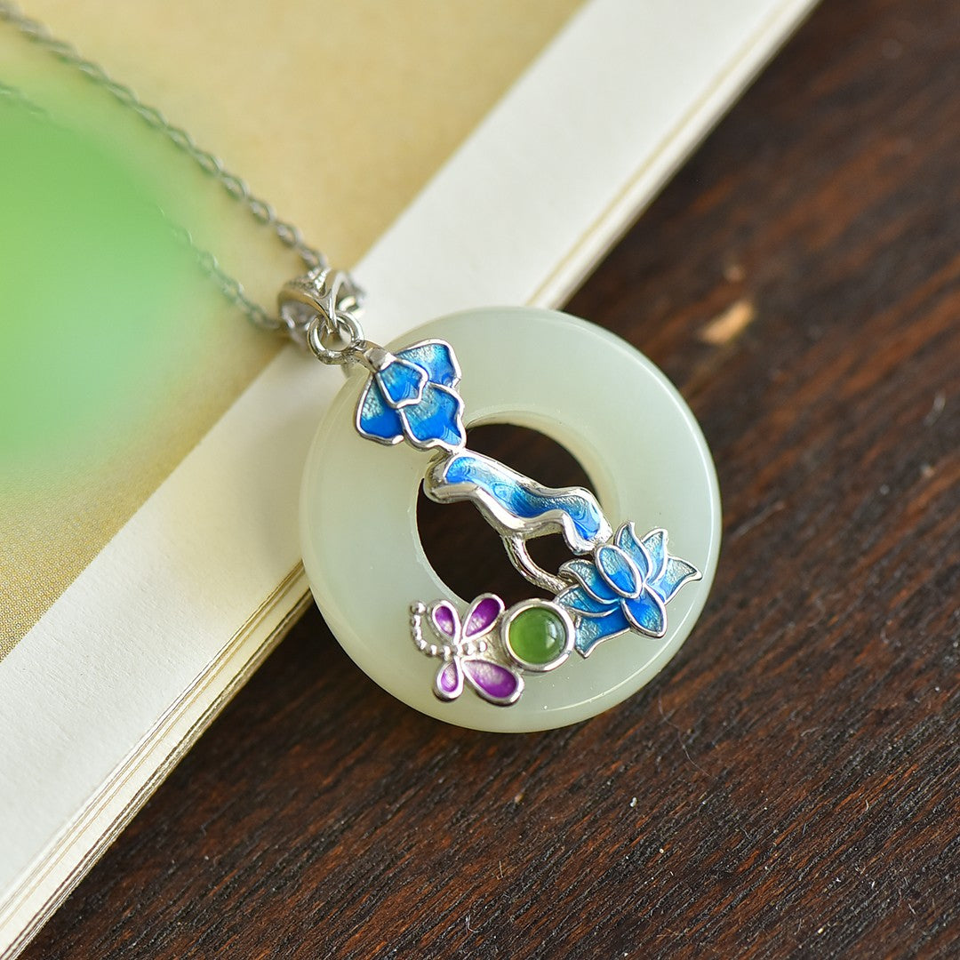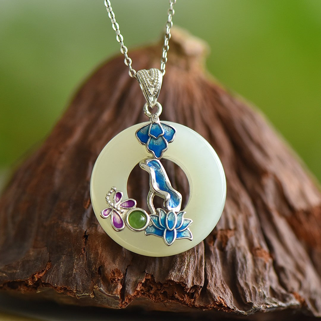 Silver-plated butterfly pendant with Hetian jade, grand style, fashionable and elegant, full of jade., jade size: 25mmx25mm    银镶和田玉蝴蝶破茧成蝶吊坠,款式大气,时尚优雅,玉石饱满