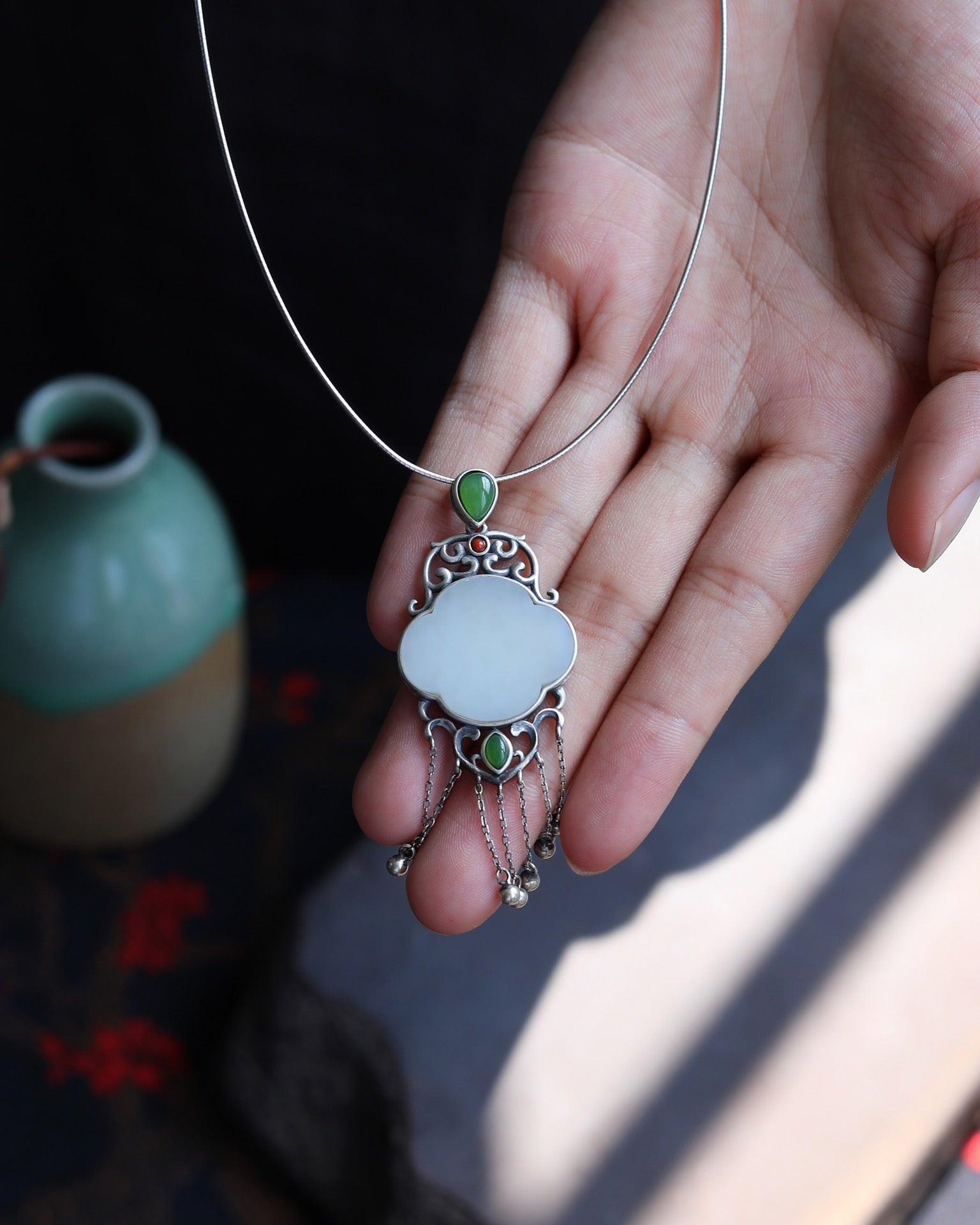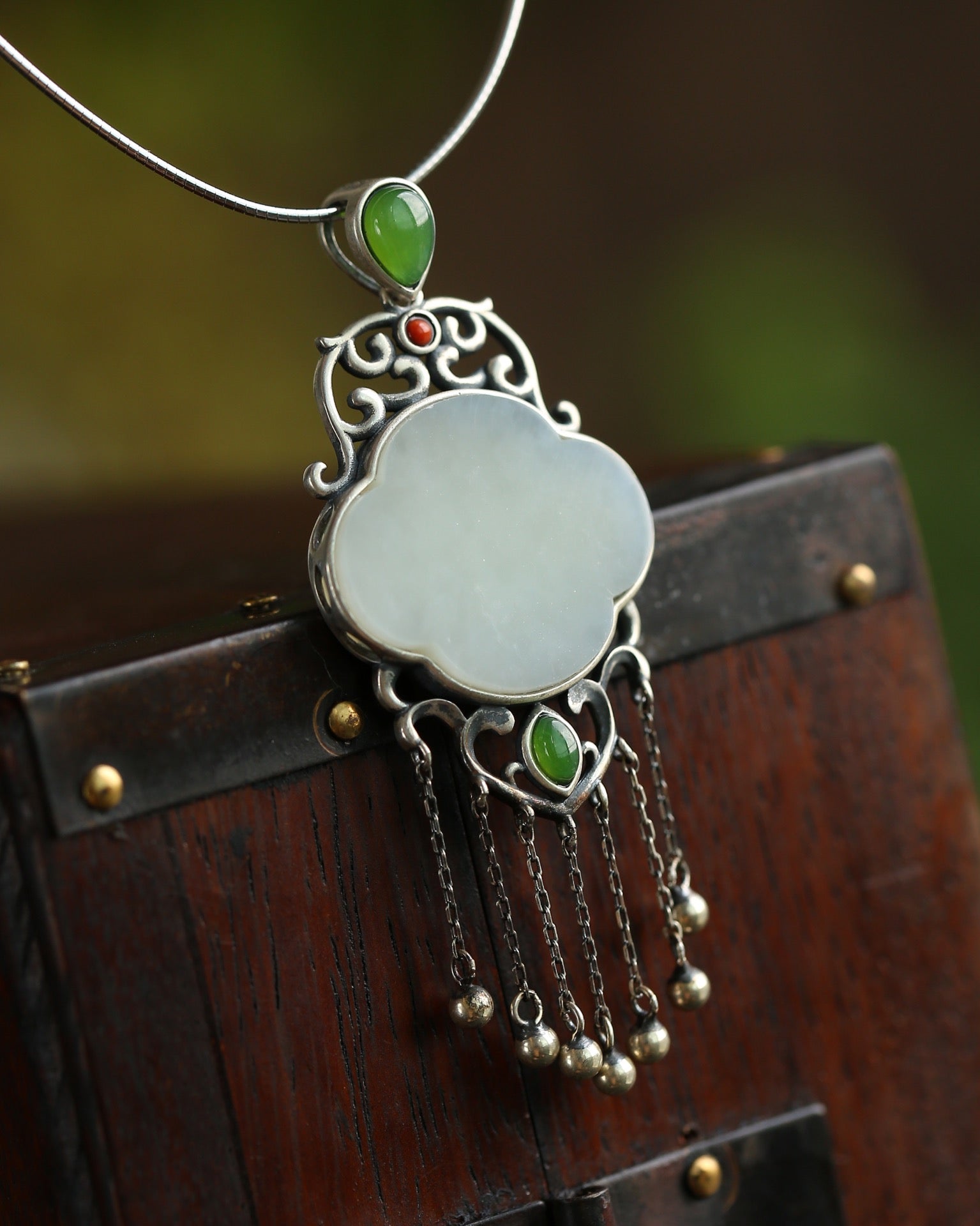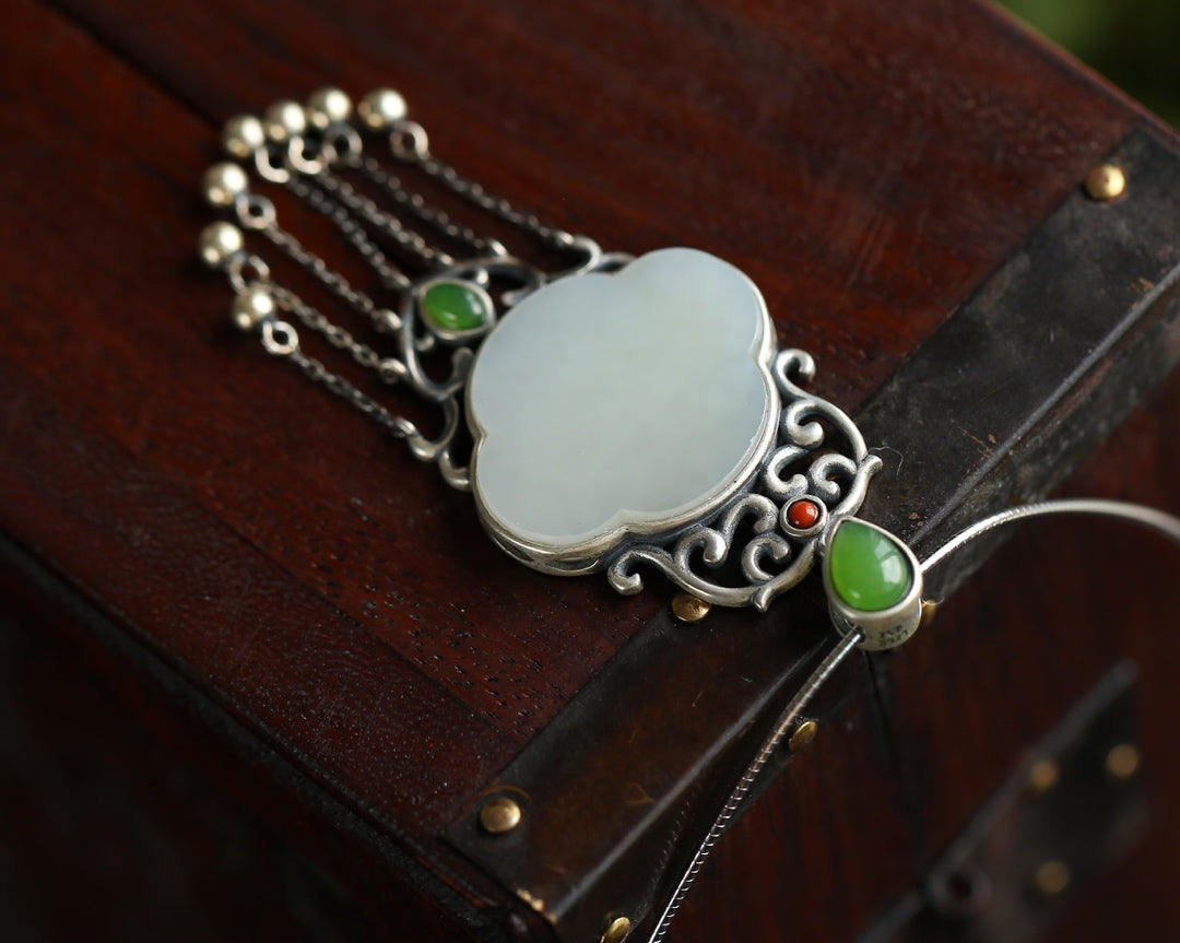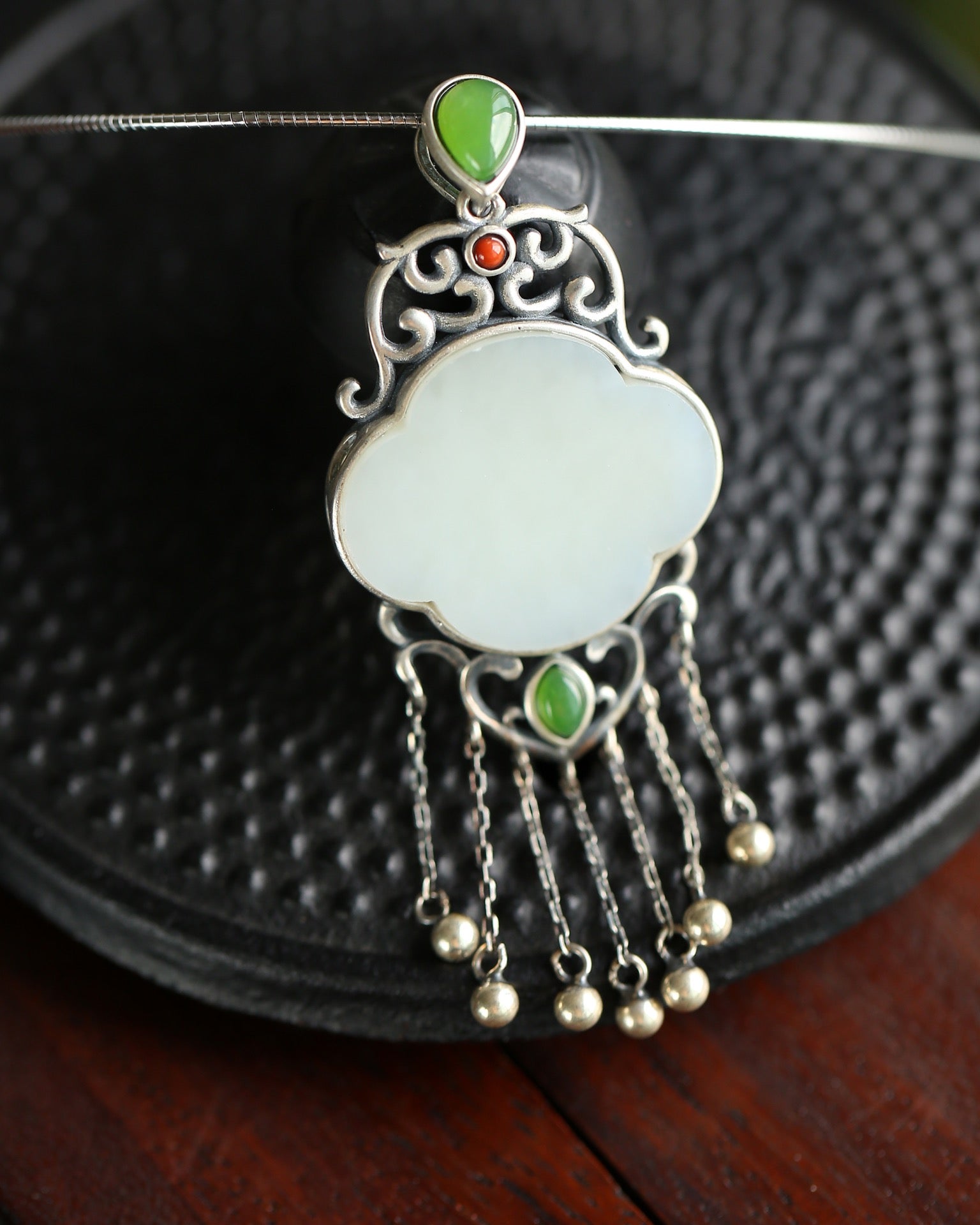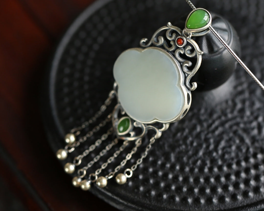 Silver-plated Hetian jade retro pendant, jade size: 21mmx24mm   银镶和田玉复古吊坠