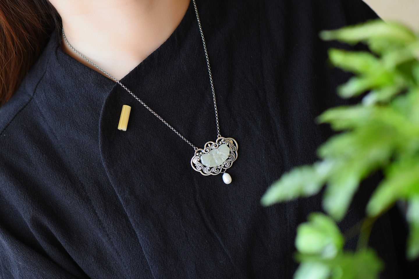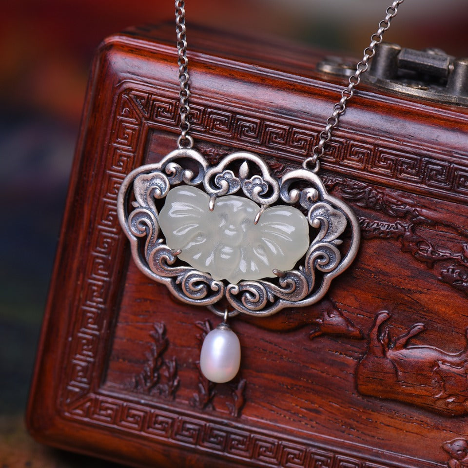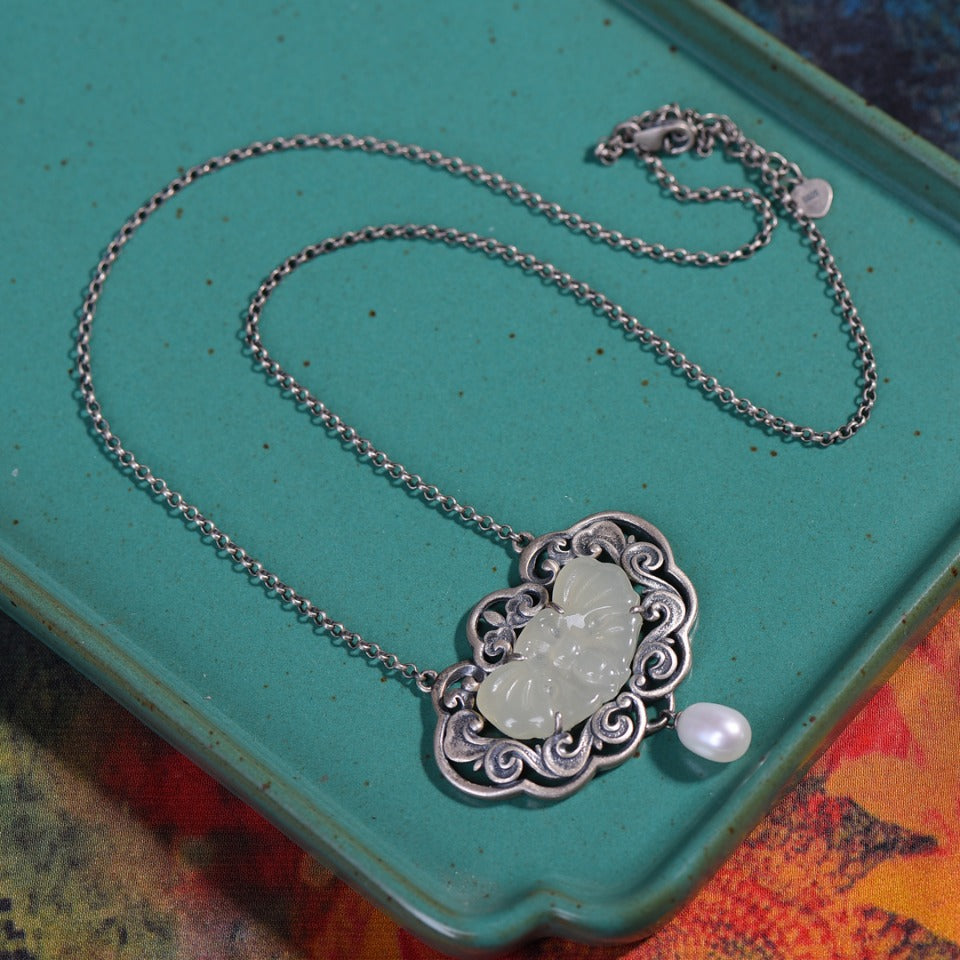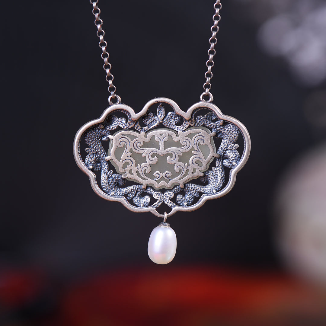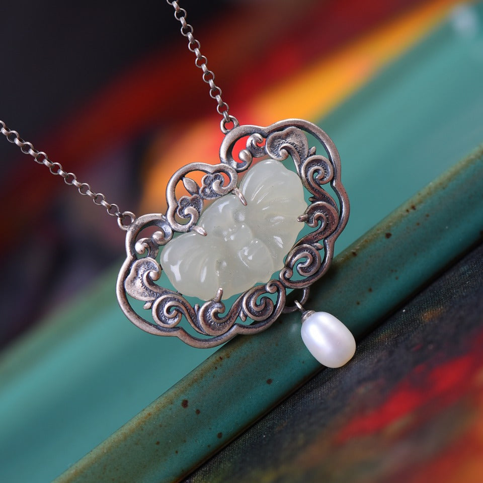 Silver inlaid Hetian jade pendant