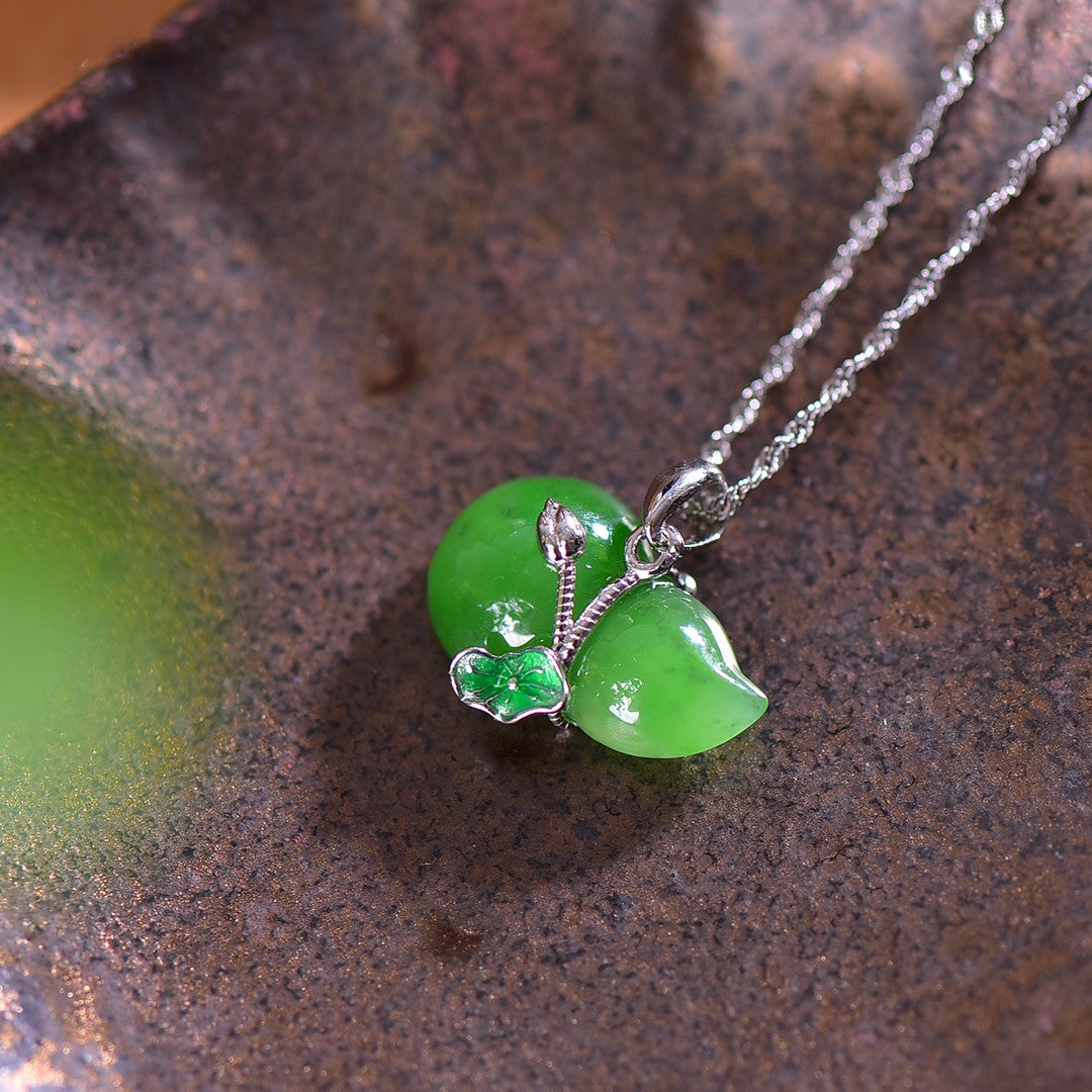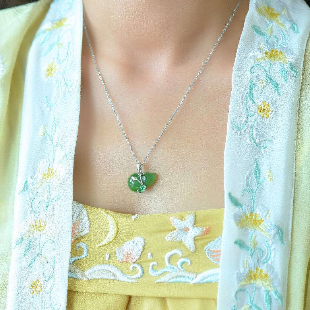 Silver gold plated Hetian jade jasper Fulu enamel pendant, jade size: 12mmx20mm    银镀金镶和田玉碧玉福禄珐琅吊坠