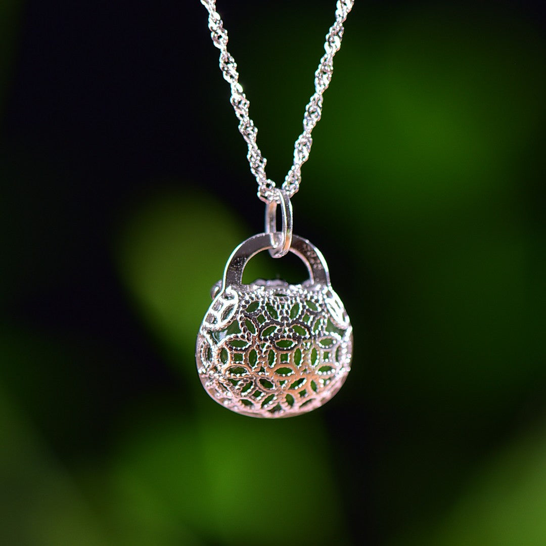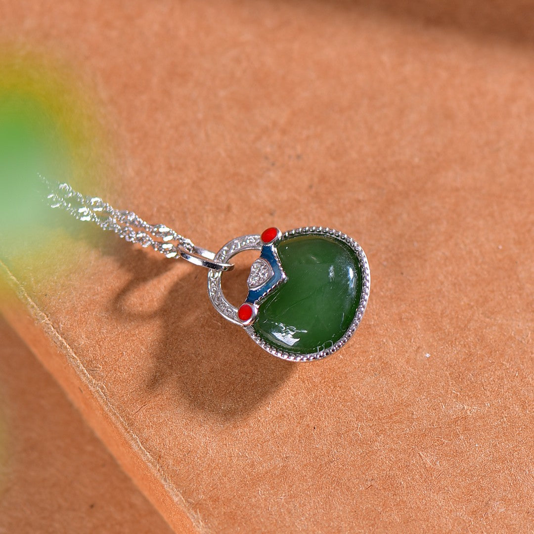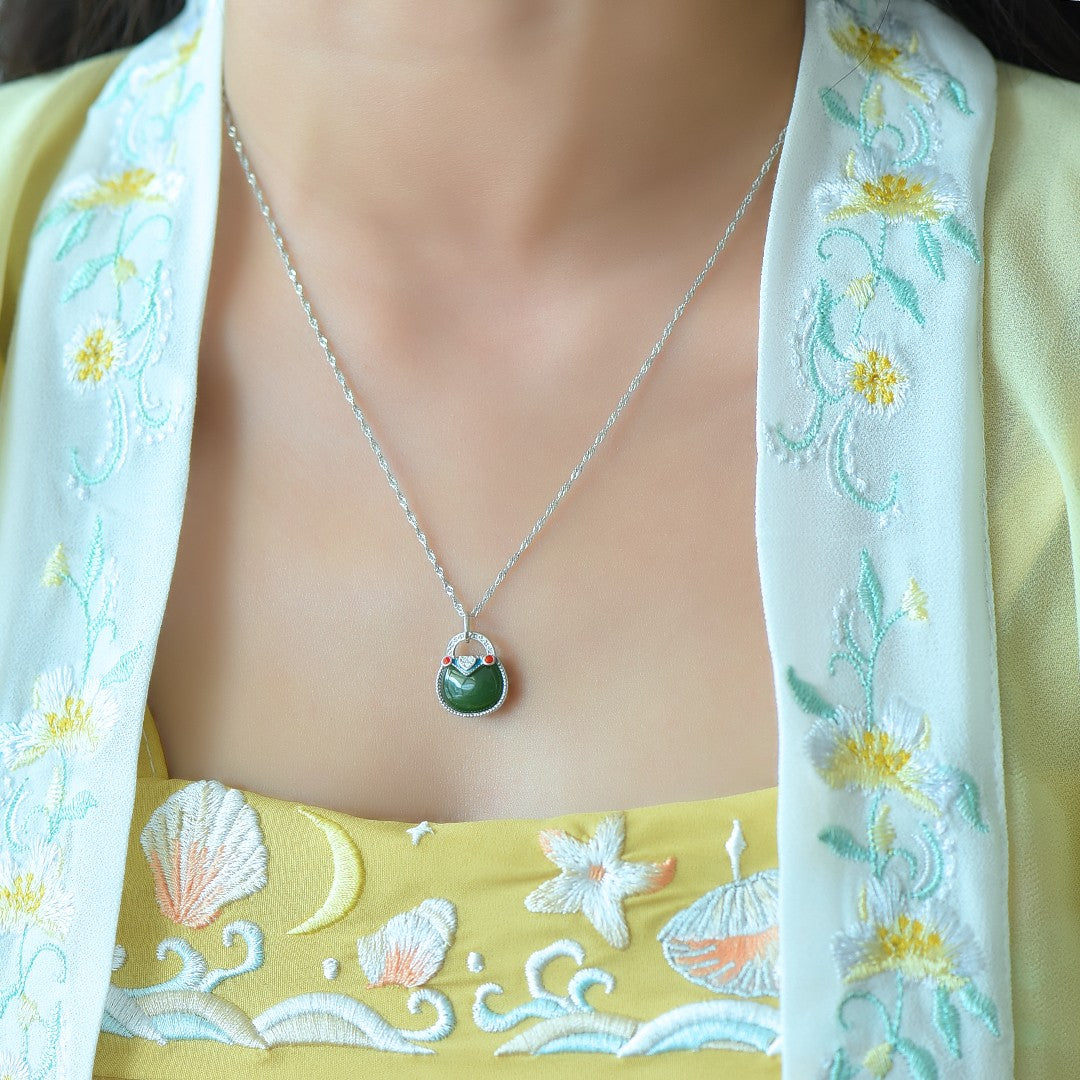 Silver gold plated Hetian jade jasper egg bread enamel pendant, jade size: 10mmx12mm     银镀金镶和田玉碧玉蛋面包包珐琅吊坠