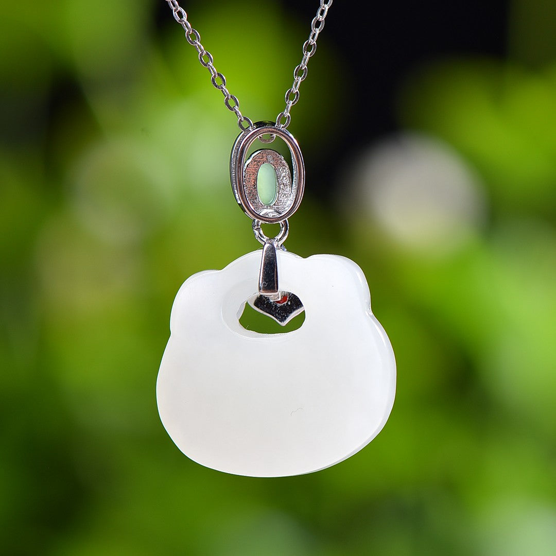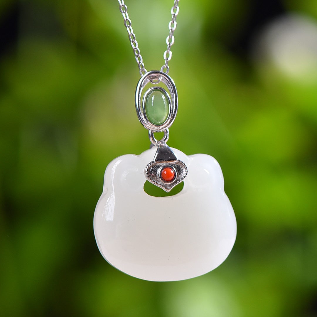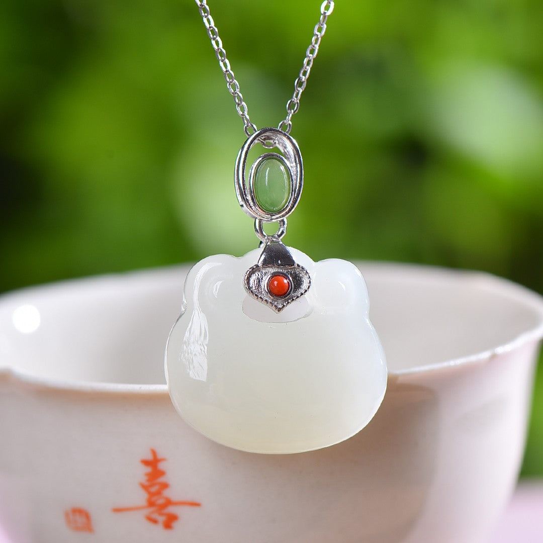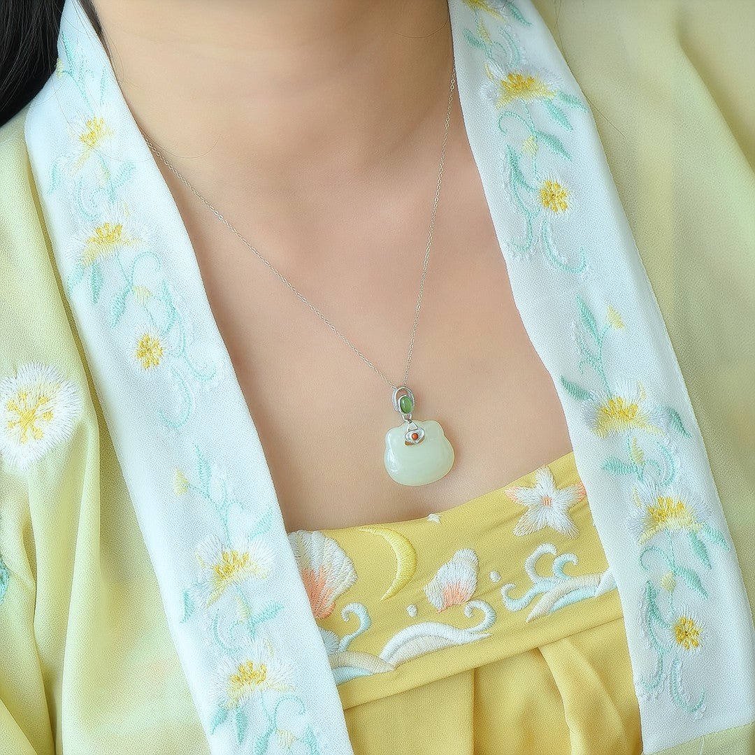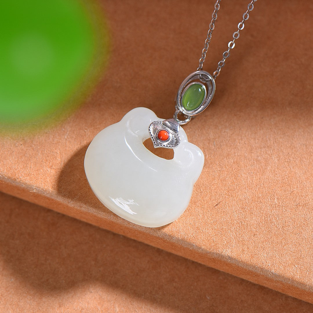 Silver inlaid Hetian jade Ruyi lock pendant