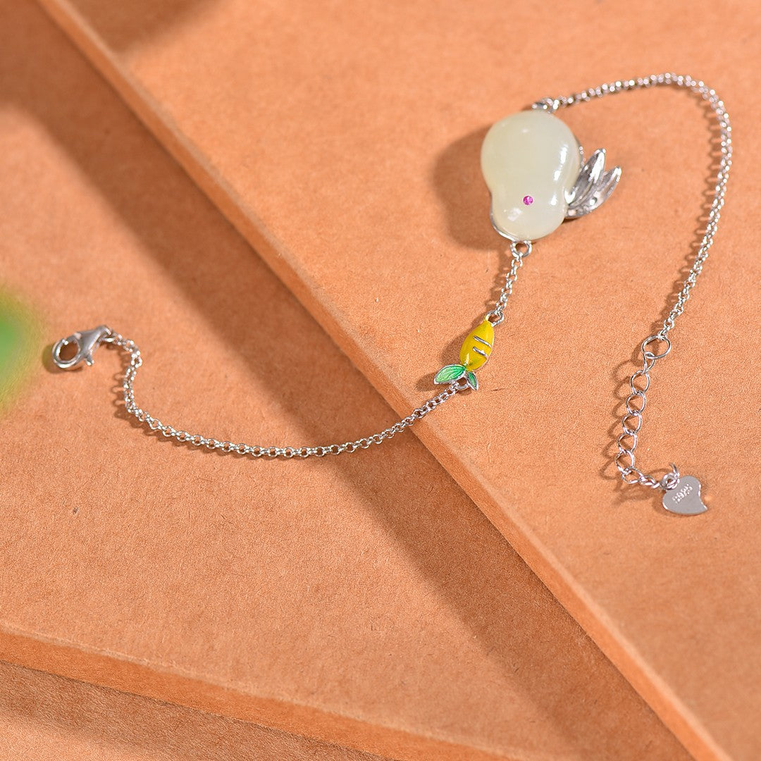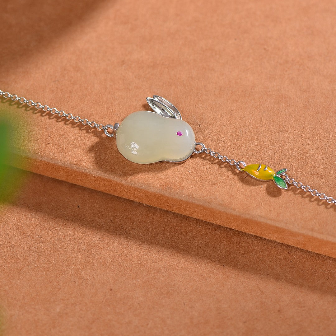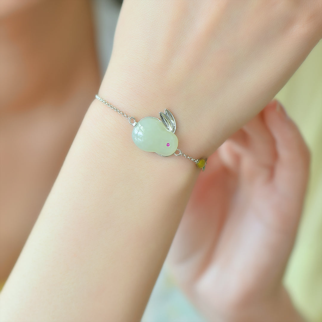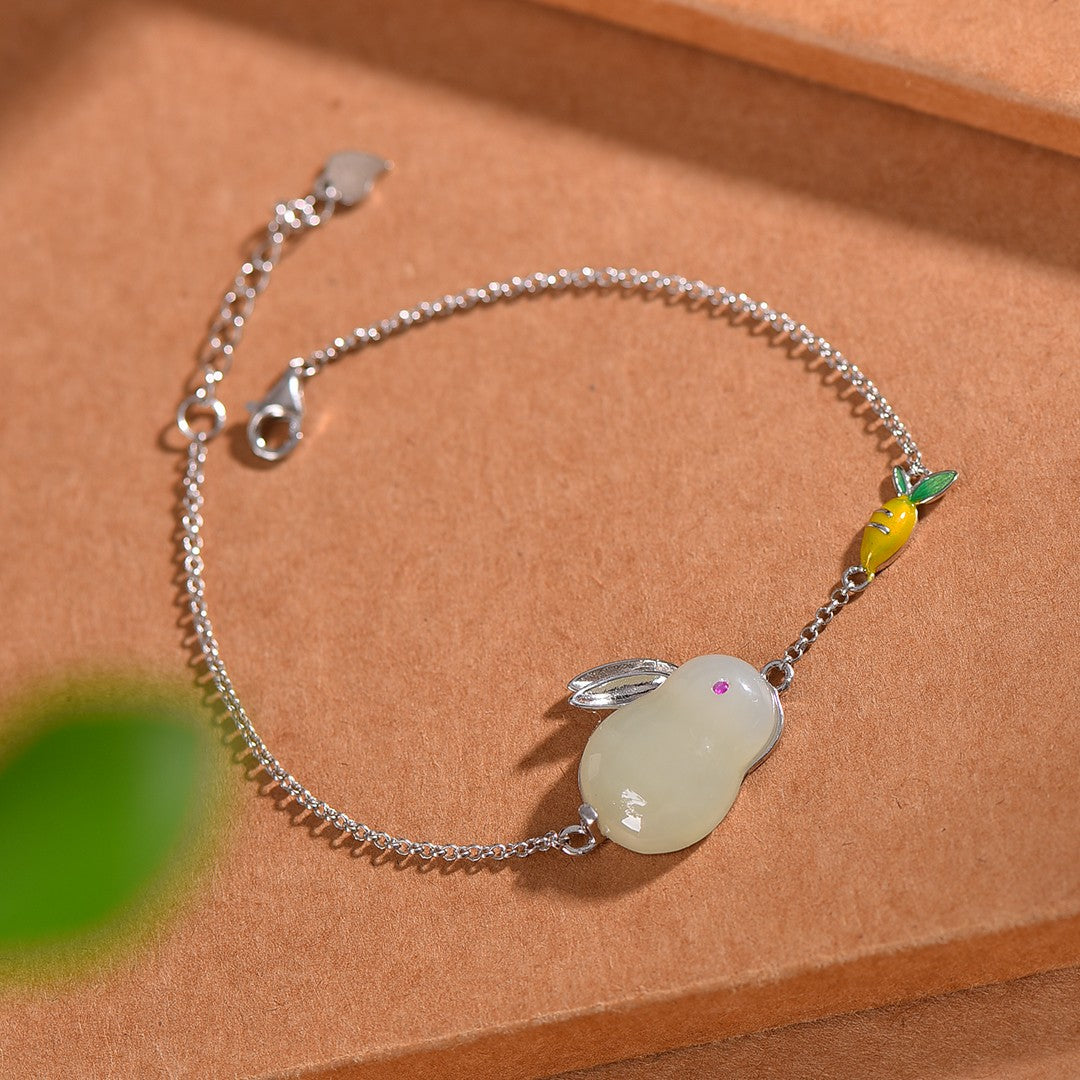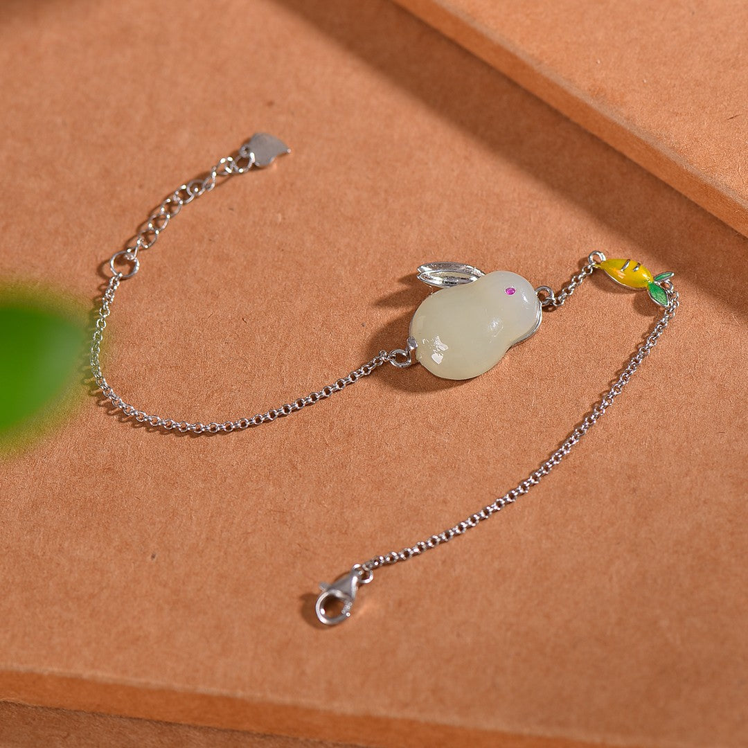 Silver inlaid jade rabbit bracelet